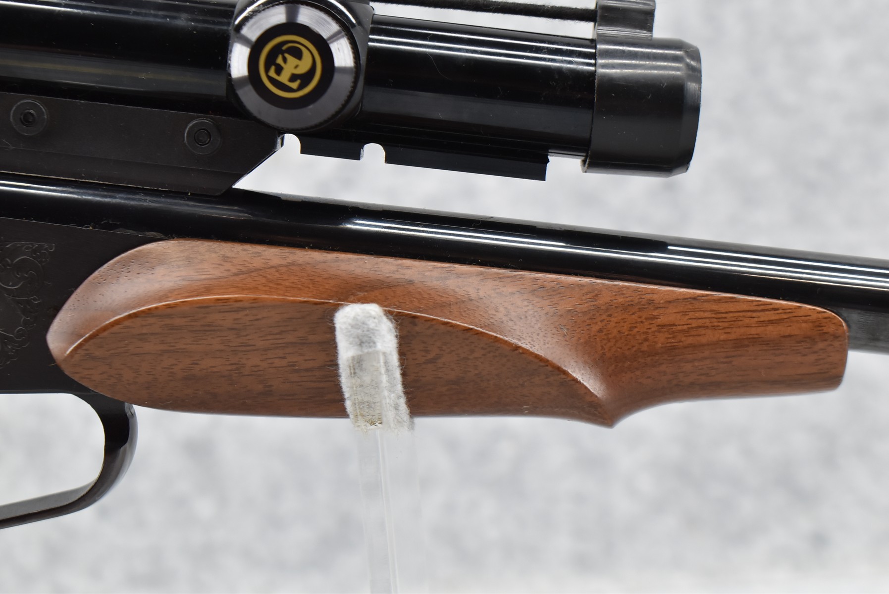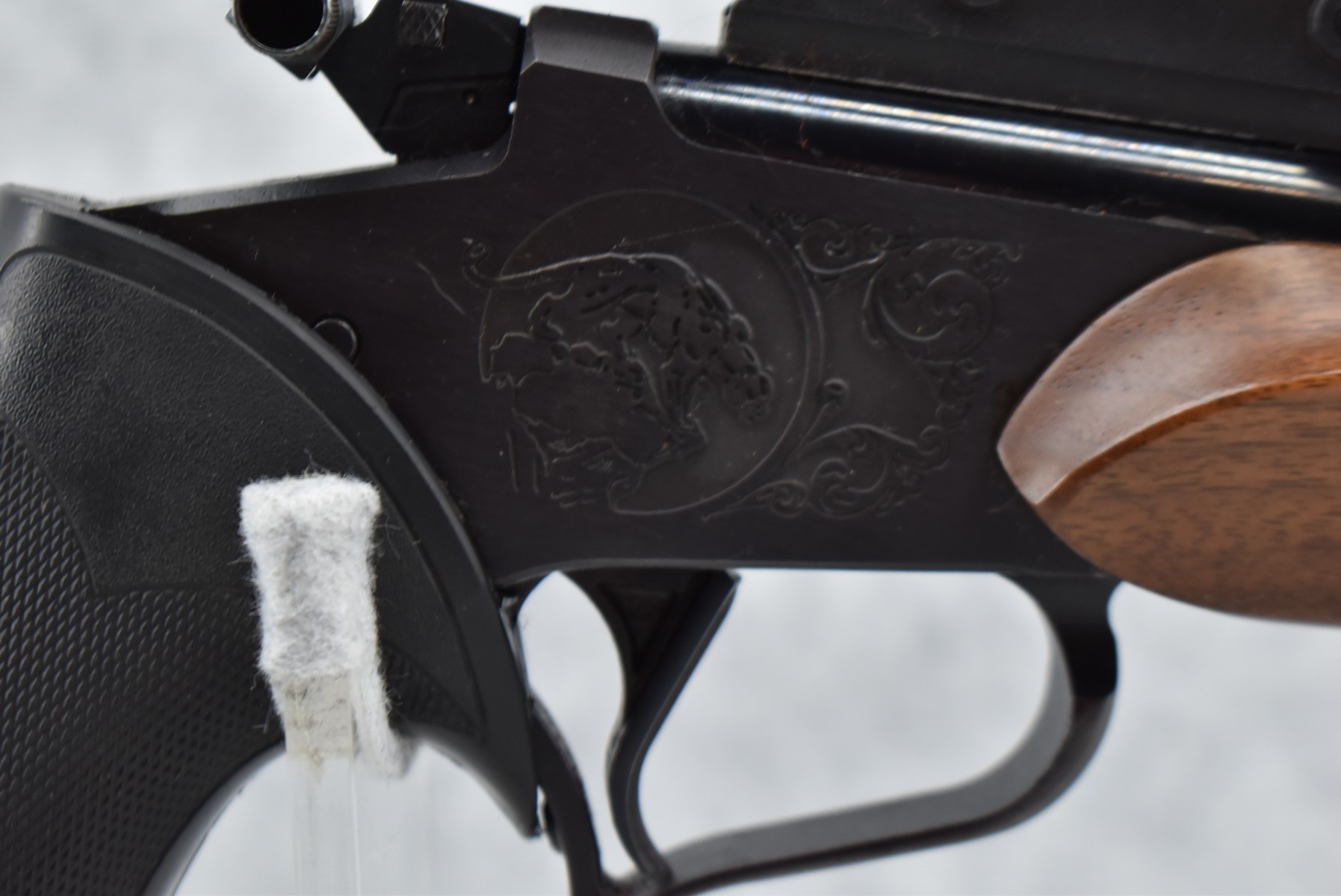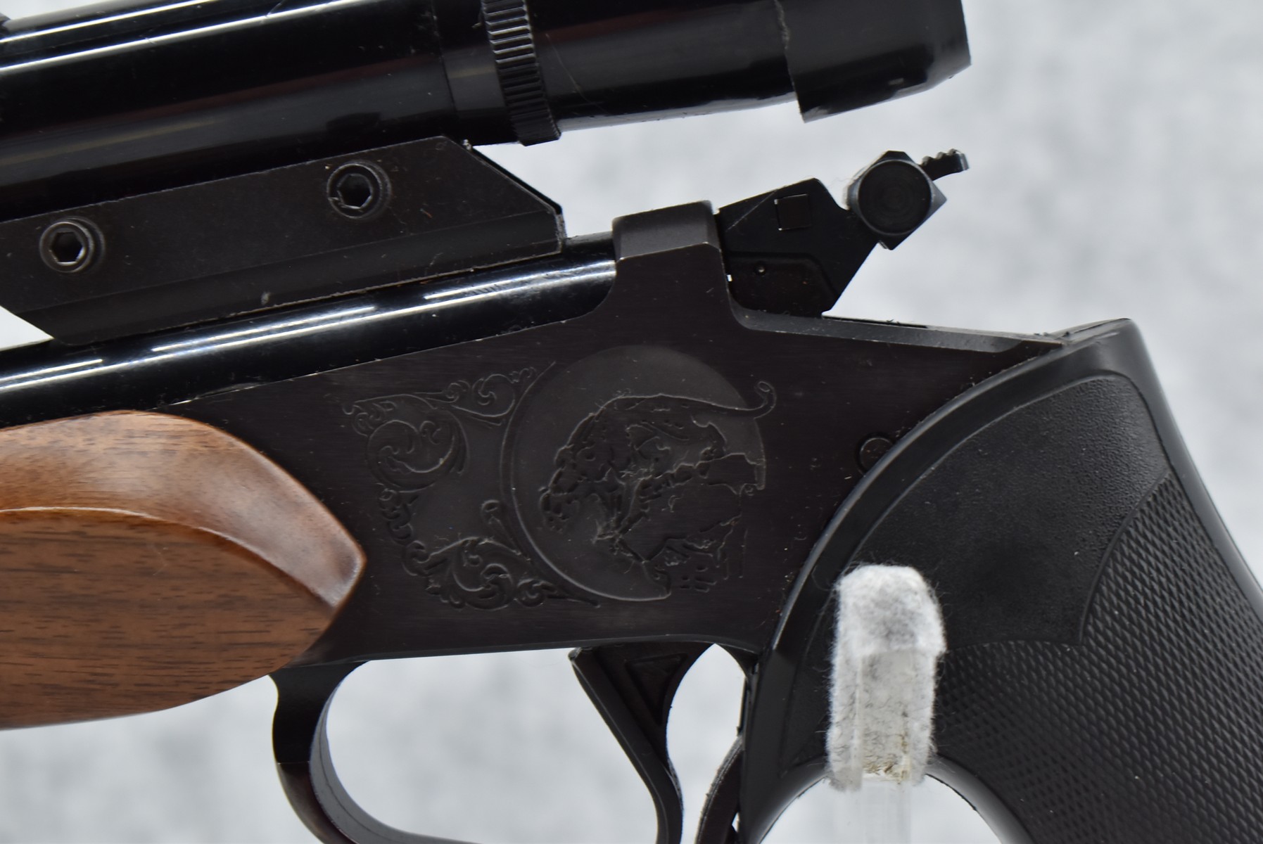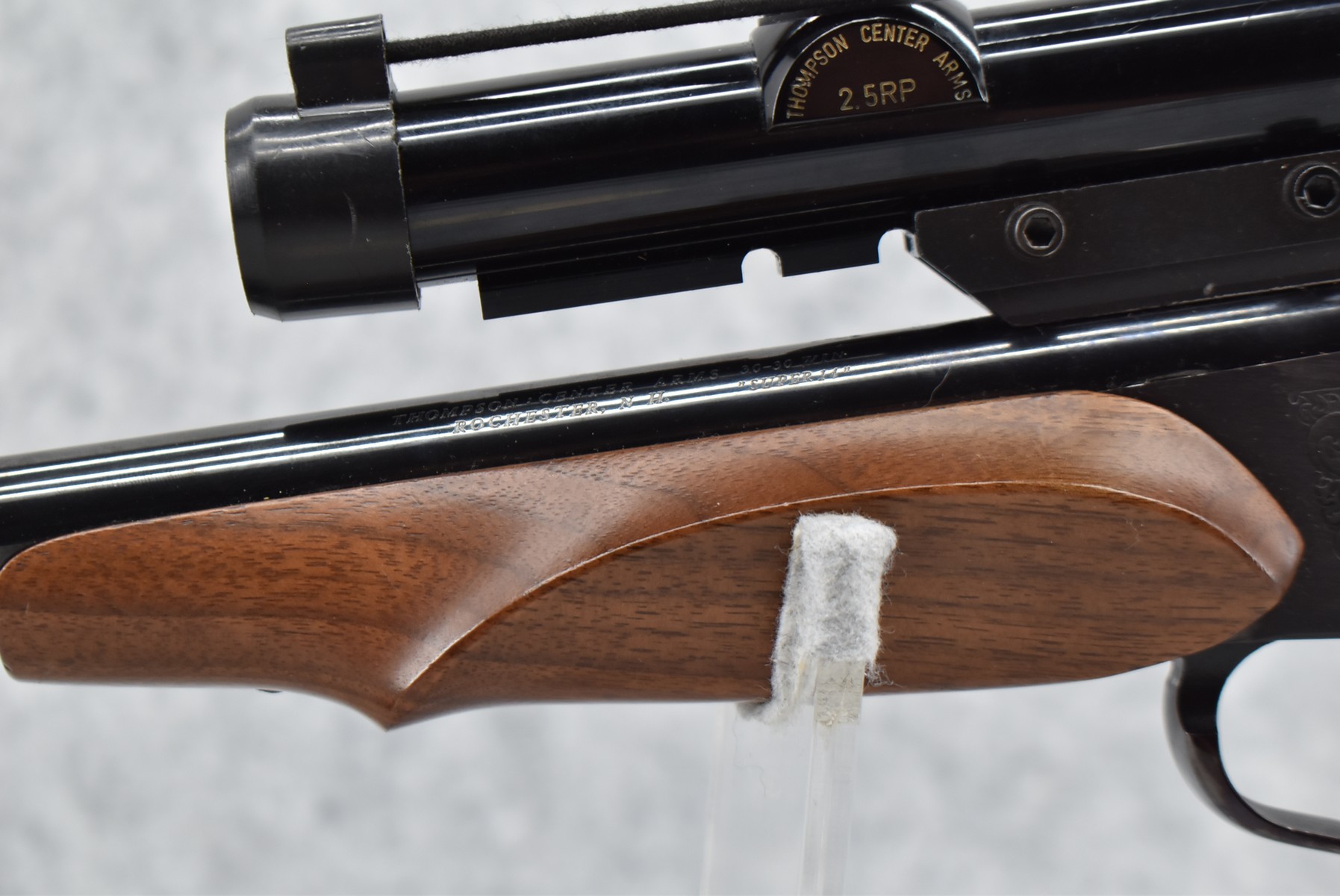 273R. Thompson Center – Mod. Contender “Super 14” (G1) – 30-30 Win. Cal. Single Shot Pistol – w/Round Super 14” Barrel w/Front Blade Sight – Blued Finish – w/Black Checkered Pachmayr Pistol Grip – w/Factory Wood Forend – w/Hammer Extension – w/Thompson Center 2.5RP Pistol Scope