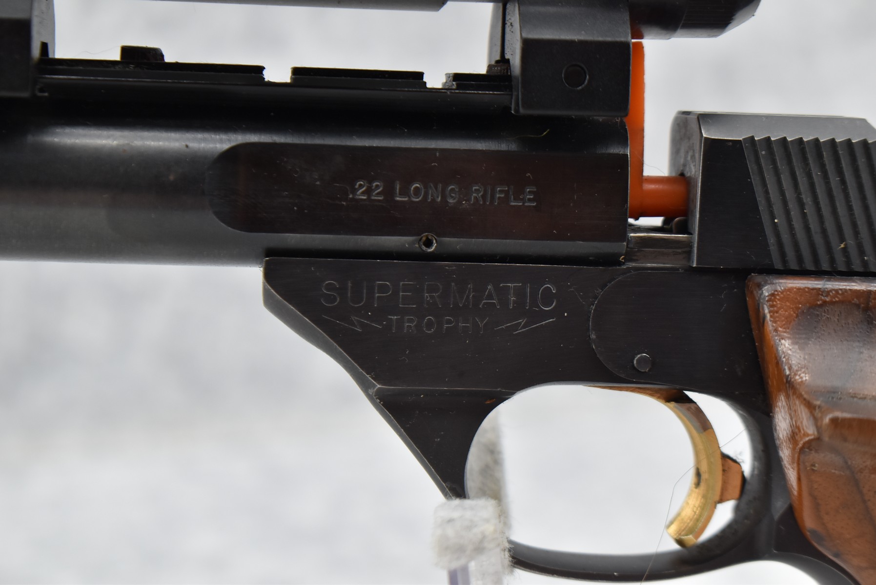 275R. High Standard – Mod. Supermatic Trophy – 22LR Cal. Semi-Auto Pistol – w/5.5” Heavy Target Barrel w/Match Ultra Dot Red Dot Optic Sight – Blued Finish – w/Target Grip w/Thumb Rest – w/Magazine