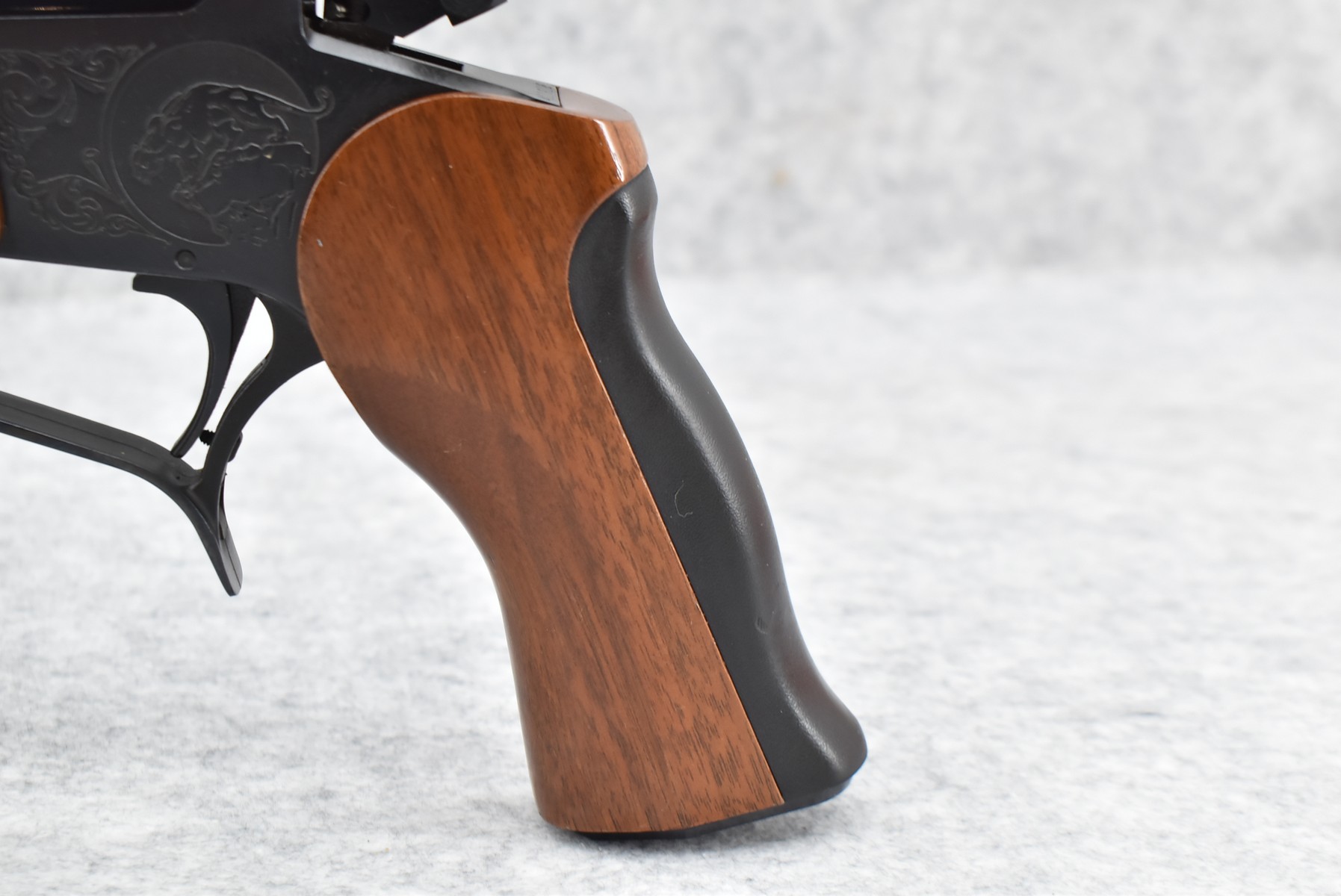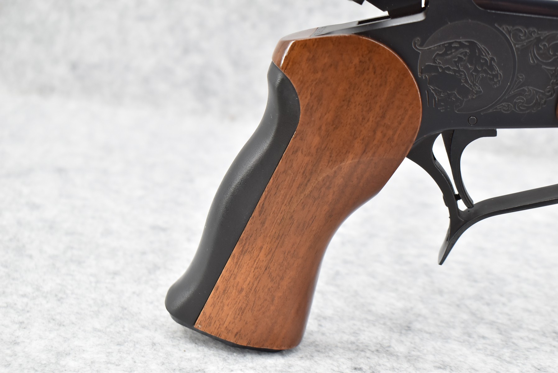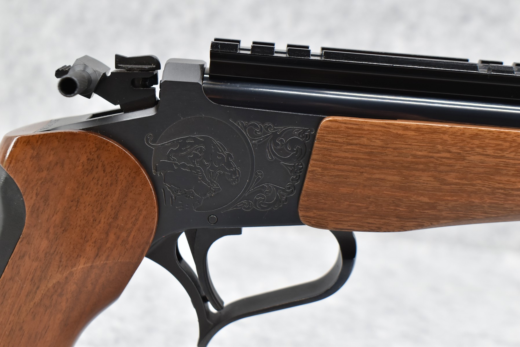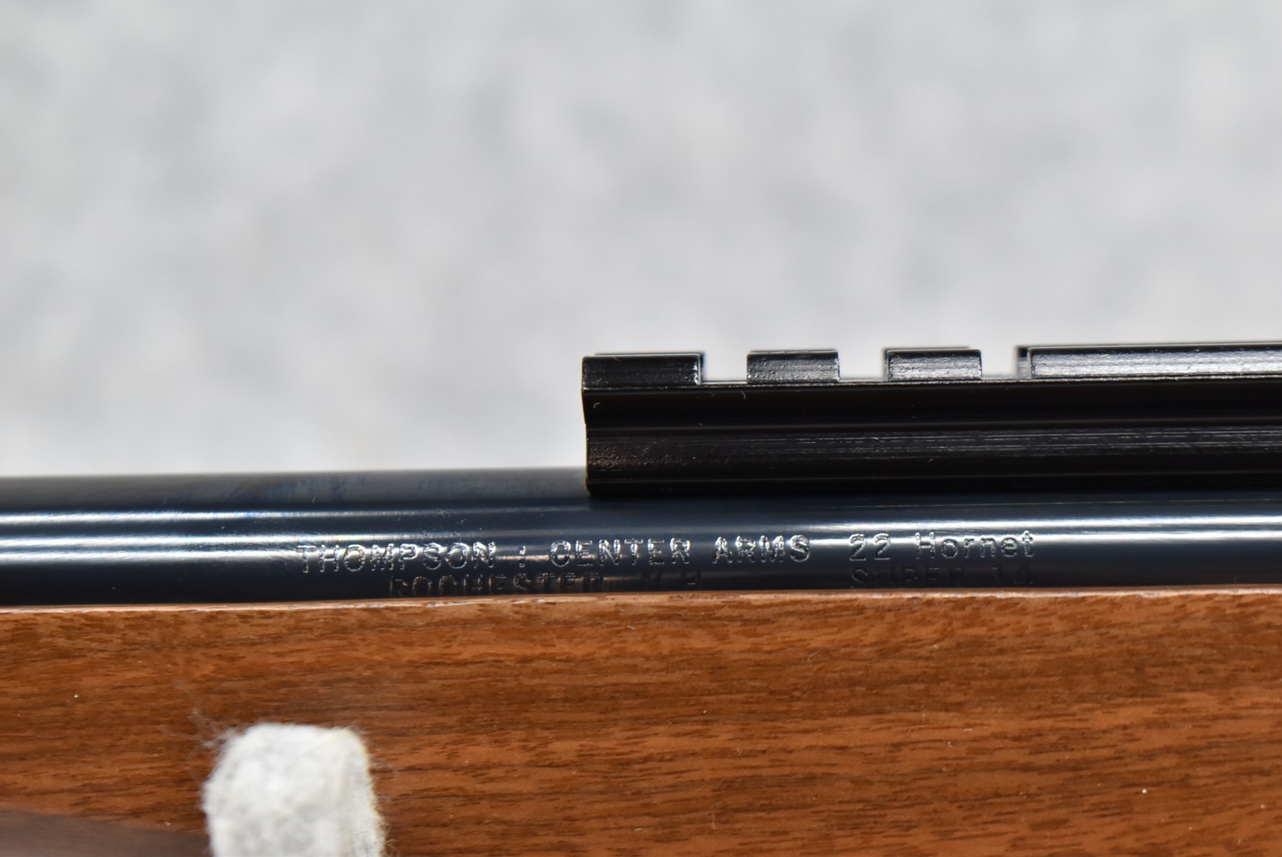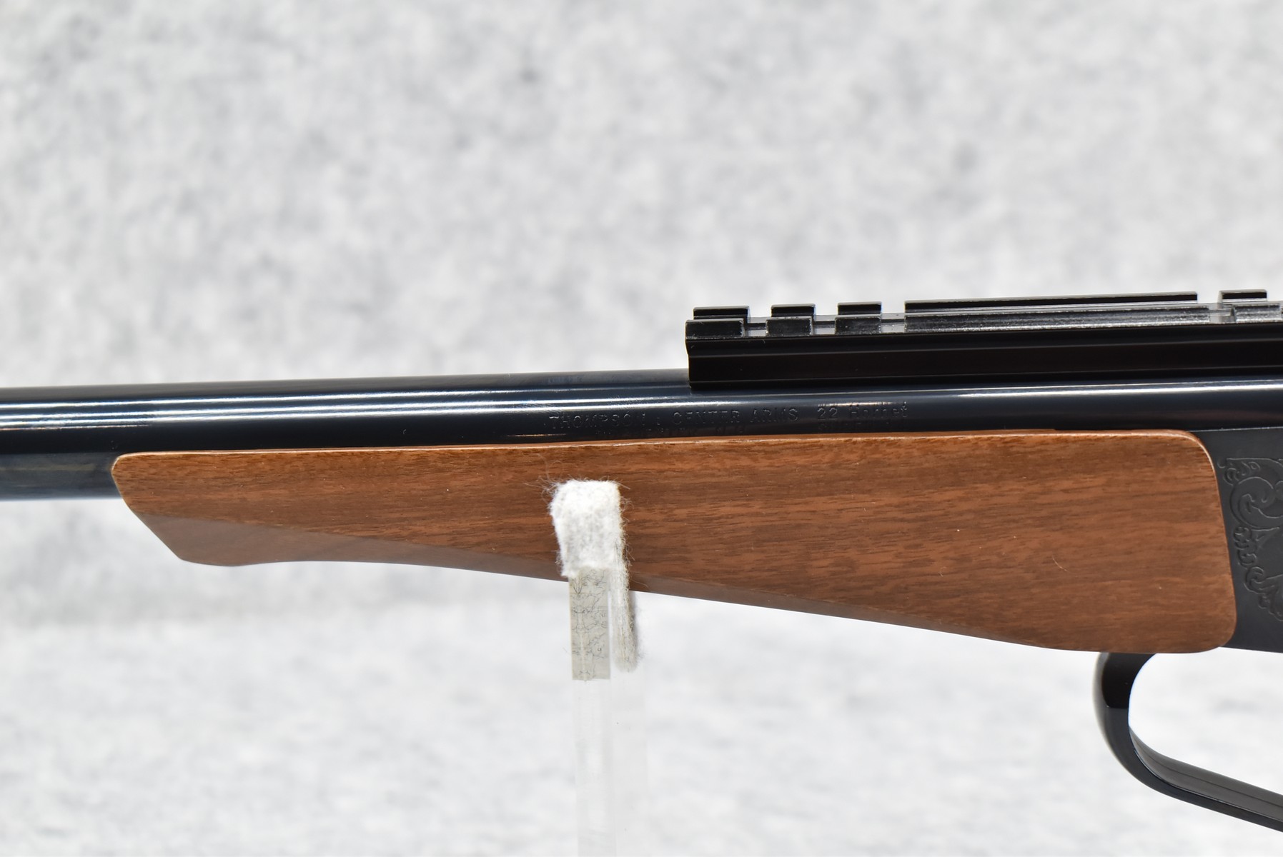 275R. Thompson Center – Mod. Contender – 22 Hornet Cal. Single Shot Pistol – w/Super 14” Barrel w/Blade Front Sight – Blued Finish – w/Factory Rubber/Wood Pistol Grip & Forearm – w/1pc. Scope Base – w/Factory Barrel & Frame Boxes
