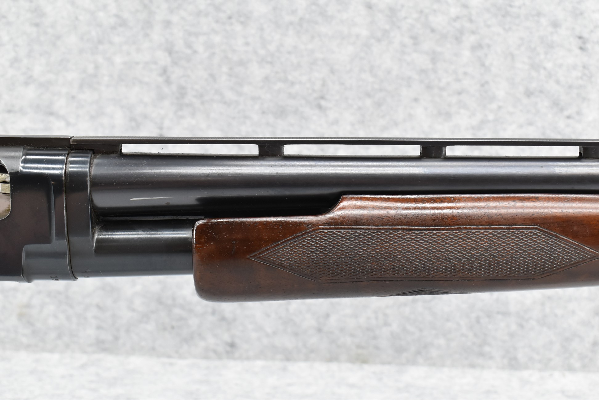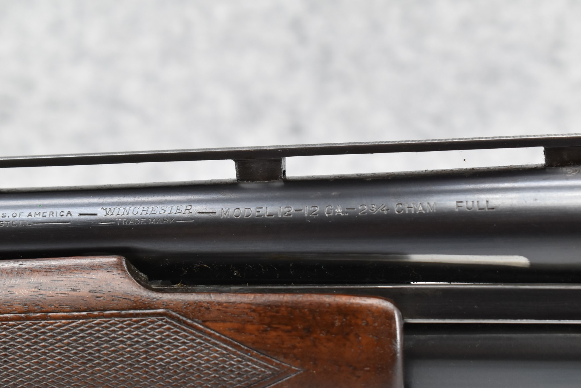 278R. Winchester – Mod. 12 Trap “Y” Series – 12ga. 2 ¾” Pump Action Shotgun – w/30” Full Choke, Vent-Rib Barrel w/Fiber Optic Front Sight & Ivory Rear Barrel Sight – Blued Finish – w/Factory Checkered Capped Pistol Grip Wood Stocks w/Factory Recoil Pad