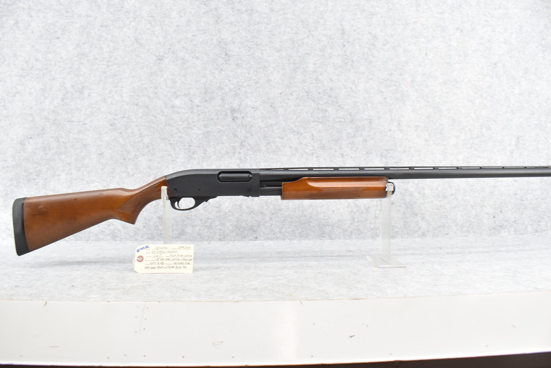 279R. Remington – Mod. 870 Express Magnum – 12ga. 3” Pump Action Shotgun – w/28” Rem. Choke, Vent-Rib Barrel w/Bead Sight – Matte Blued Finish – w/Checkered Pistol Grip Wood Stocks w/Factory Recoil Pad