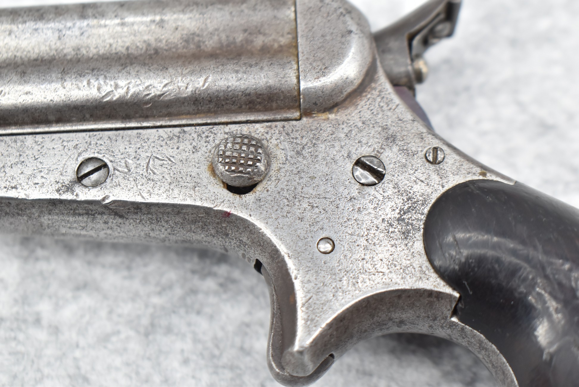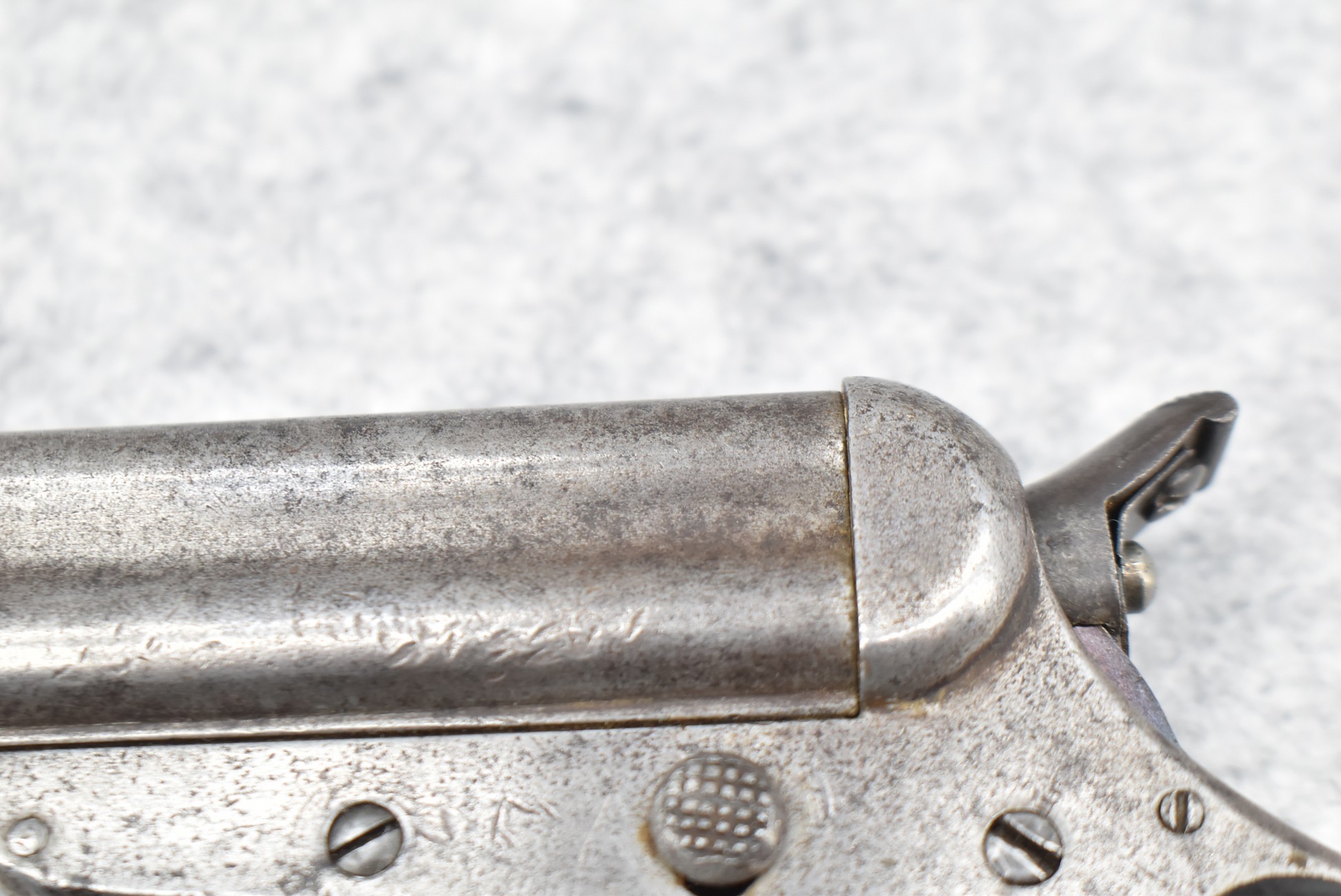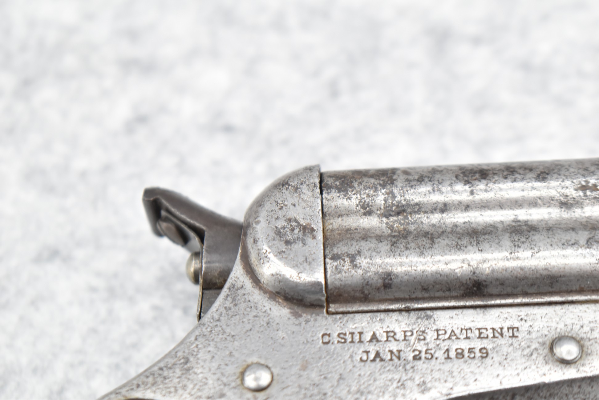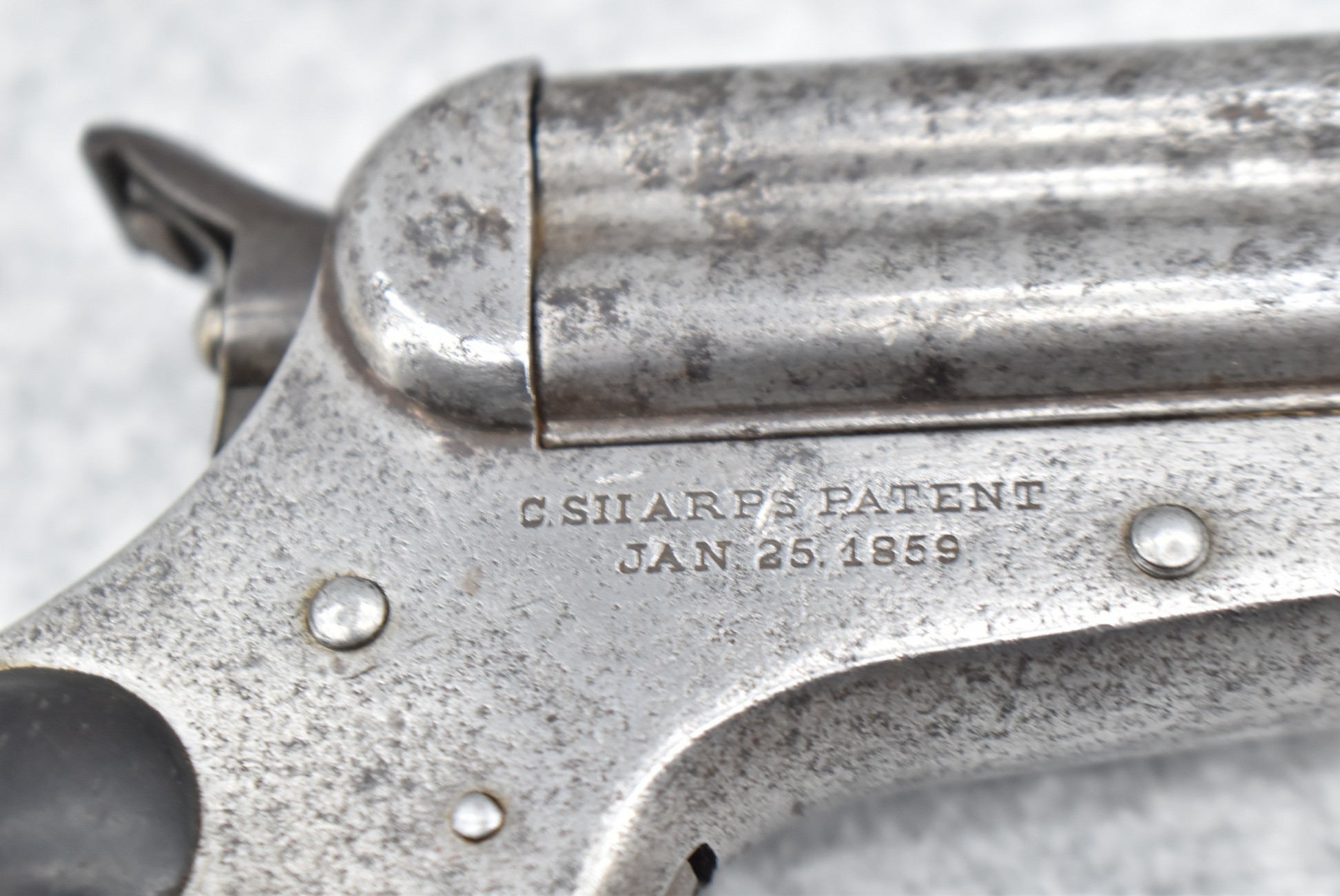 280. C. Sharps – Mod. 4B – 32 Long RF Cal. 4-Shot Pistol – w/2 ½” Barrels – Gray Finish – w/Birds Head Wood Grips – Approx. 9,000 Mfg. – Note: Firing Pin Won’t Rotate