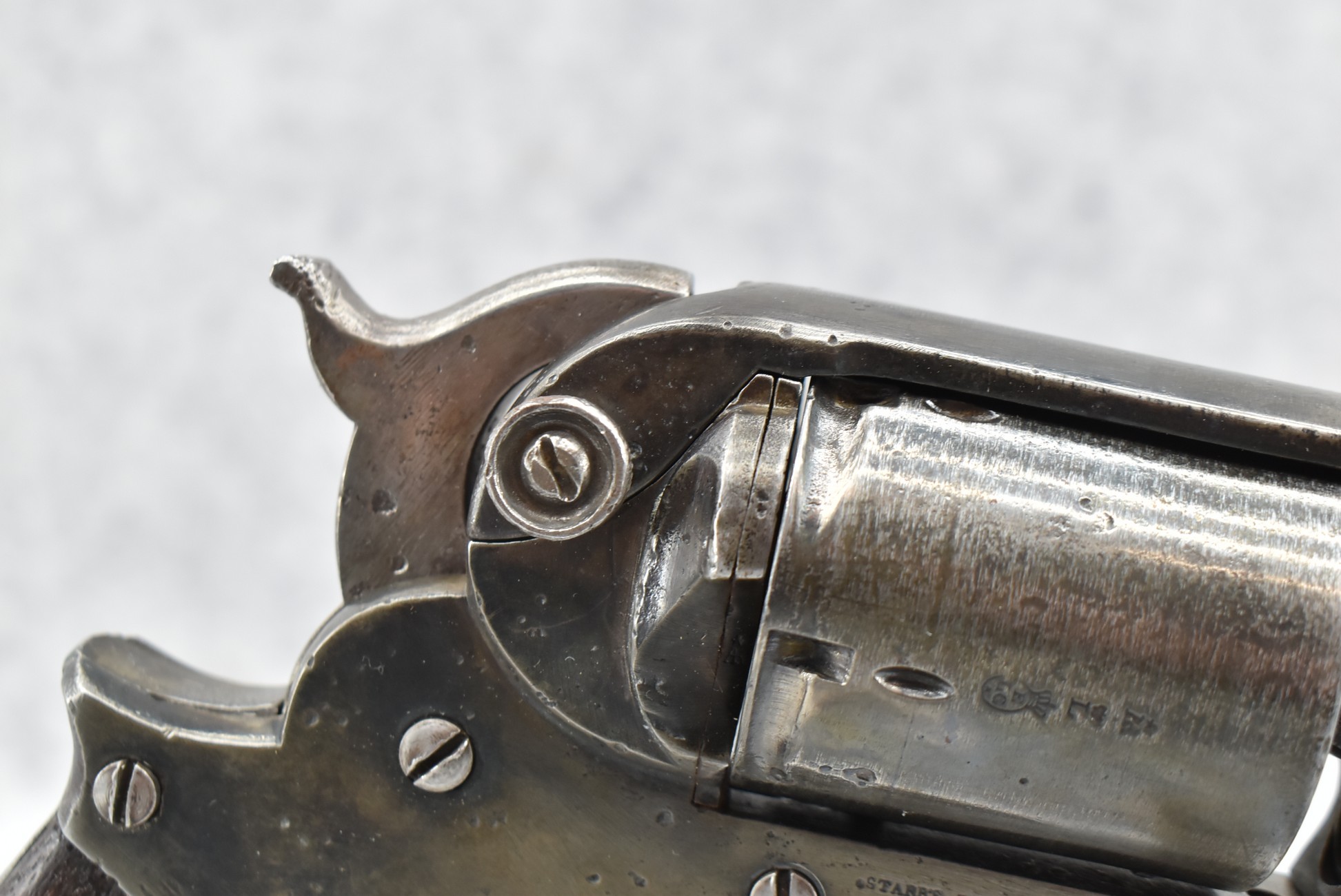 281. Starr Arms – Mod. 1858 Army Revolver – 44 Cal. Revolver – w/6” Barrel w/Front Sight – Gray/Re-Blued Finish – w/Wood Grips – Note: Action Issues