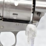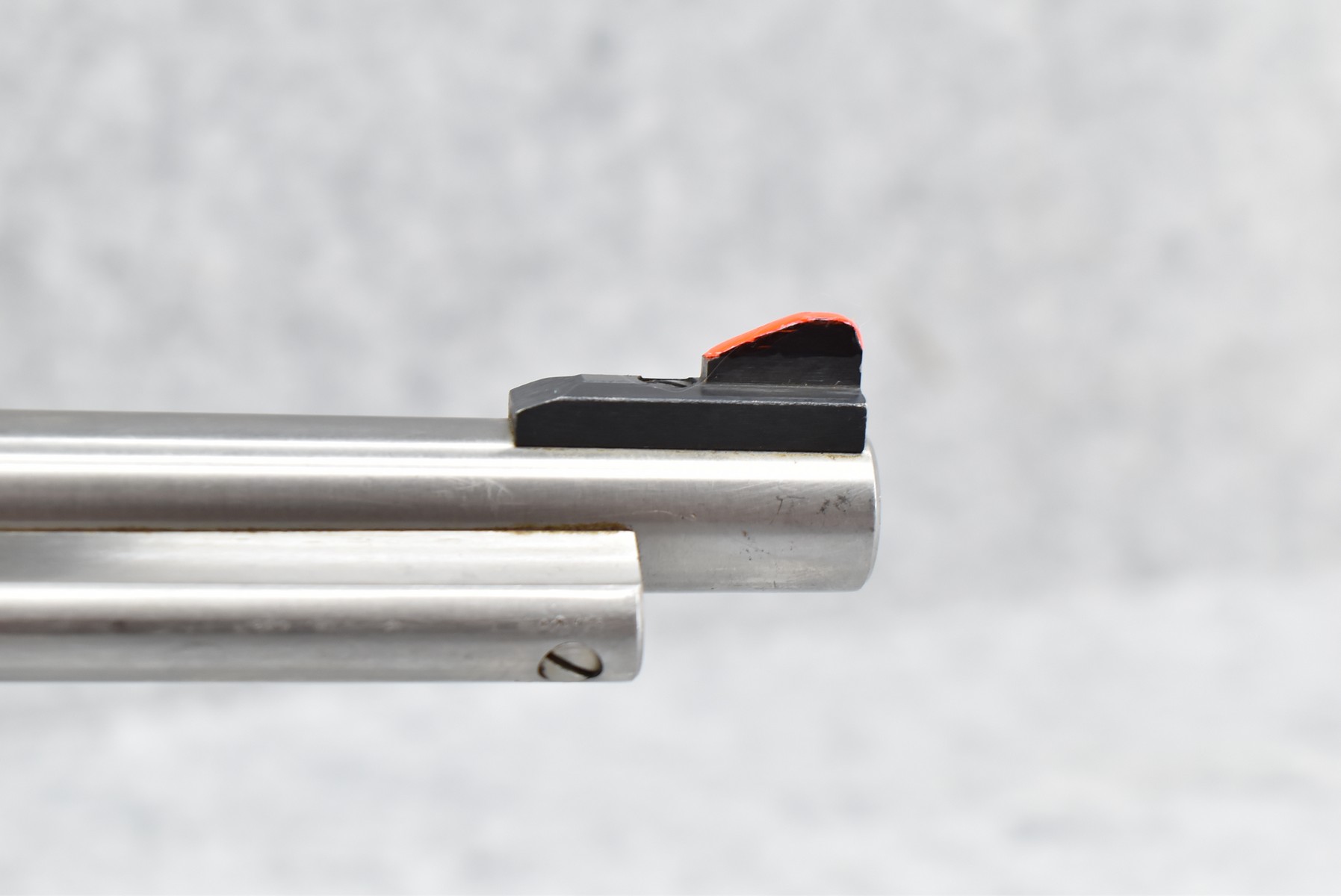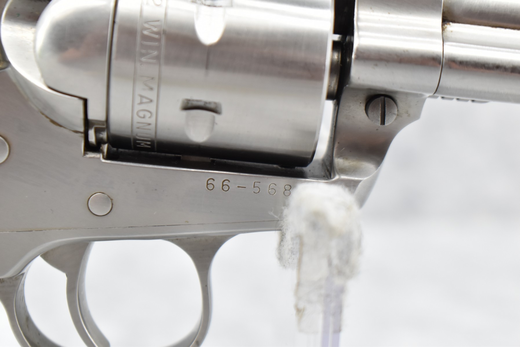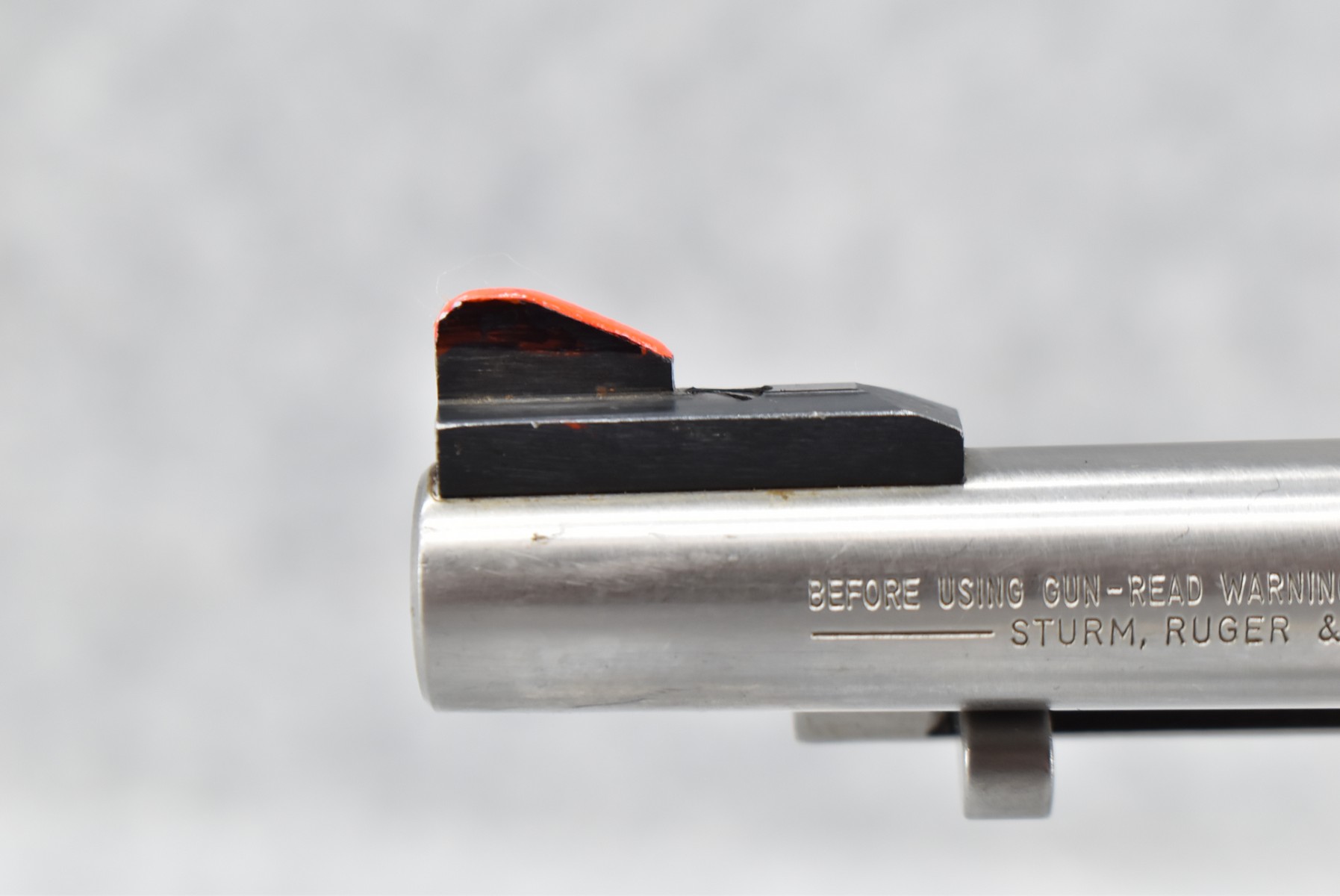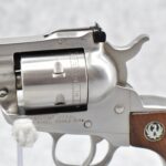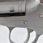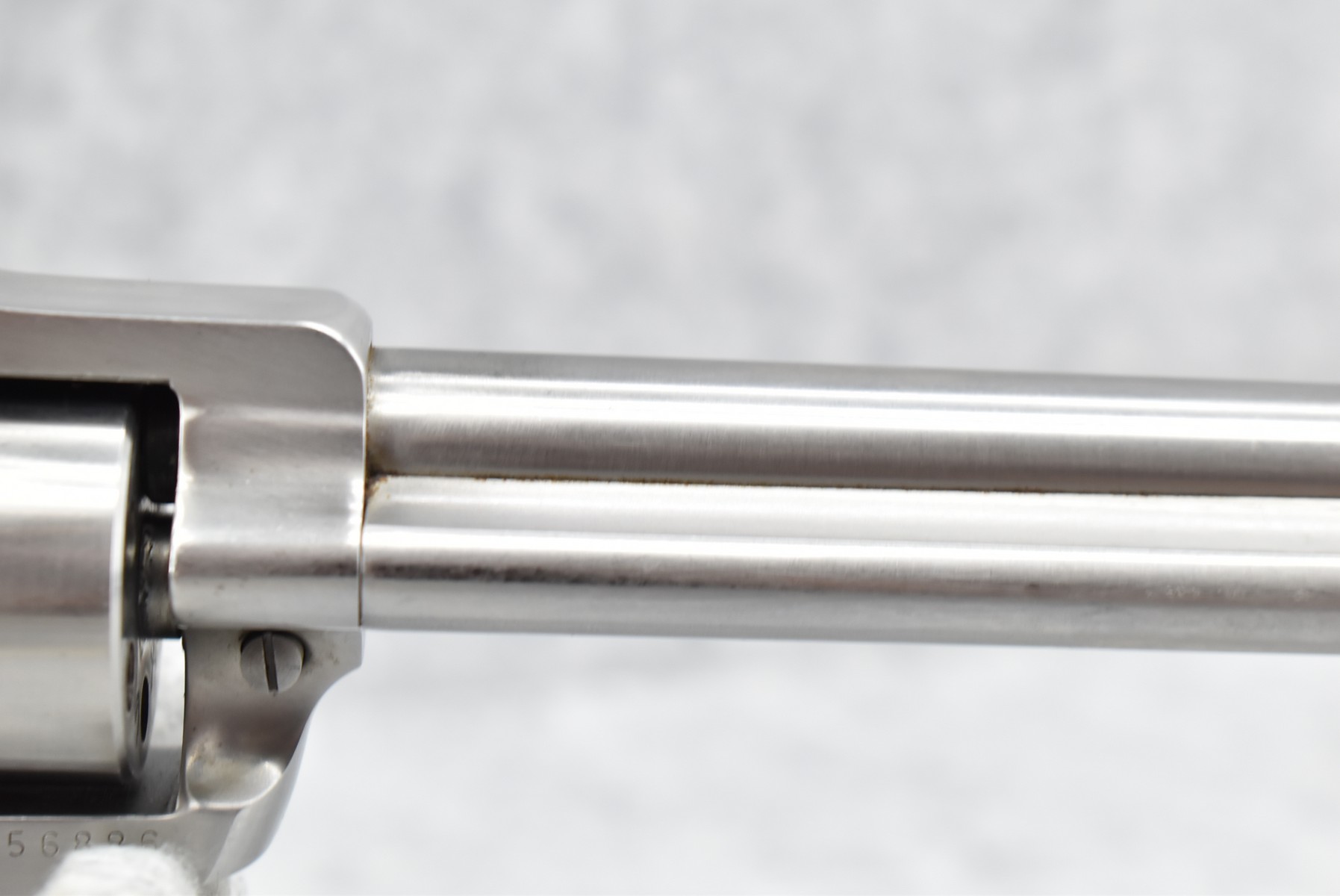 281R. Ruger – New Model Single Six – 22 Mag/22LR Cal. Dual Cylinder Combo Single Action Revolver – w/5.75” Barrel w/Front Blade & Rear Adj. Sight – Stainless Finish – w/Factory Wood Grips w/Silver Eagle Ruger Emblem – w/22LR Stainless Cylinder – Mfg. 1979