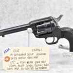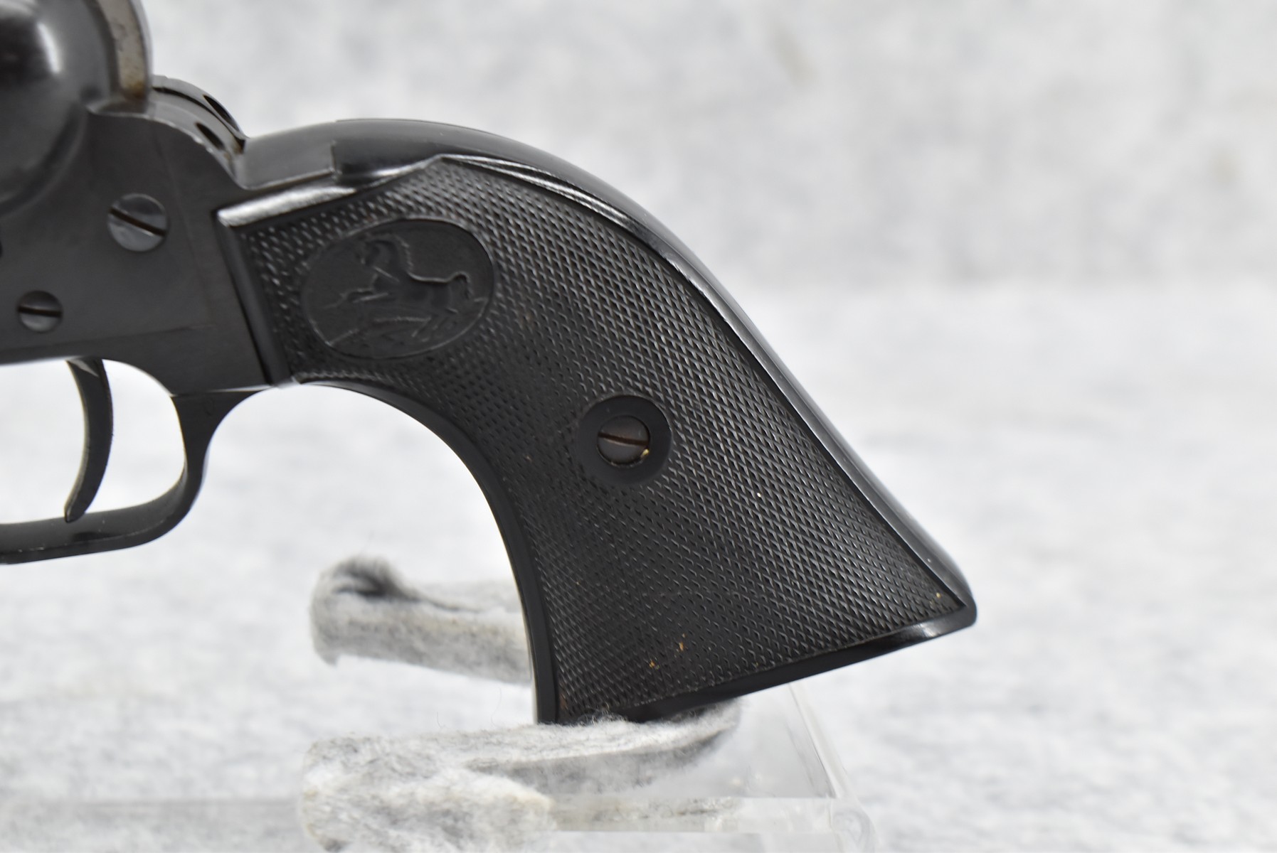 282R. Colt – Mod. Frontier Scout – 22LR Cal. Single Action Revolver – w/4.5” Barrel w/Front Blade & Groove Rear Sights – Blued Finish – w/Factory Rampant Colt Black Plastic Grip – w/Rampant Colt on Left Side of Frame