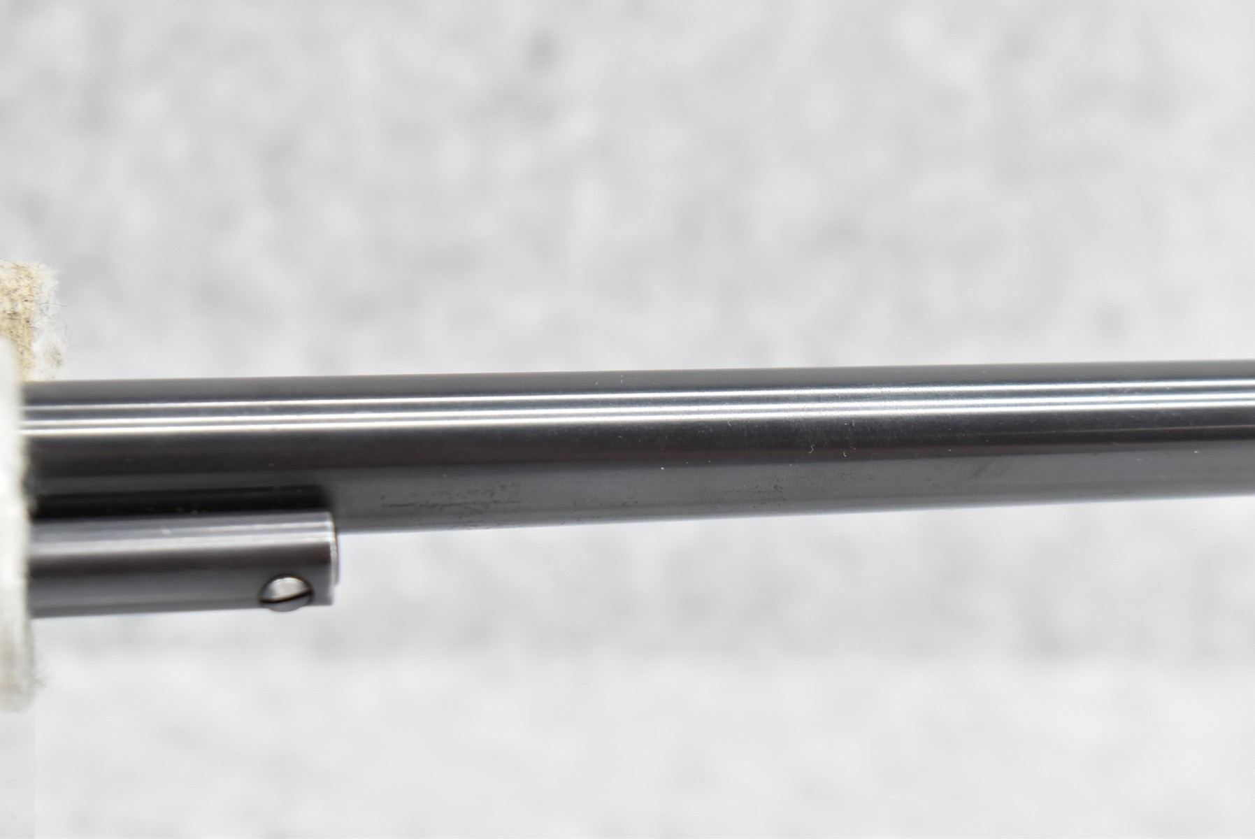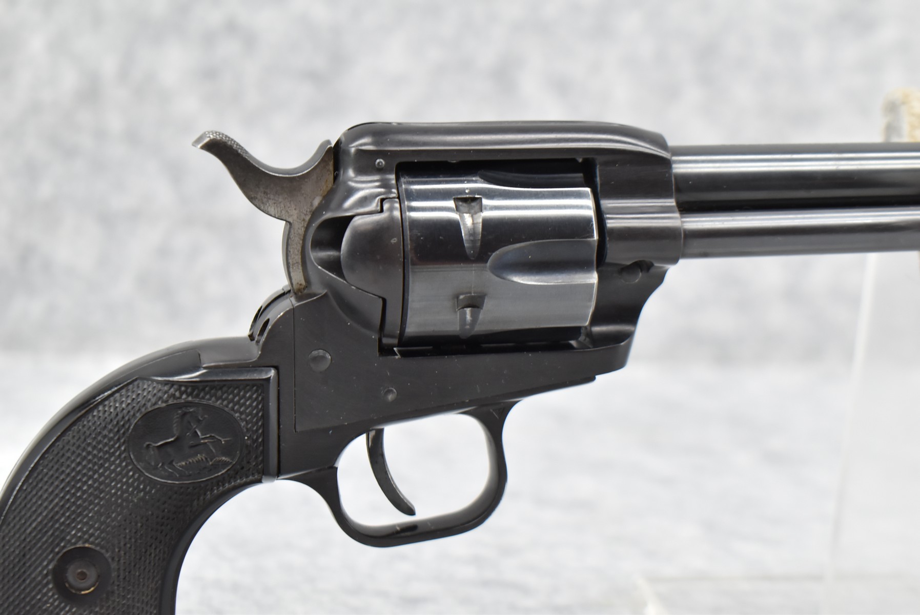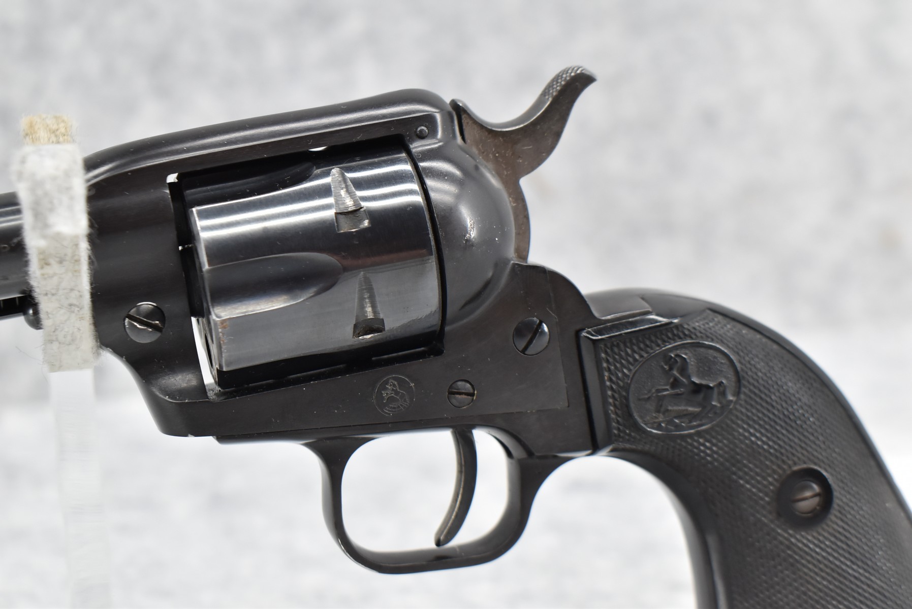 283R. Colt – Mod. Buntline Scout – 22LR Cal. Single Action Revolver – w/9.5” Barrel w/Front Blade & Groove Rear Sights – Blued Finish – w/Factory Rampant Colt Black Checkered Plastic Colt Grips – w/Rampant Colt on Left Side of Frame – Mfg. 1959