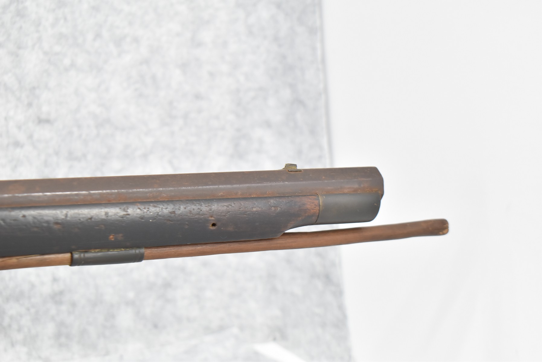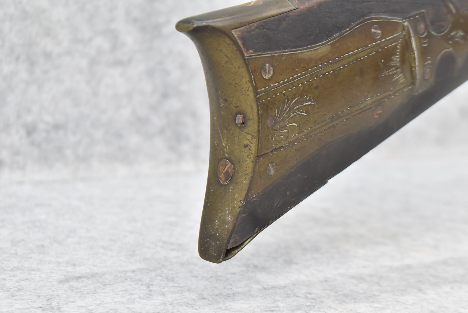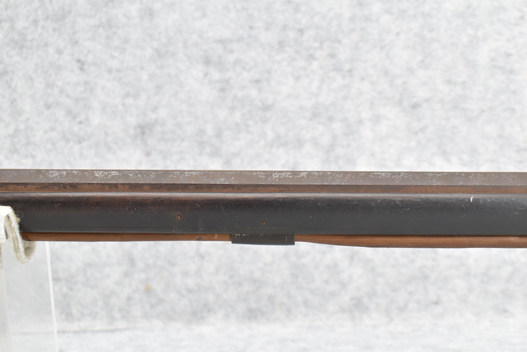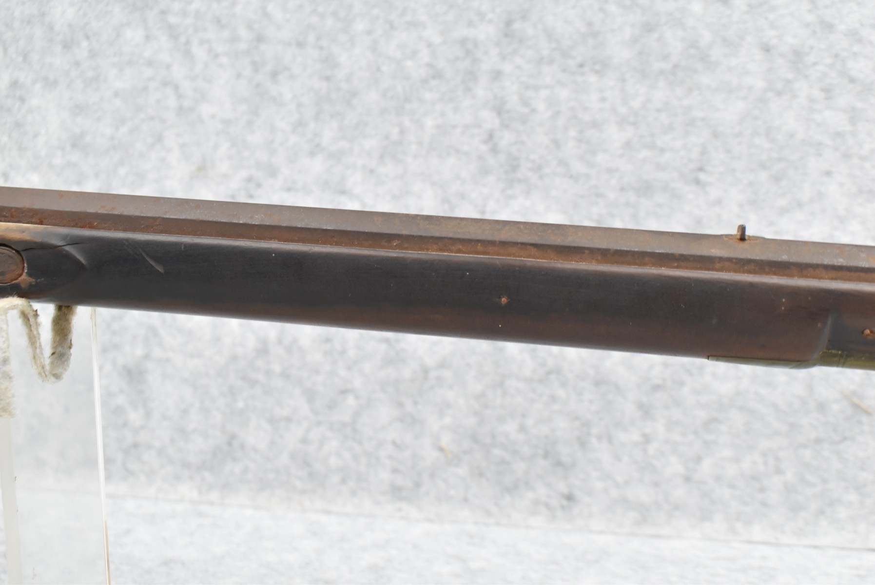 286. Early – 45 Cal. Black Powder Percussion Kentucky Rifle – w/43” Octagon Barrel w/Front & Rear Sights – Brown Finish – w/Straight Grip Full Length Wood Stock w/Crescent Metal Butt Plate, 4pc. Patch Box & Brass Mountings – Lock Signed “Henry Parker Warranted” – Note: Bad Crack & Damage at Grip Wrist w/Repair
