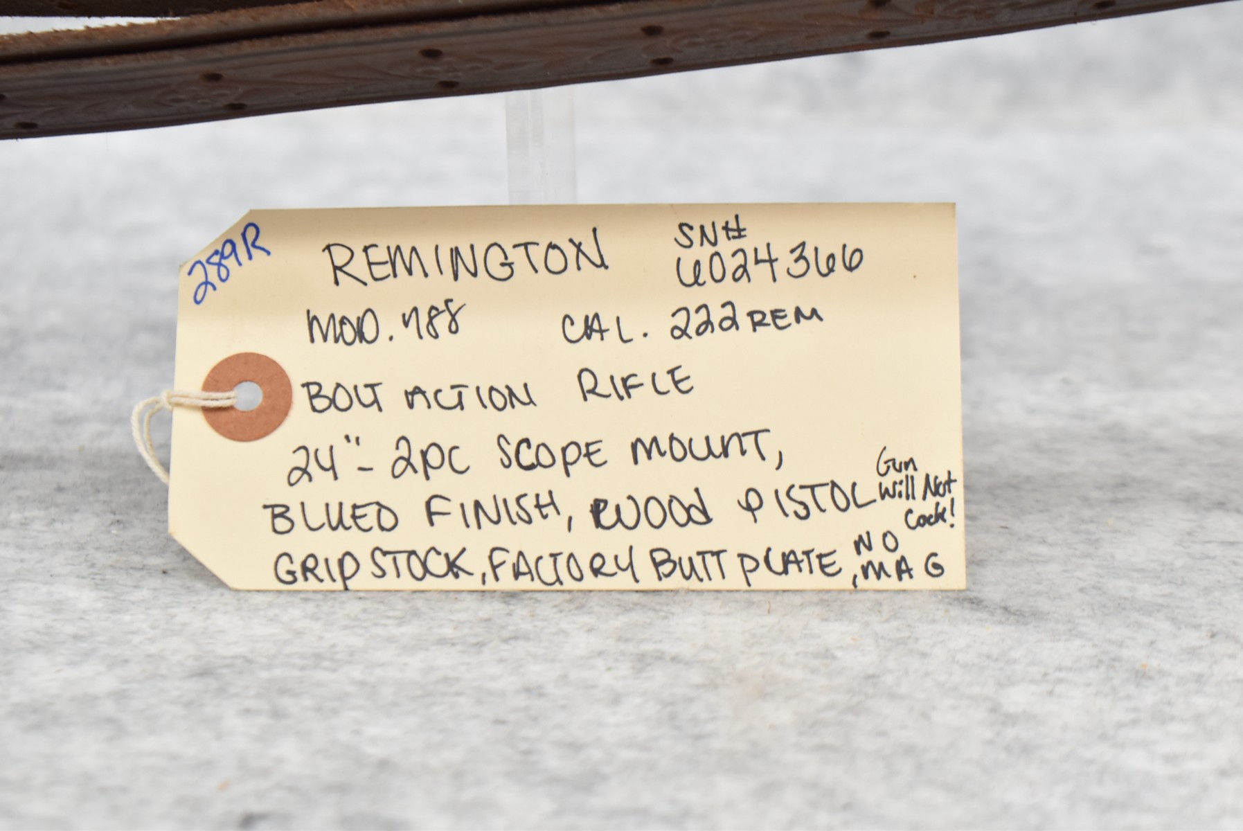 289R. Remington – Mod. 788 – 222 Rem. Cal. Bolt Action Rifle – w/24” Barrel – Blued Finish – w/Wood Pistol Grip stock w/Factory Butt Plate – No Mag. – w/2pc. Scope Mount