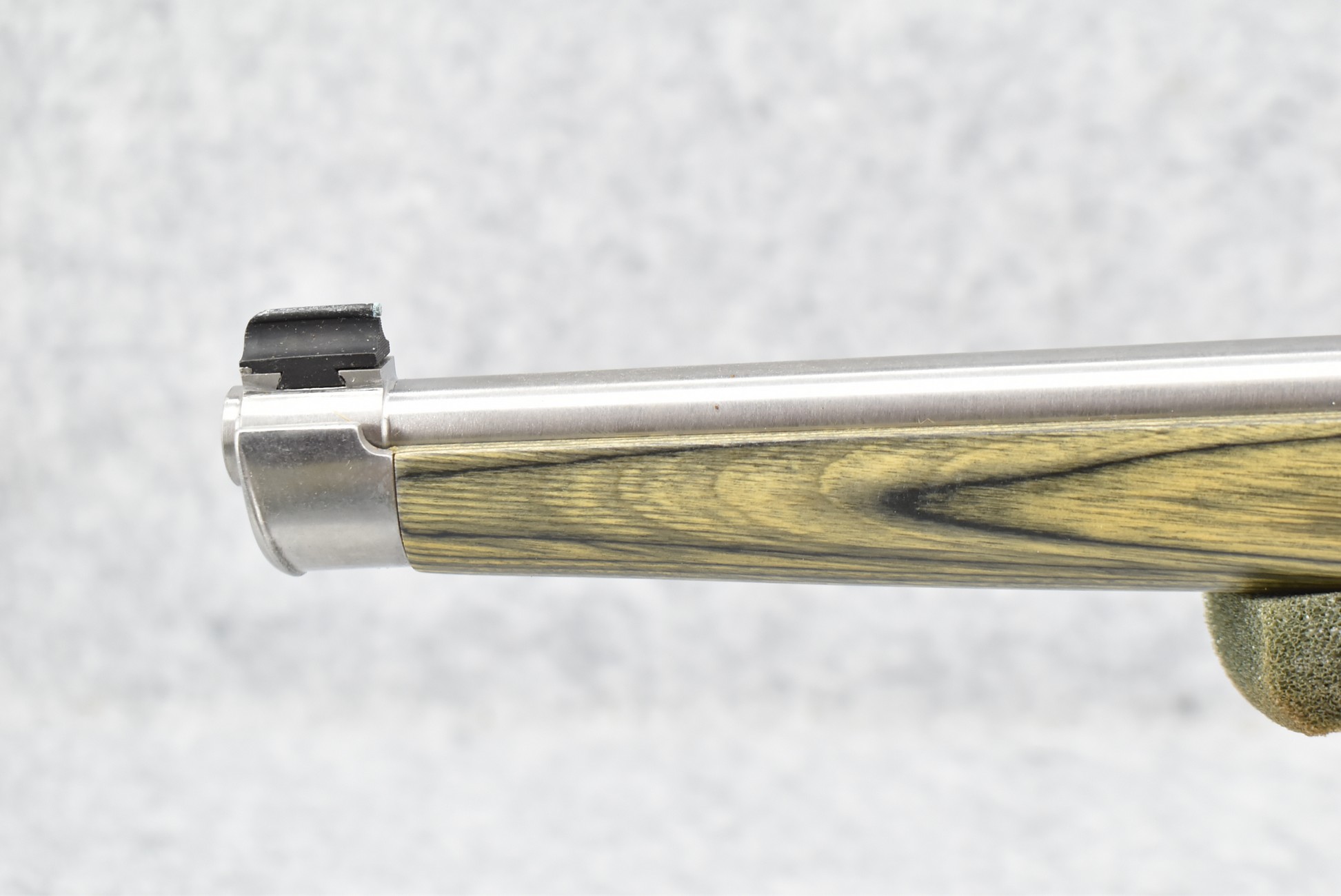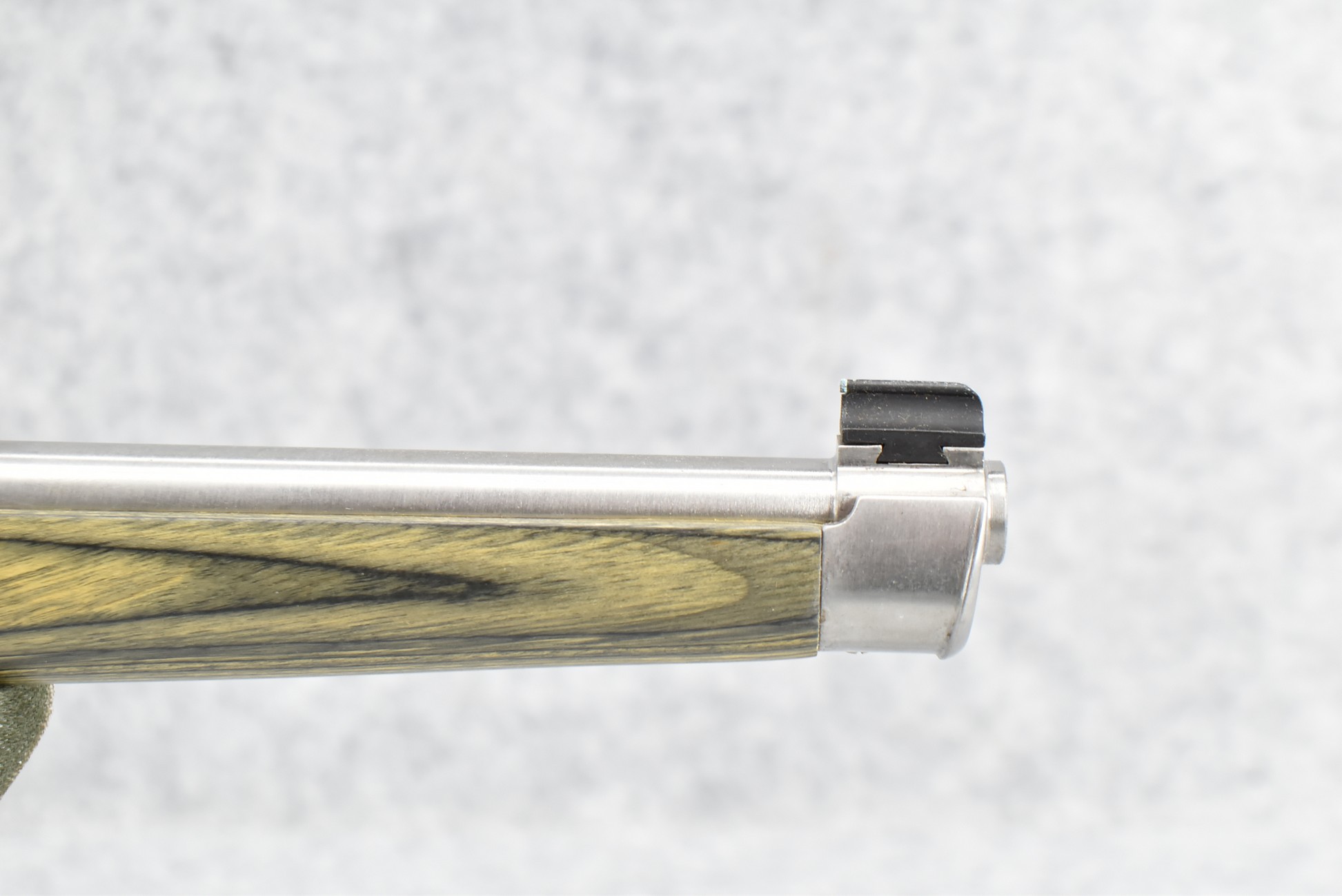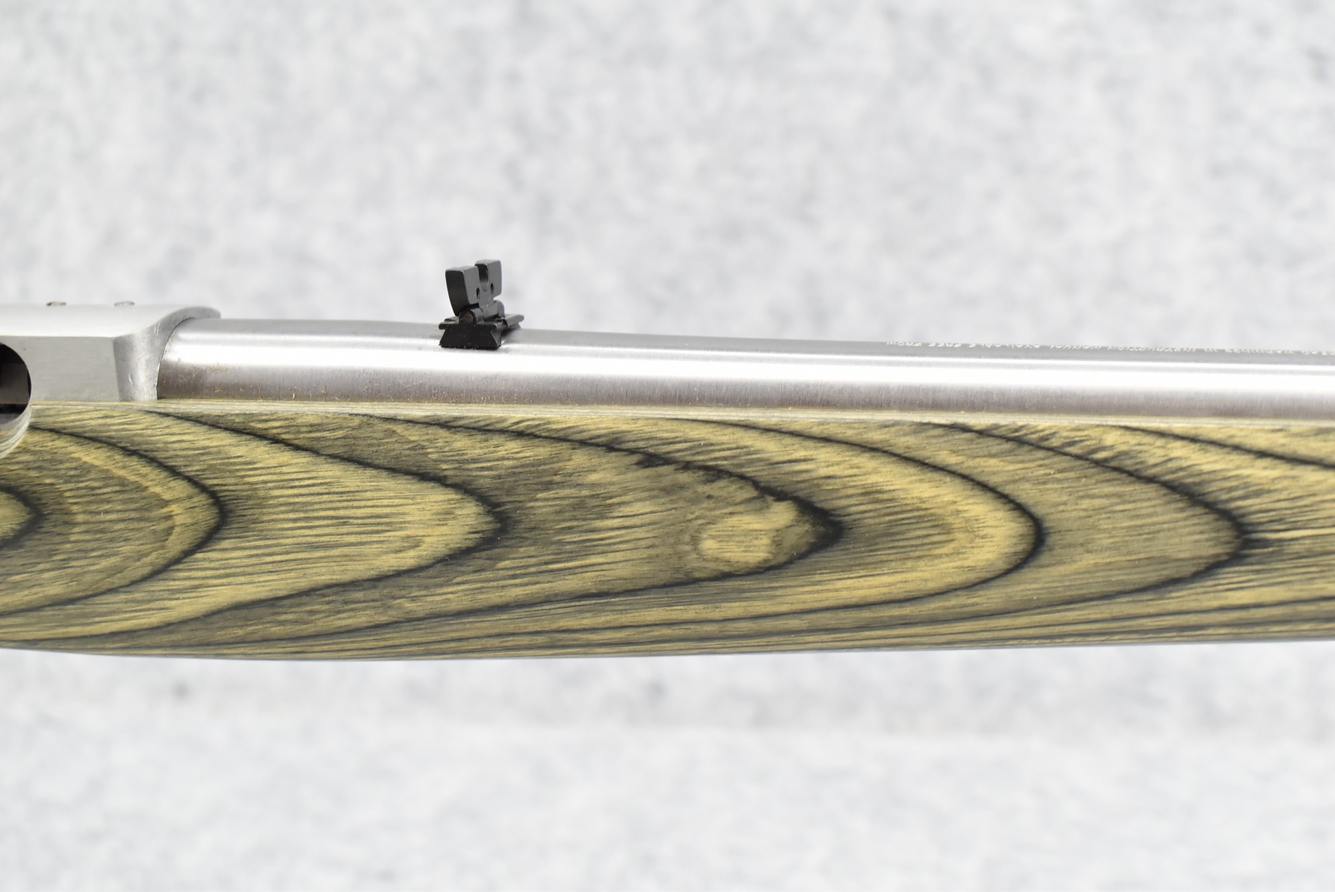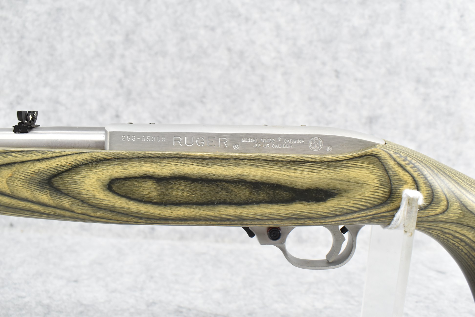 28R. Ruger – Mod. 10/22 International Carbine Limited Edition – 22LR Cal. Semi-Auto Rifle – w/18½” Barrel w/Blade Front and Flip-Up Adjustable Rear Notch Sights – Stainless Finish – w/Capped Pistol Grip Green Laminated Mannlicher Full Wood Stock w/Factory Black Rubber Butt Pad – New in Factory Box w/1 Factory Detachable Magazine, Manual, and Accessories