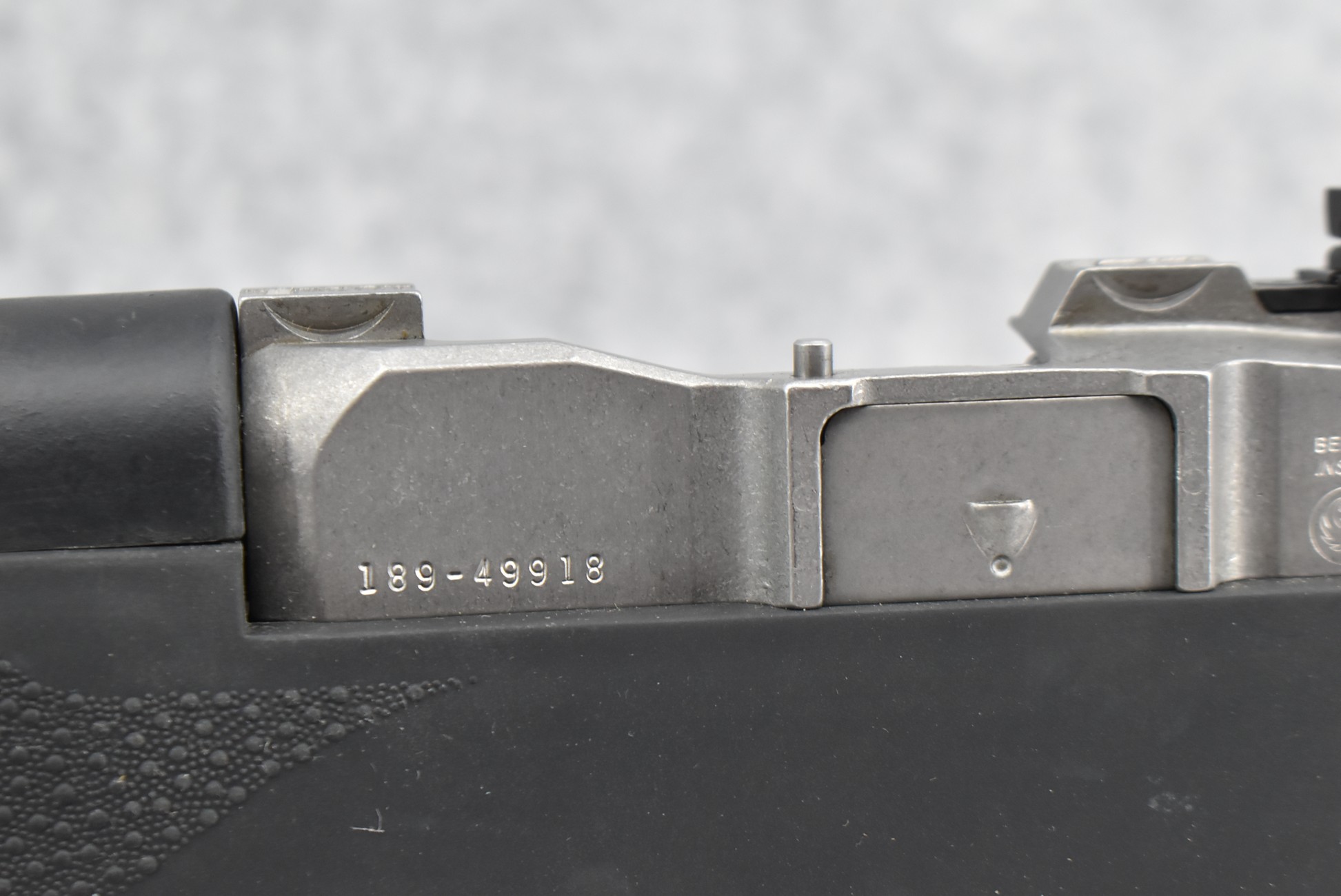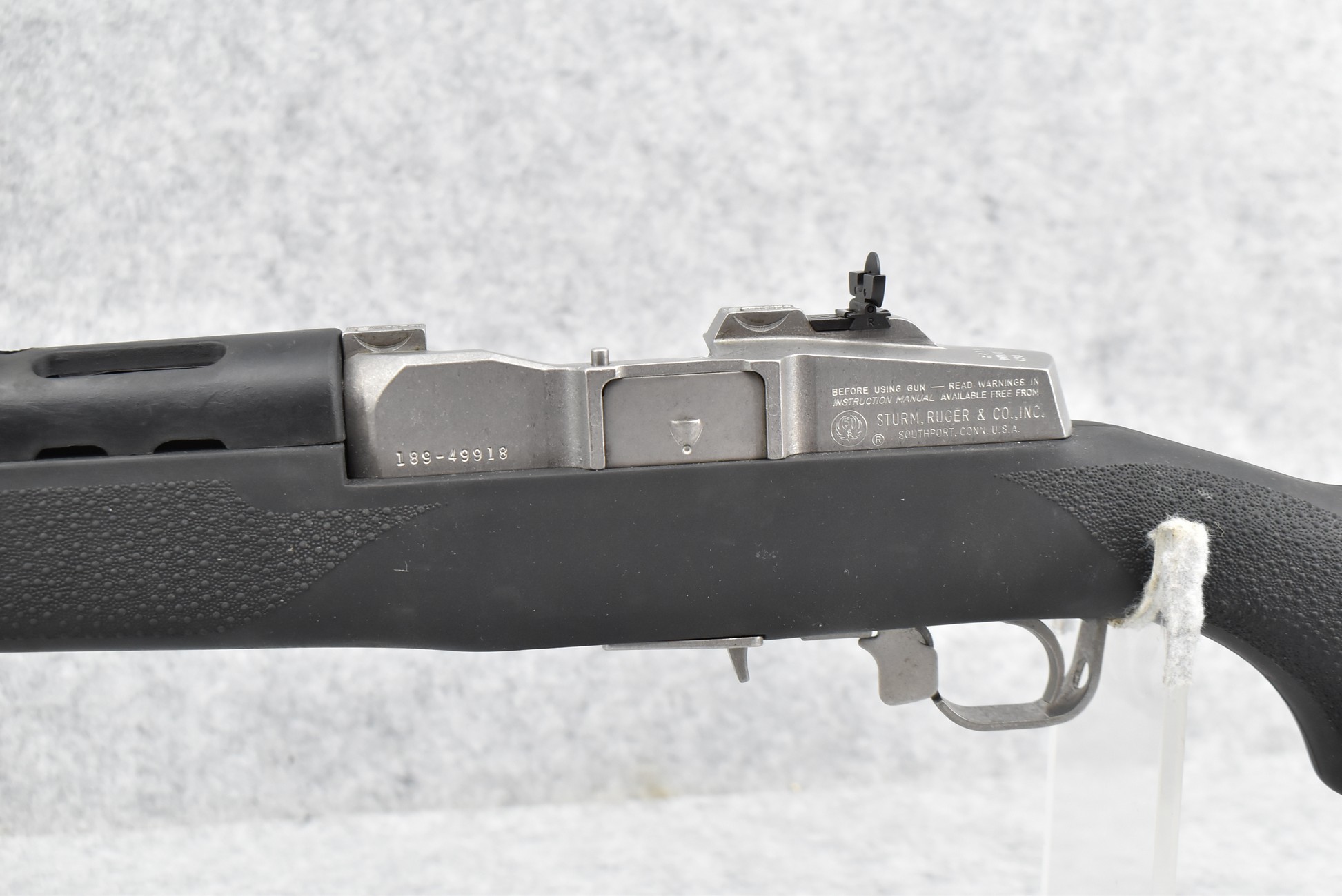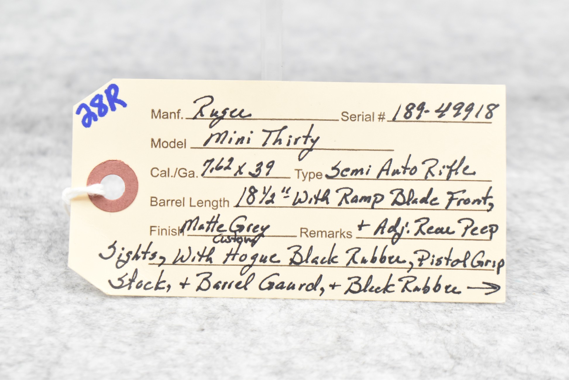 28R. Ruger – Mod. Mini Thirty – 7.62×39 Cal. Semi-Auto Rifle – w/18 ½” Barrel w/Ramp Blade Front & Adj. Rear Peep Sights – Matte Stainless Finish – w/Custom Hogue Black Rubber Pistol Grip Stocks w/Factory Butt Pad
