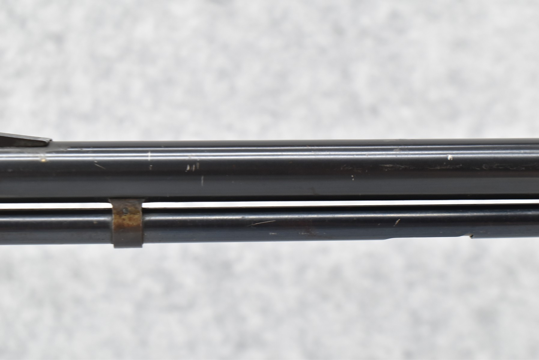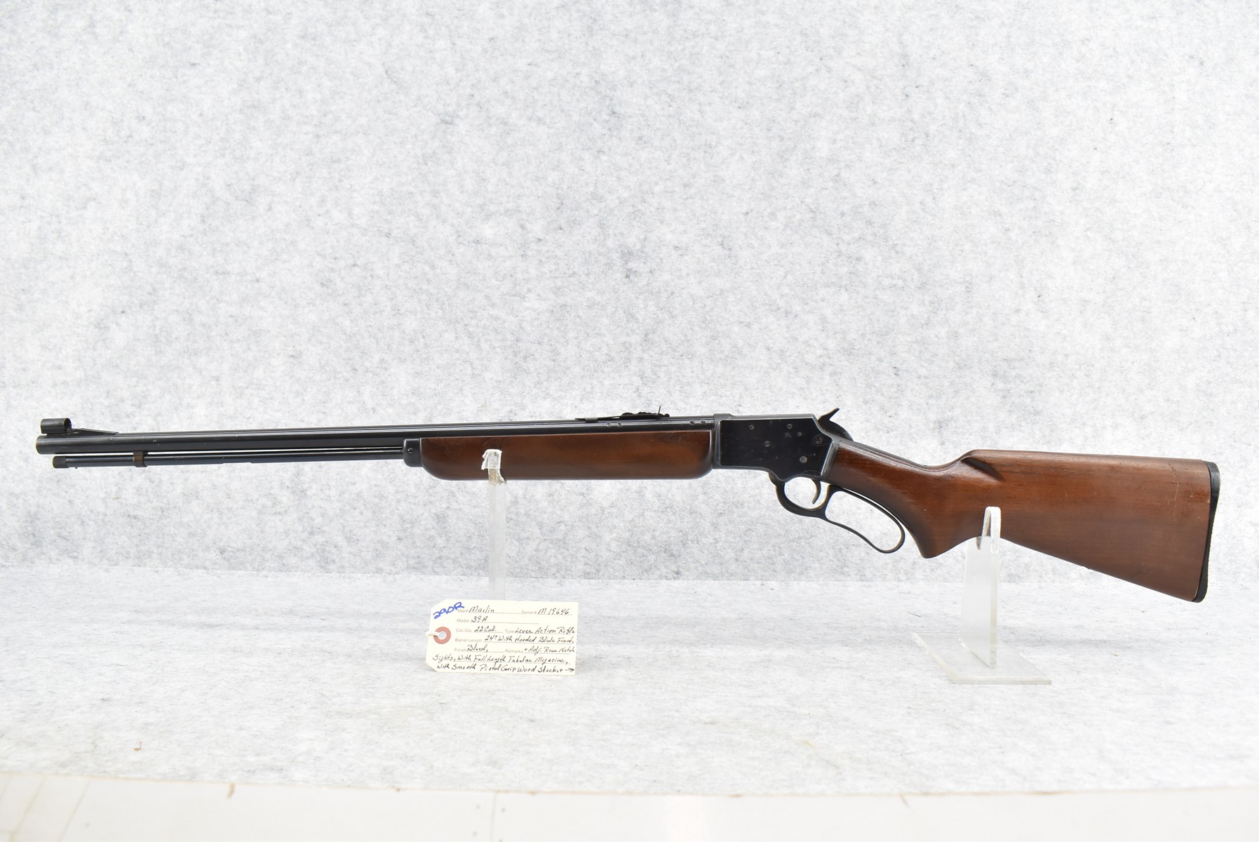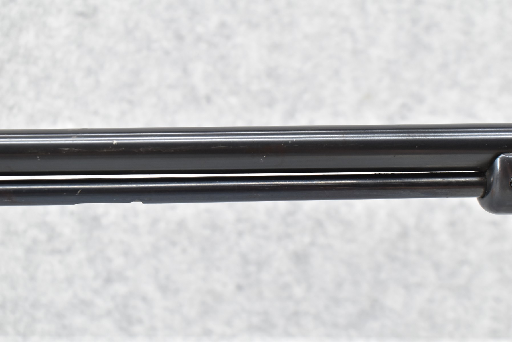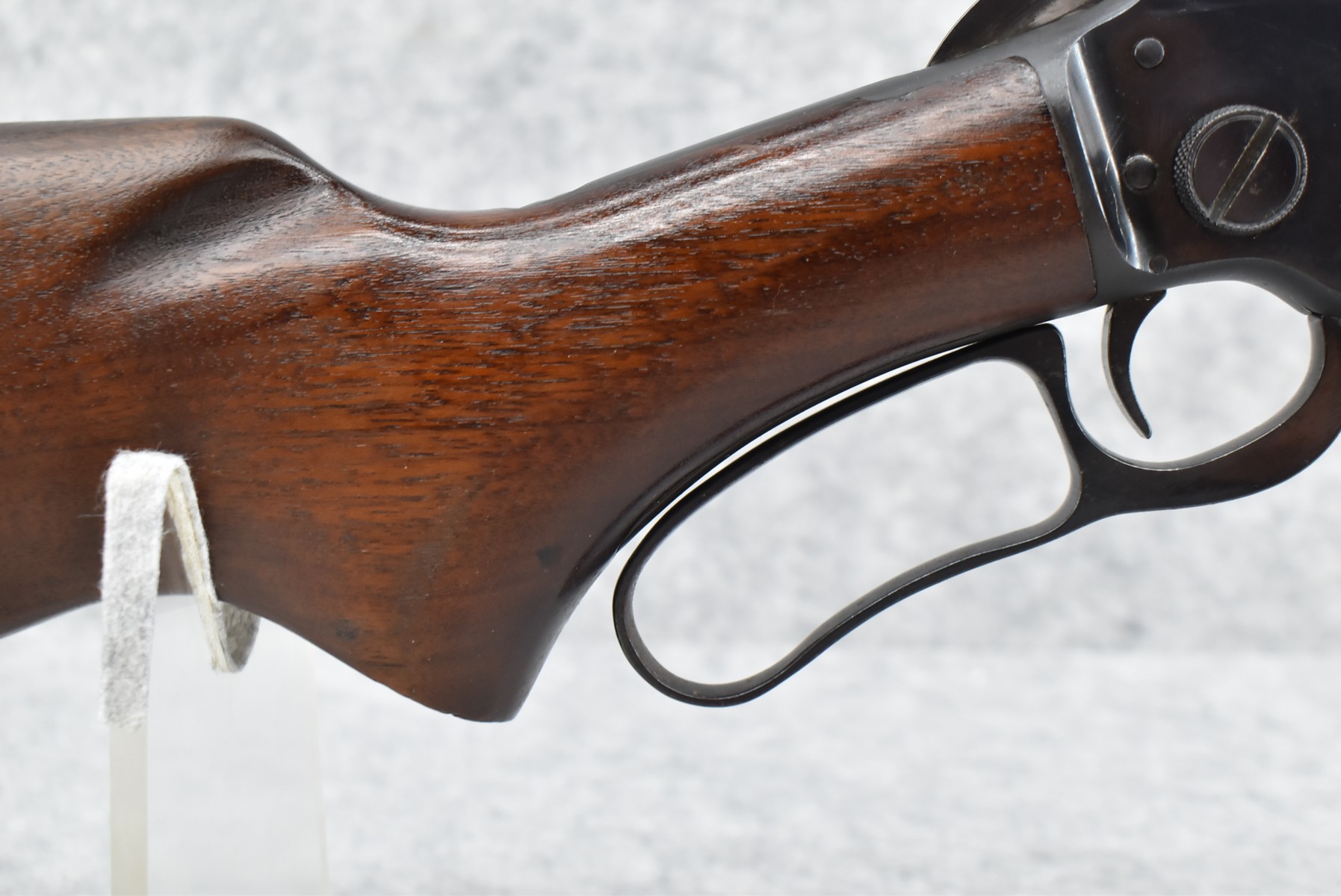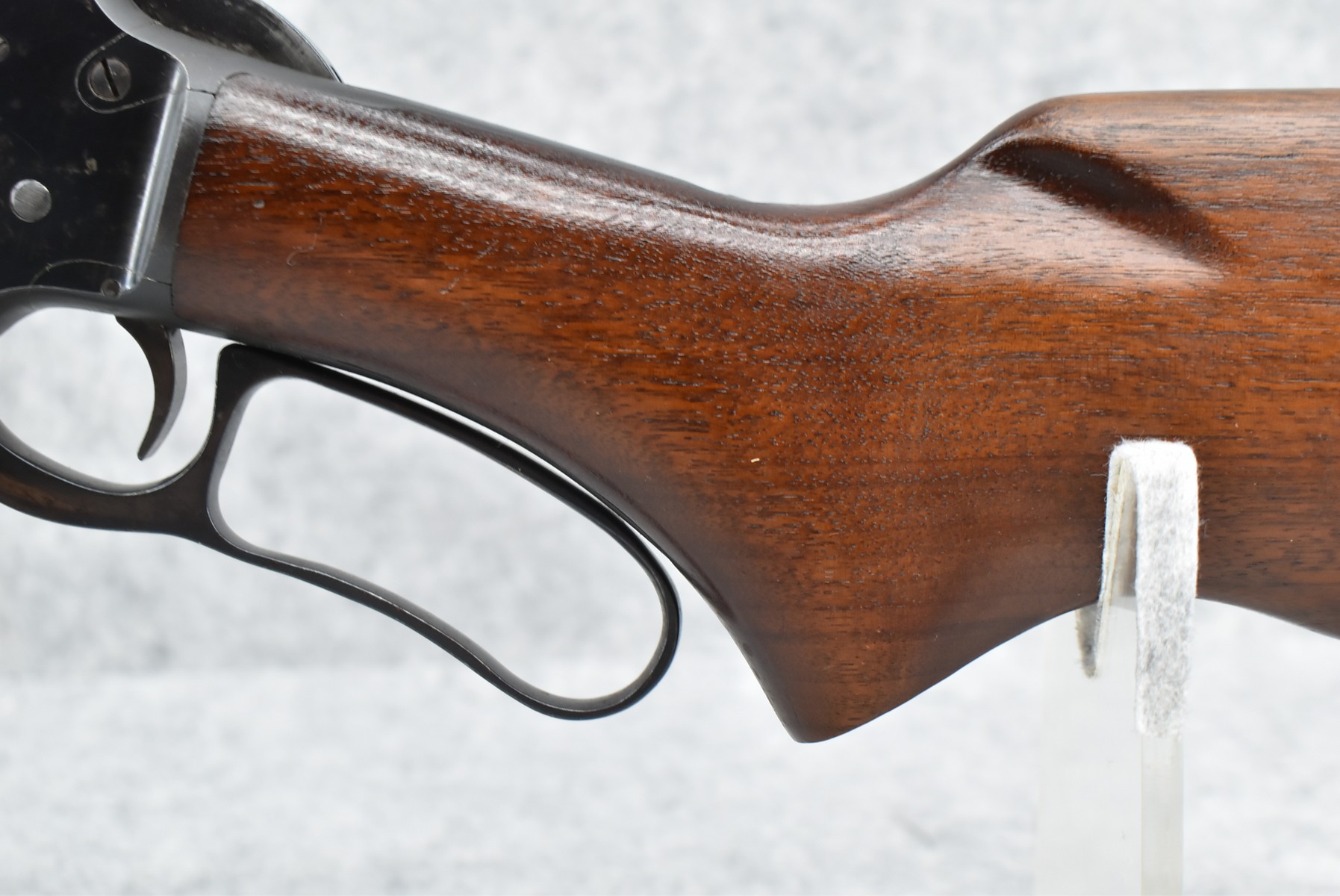 290R. Marlin – Mod. 39A – 22 Cal. Lever Action Rifle – w/24” Barrel w/Hooded Blade Front & Adj. Rear Notch Sights w/Full Length Tubular Magazine – Blued Finish – w/Smooth Pistol Grip Wood Stock & Capped Forearm w/Factory Checkered Butt Plate – Note: Left Side of Barrel is Drilled & Tapped for Scope
