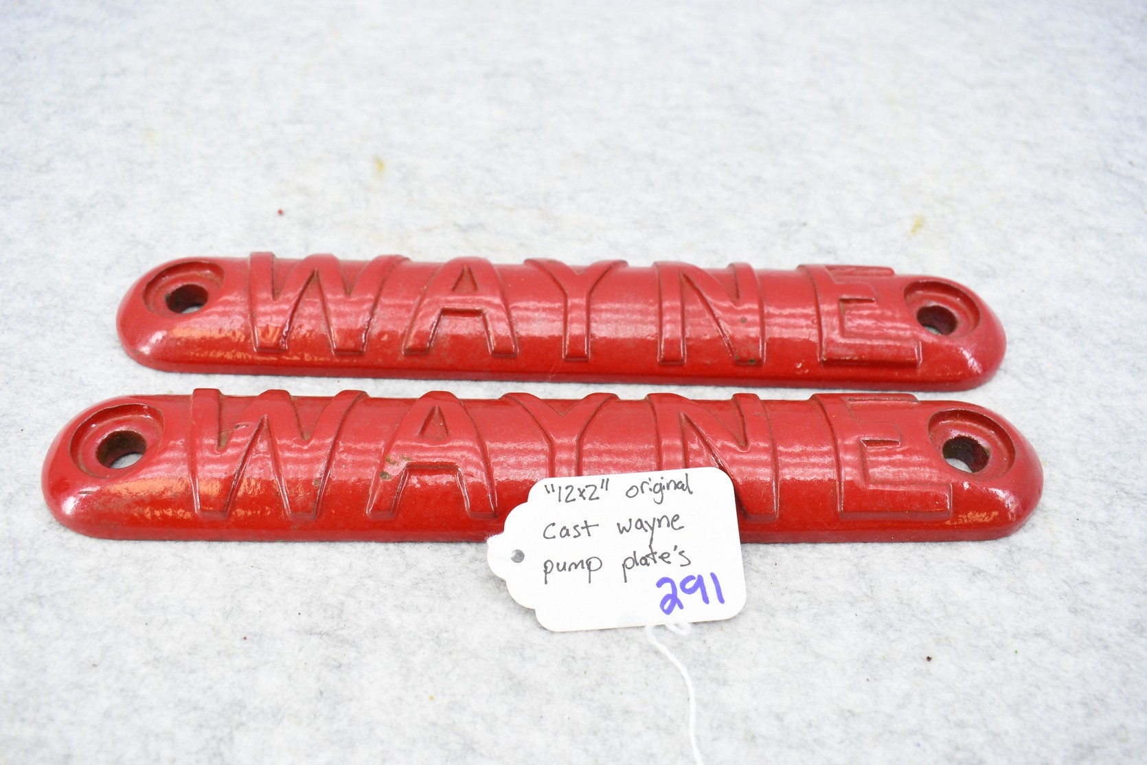 291. Pair of Cast Wayne Pump Side Plates – Both are 12” Long x 2” Wide