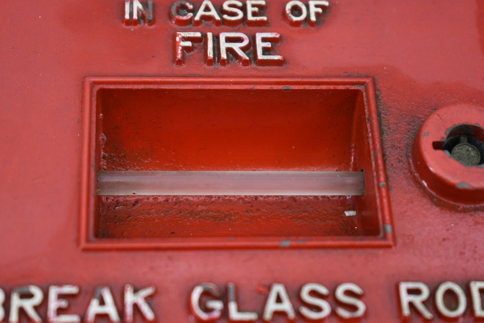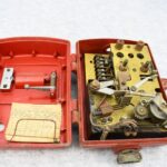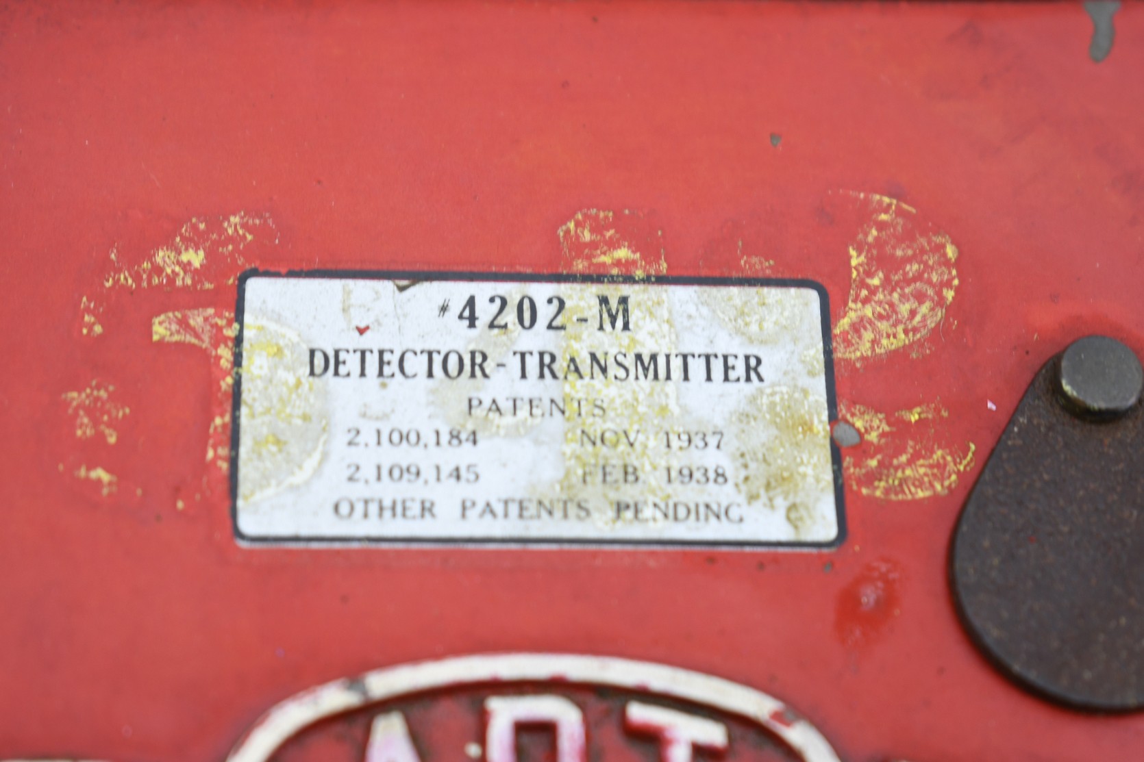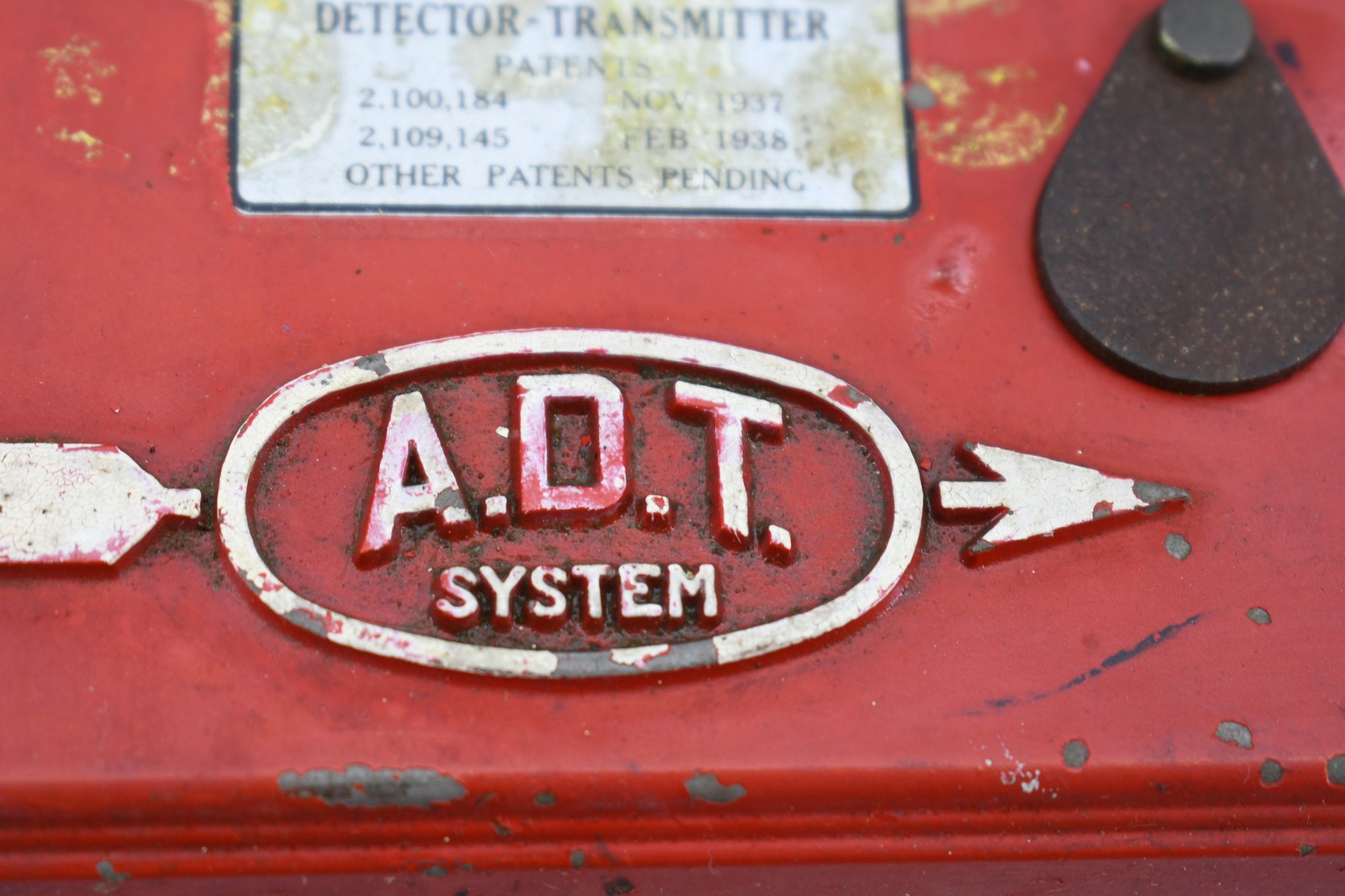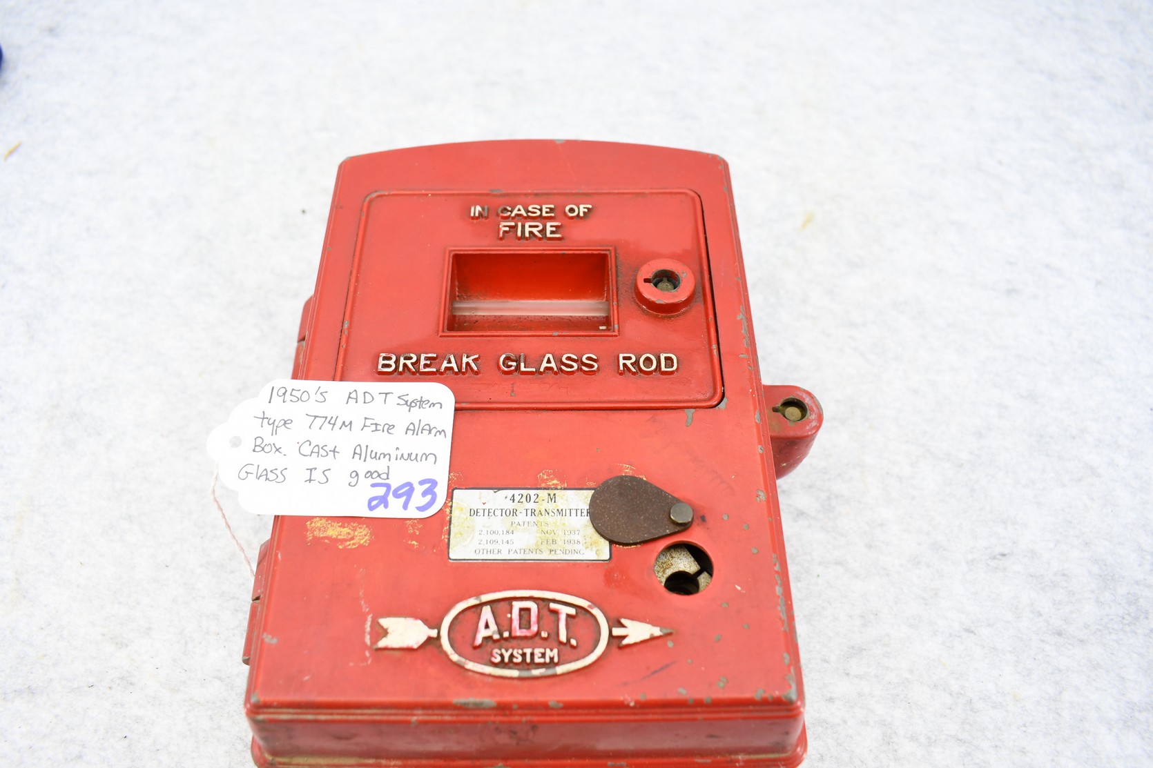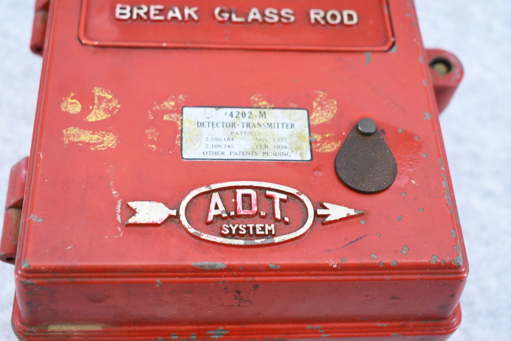 293. 1950’s Era ADT System Break-Glass Fire Alarm Box – Detector Transmitter 4202-M – Insides are Present – Unit is Very Heavy