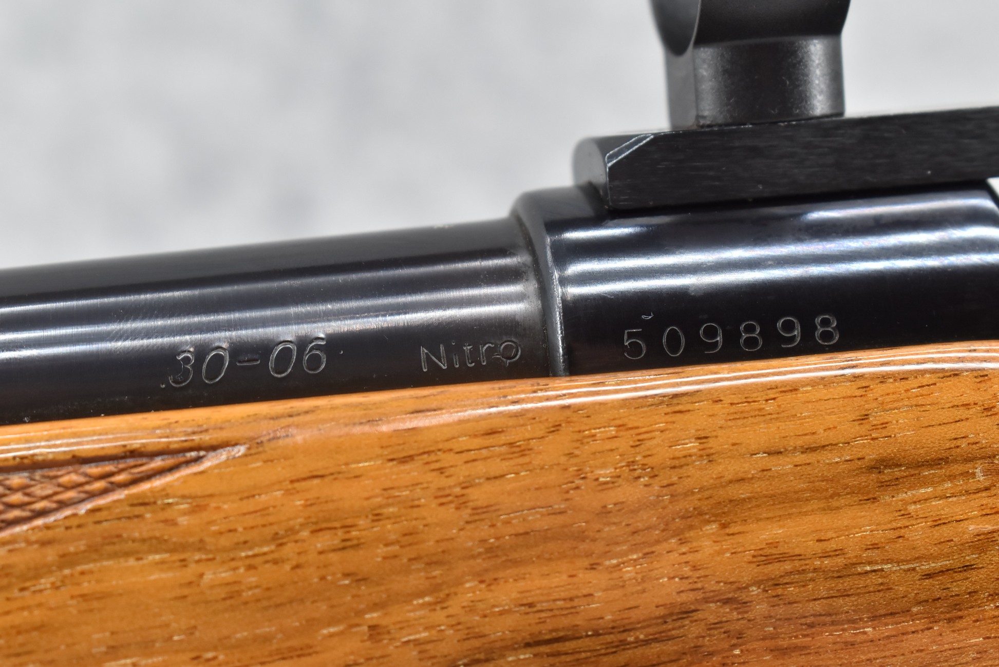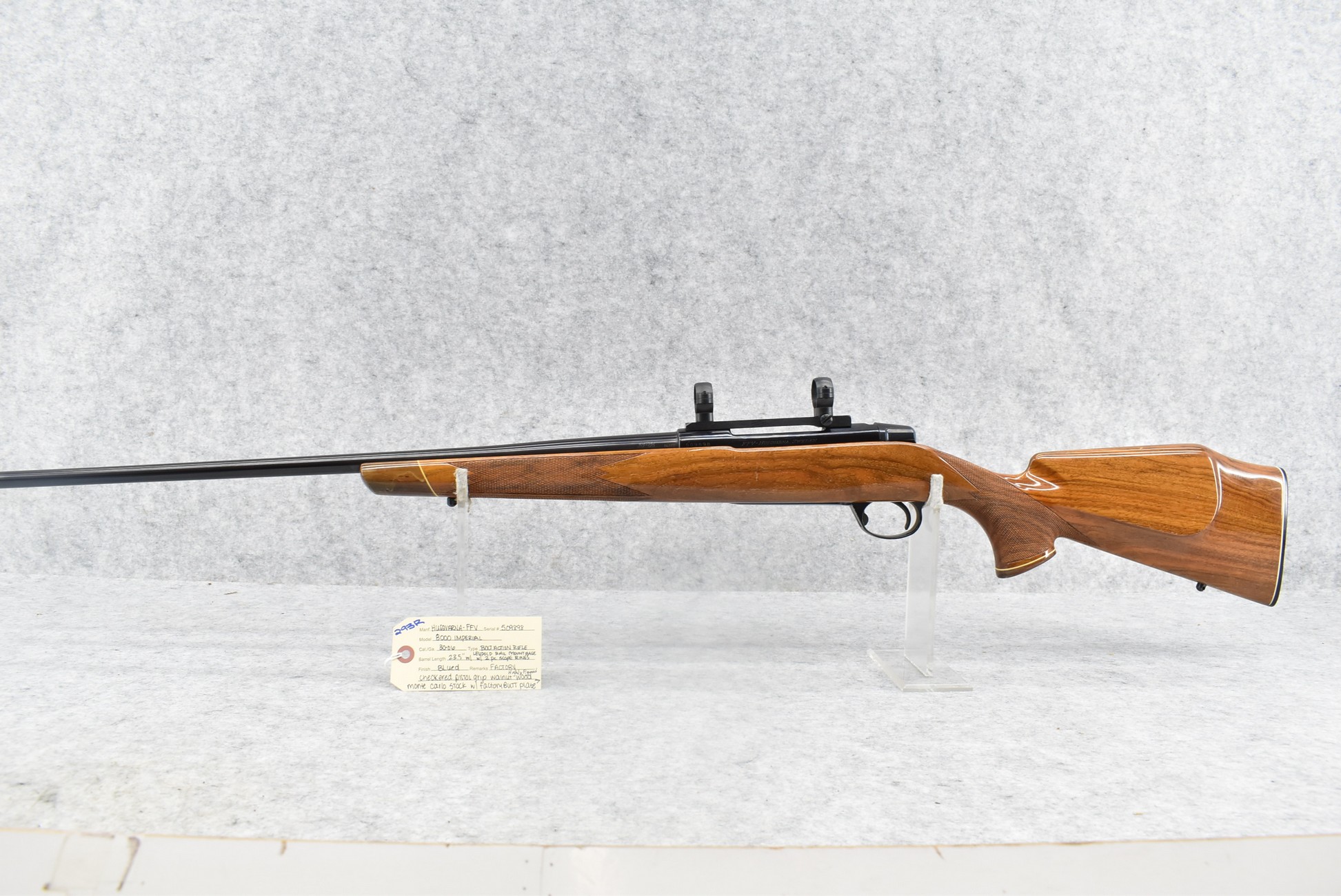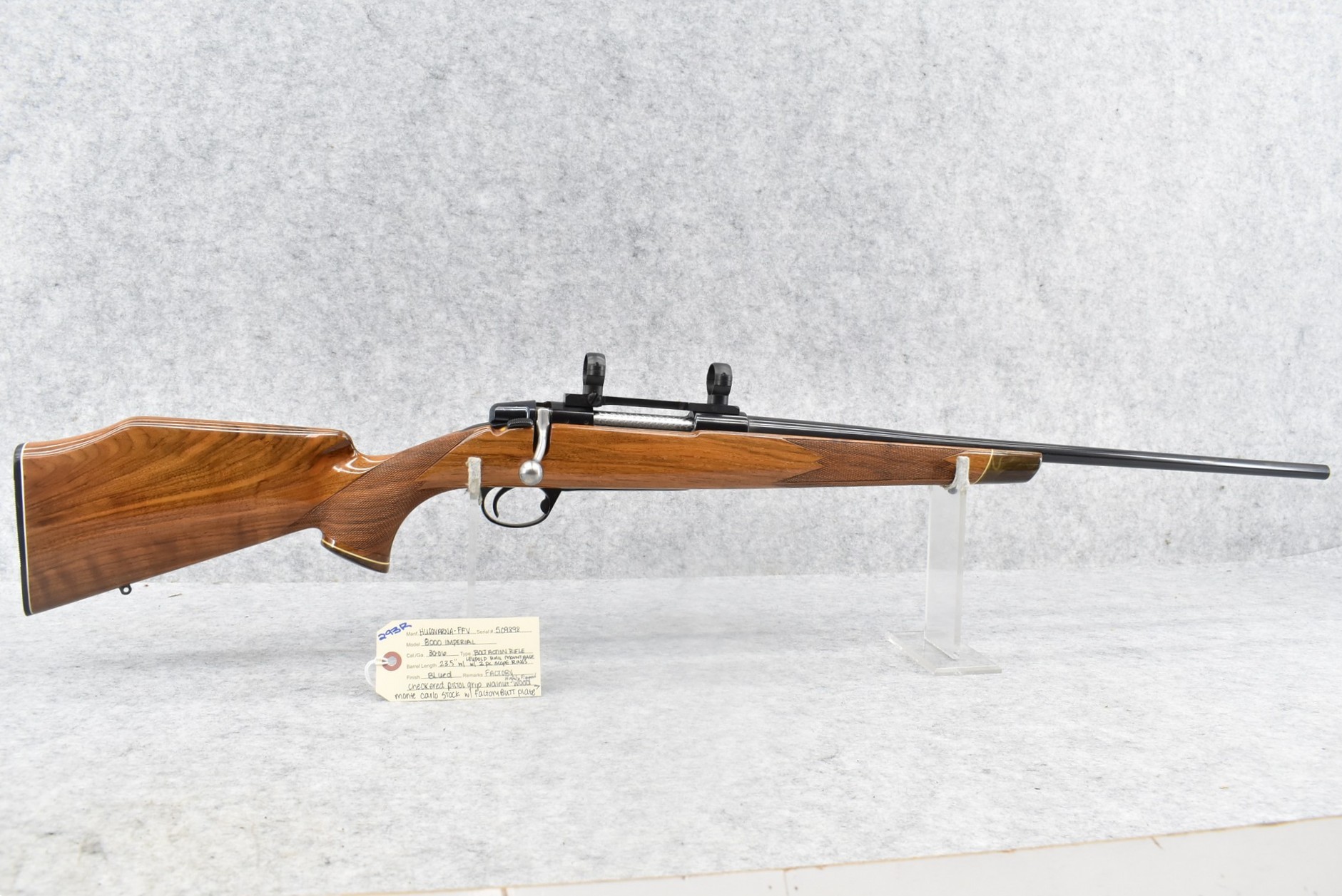 293R. Husqvarna-FFV – Mod. 8000 Imperial – 30-06 Cal. Bolt Action Rifle – w/23.5” Barrel – Blued Finish – w/Engraved Floor Plate – w/Jeweled Bolt – w/Factory Checkered Pistol Grip Walnut Highly Figured Monte Carlo Wood Stock w/Factory Butt Plate – w/Adj. Trigger – w/Leupold Rail Mount Base & 2pc. Scope Rings – Mfg. Between 1971-1972