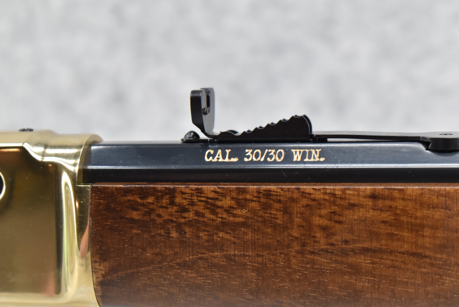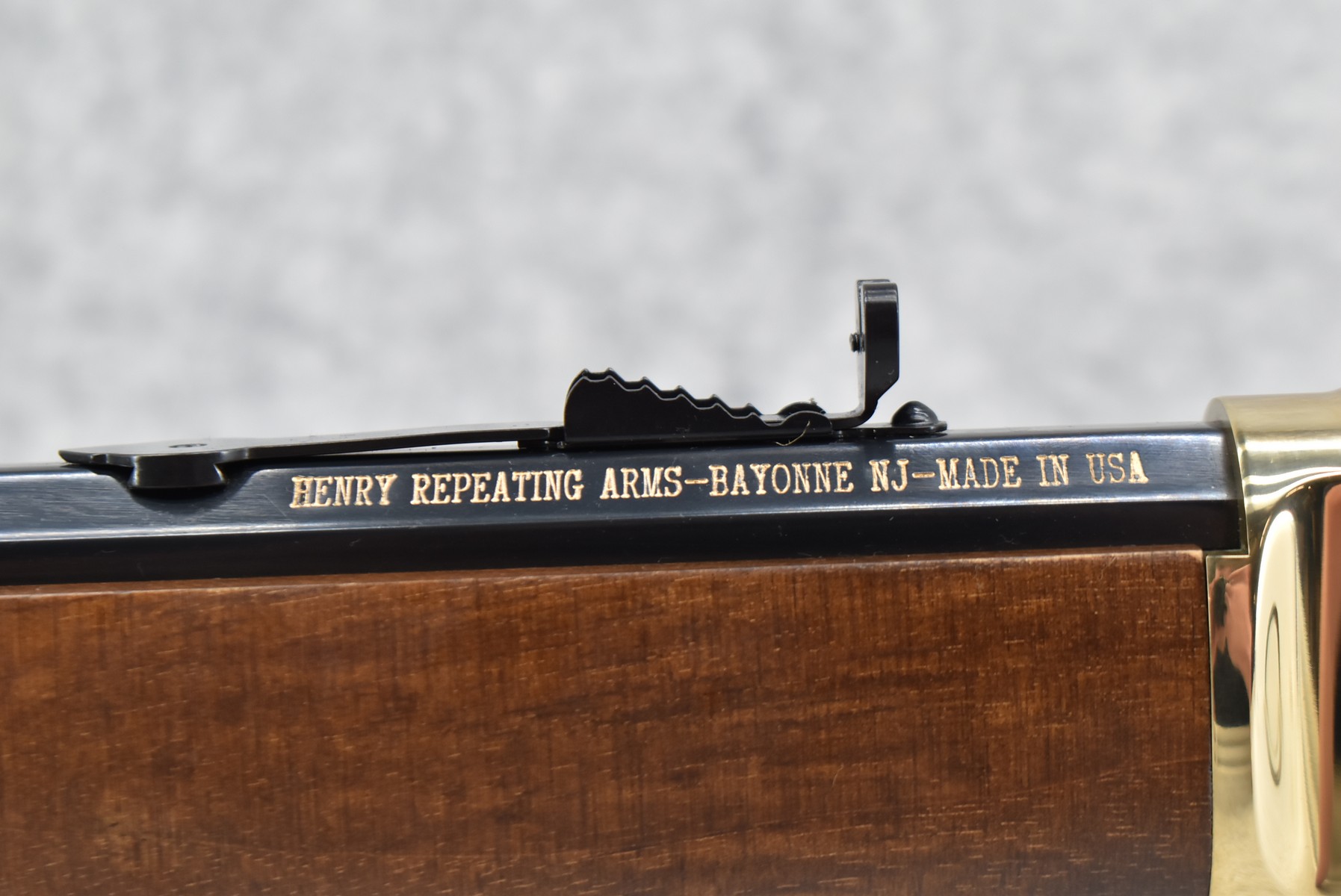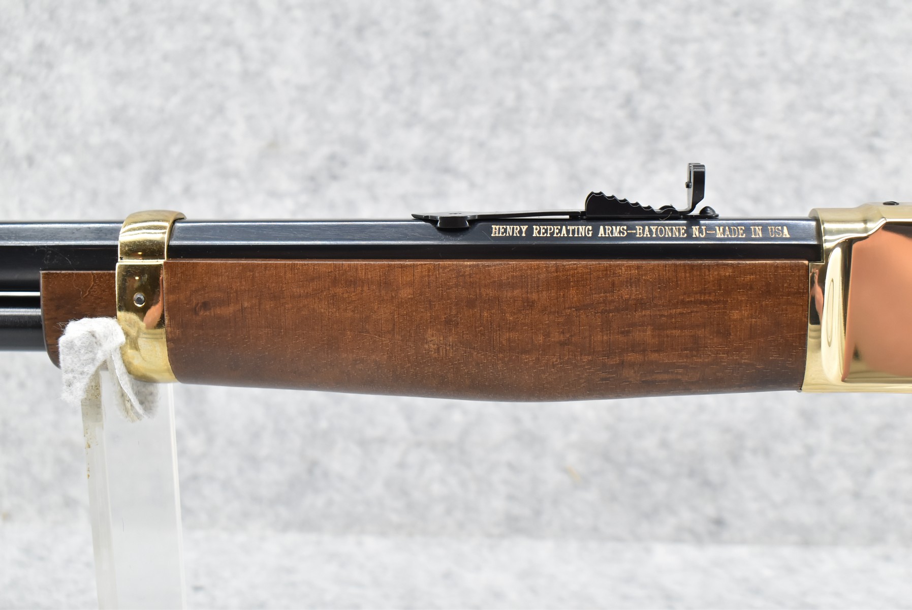 295R.     Henry – Mod. Side Gate (H009BGL) – 30-30 Win. Cal. Lever Action Rifle – w/20” Octagon Barrel w/Beaded Front & Buckhorn Rear Sights w/Tubular Magazine – Blued Finish w/Brass Receiver – w/Straight Grip Wood Stocks w/Factory Metal Butt Plate – Unfired w/Factory Box & Manual