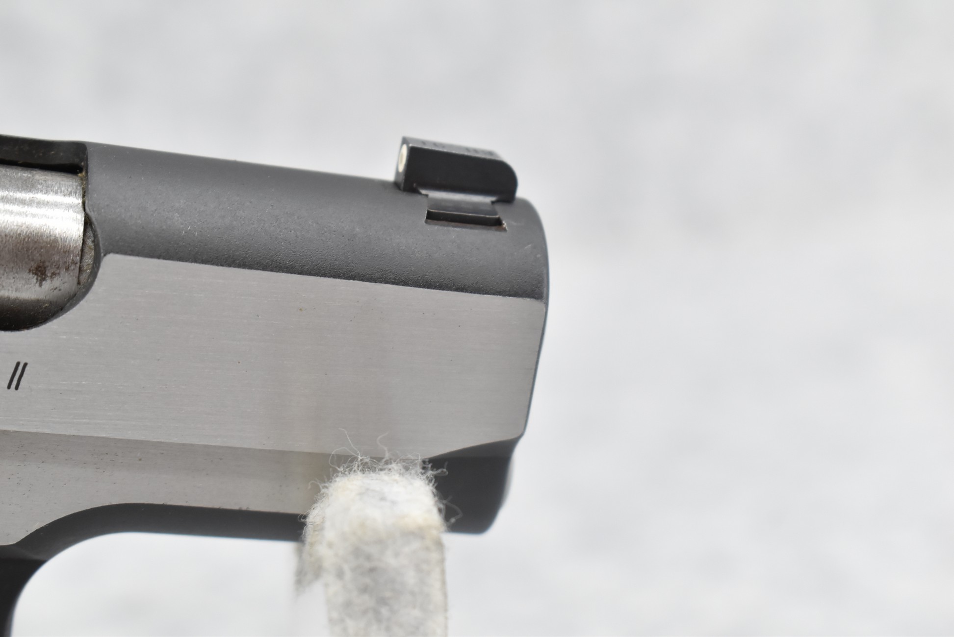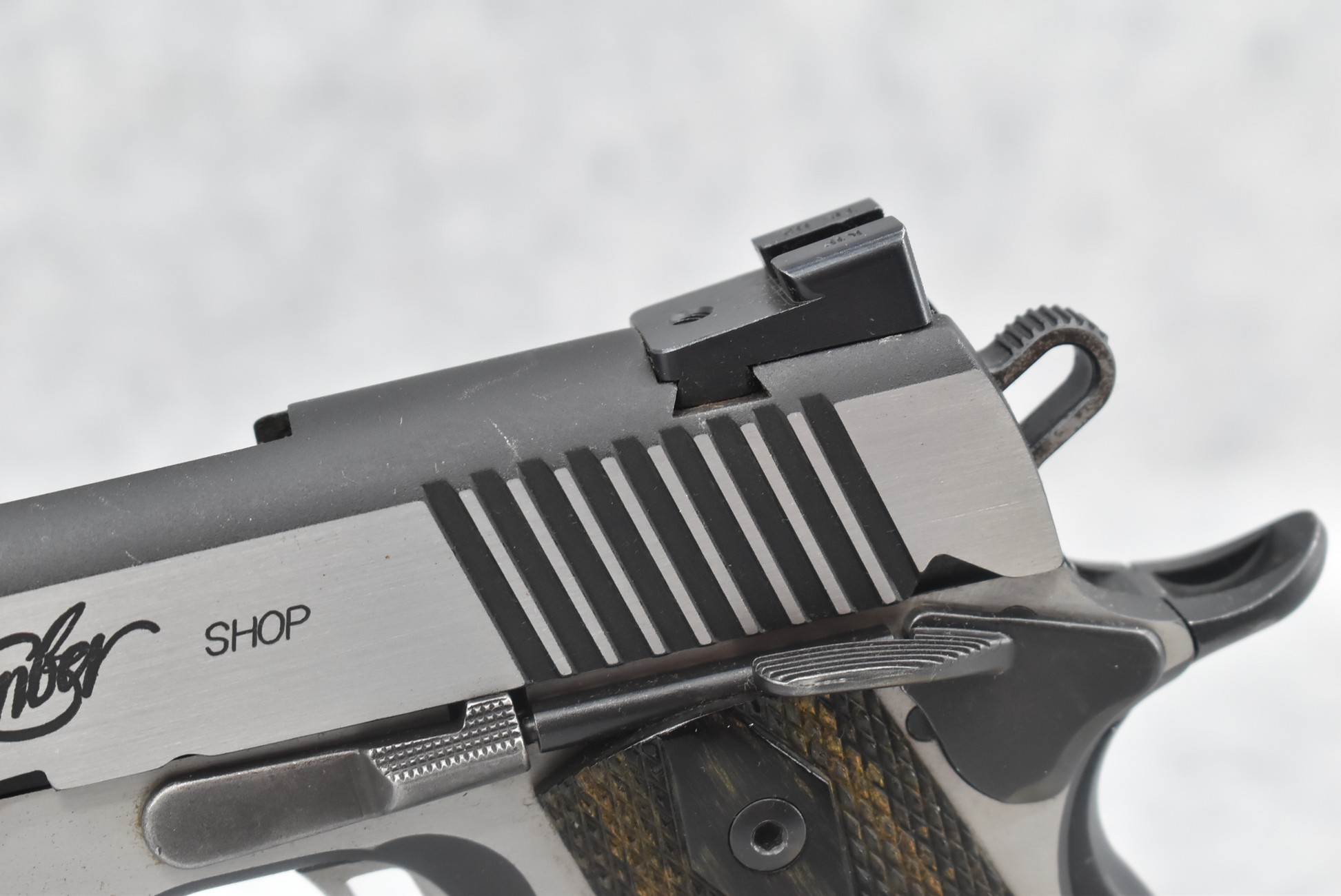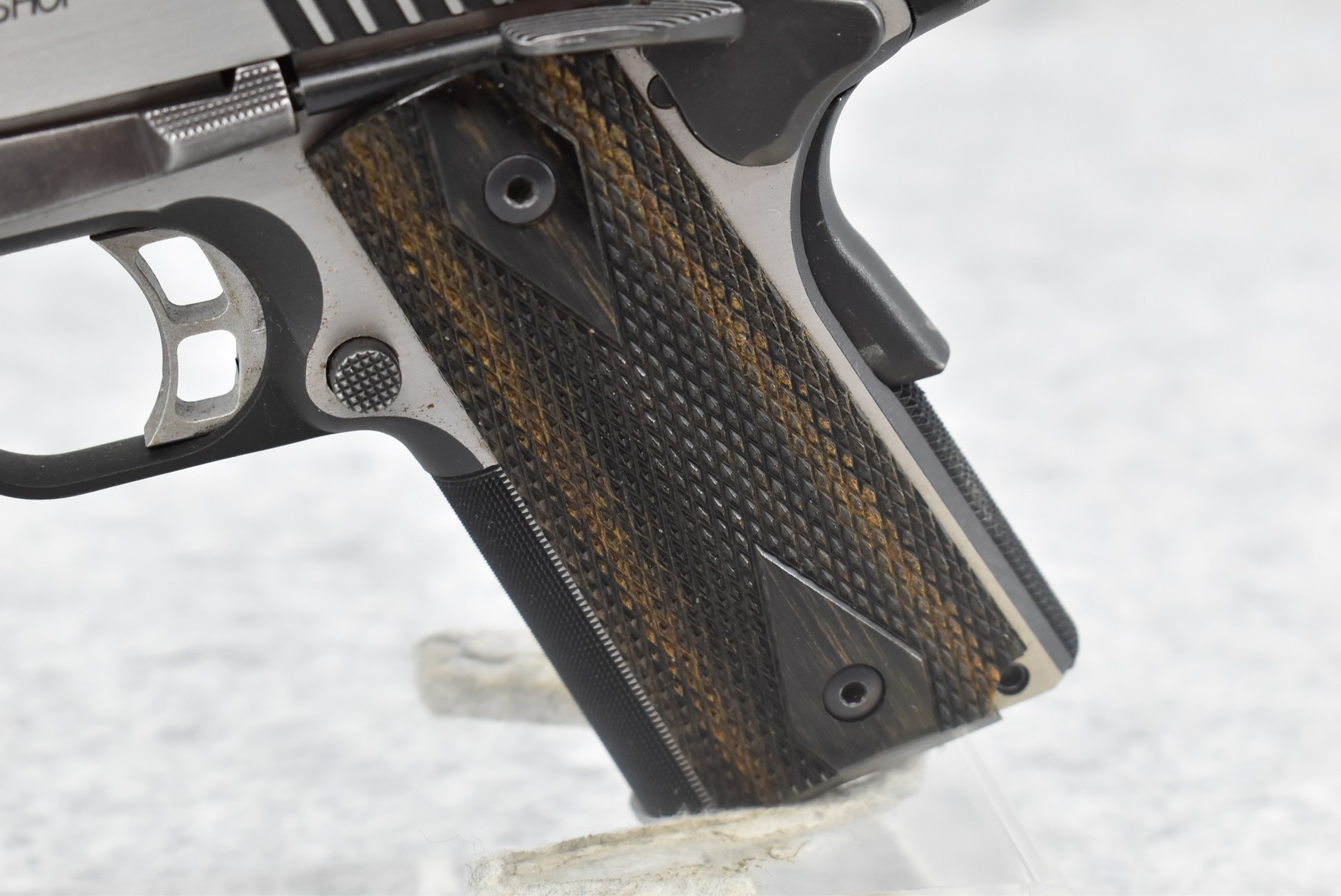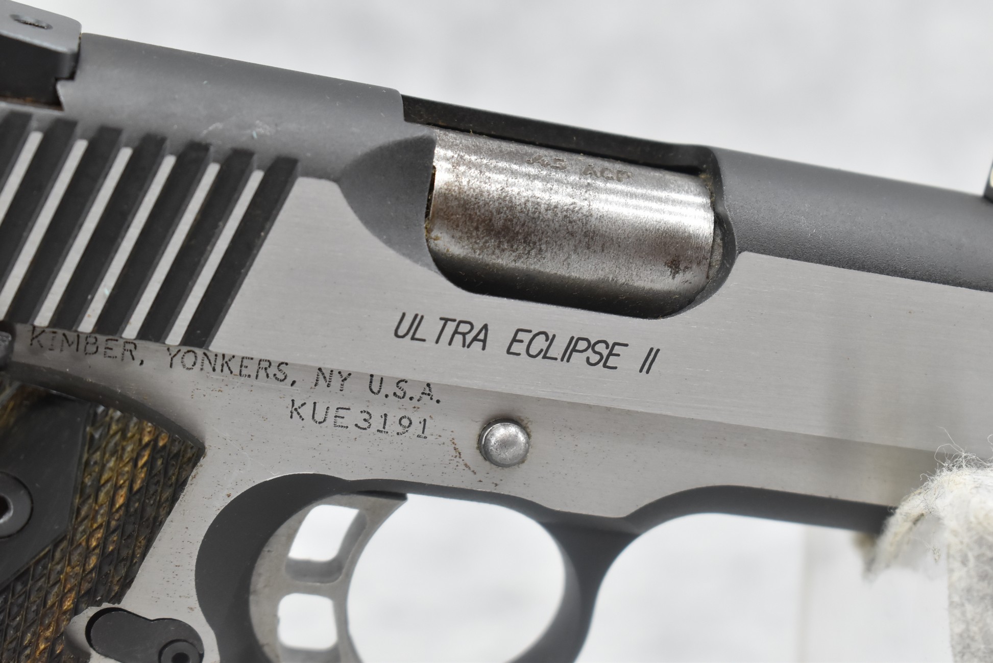 295R. Kimber – Mod. Ultra Eclipse II-Custom Shop – 45 Auto Cal. Semi-Auto Pistol – w/3” Barrel w/3-Dot Night Sights – Stainless/Matte Black Two-Tone Finish – w/Factory Checkered Green Laminated Wood Grips – w/Factory Magazine
