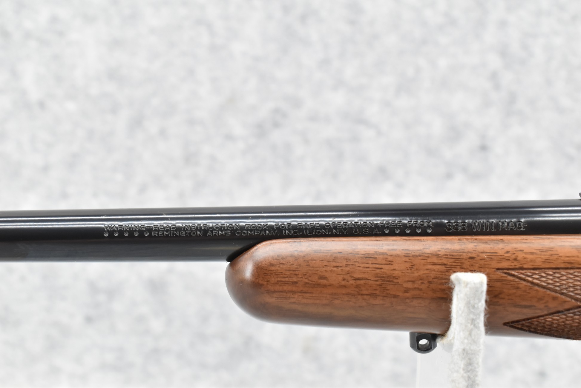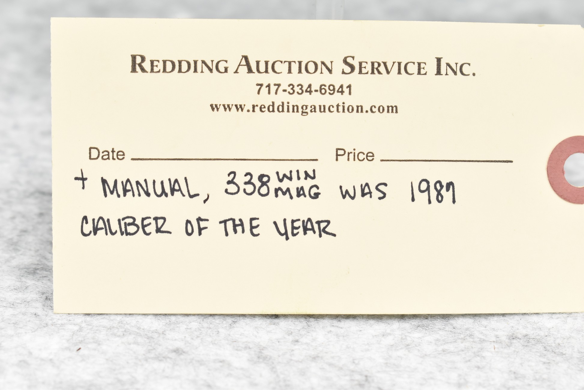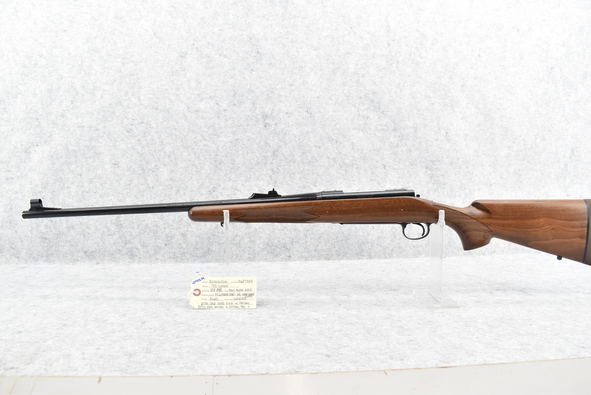 295R. Remington – Mod. 700 Classic – 338 Win. Mag. Cal. Bolt Action Rifle – w/24” Barrel w/Hooded Front & Adj. Rear Ramp Sights – Blued Finish – w/Checkered Pistol Grip Wood Stock w/Factory Recoil Pad – Unfired w/Factory Box & Manual – 338 Win. Mag. Cal. Was 1987 Caliber of the Year