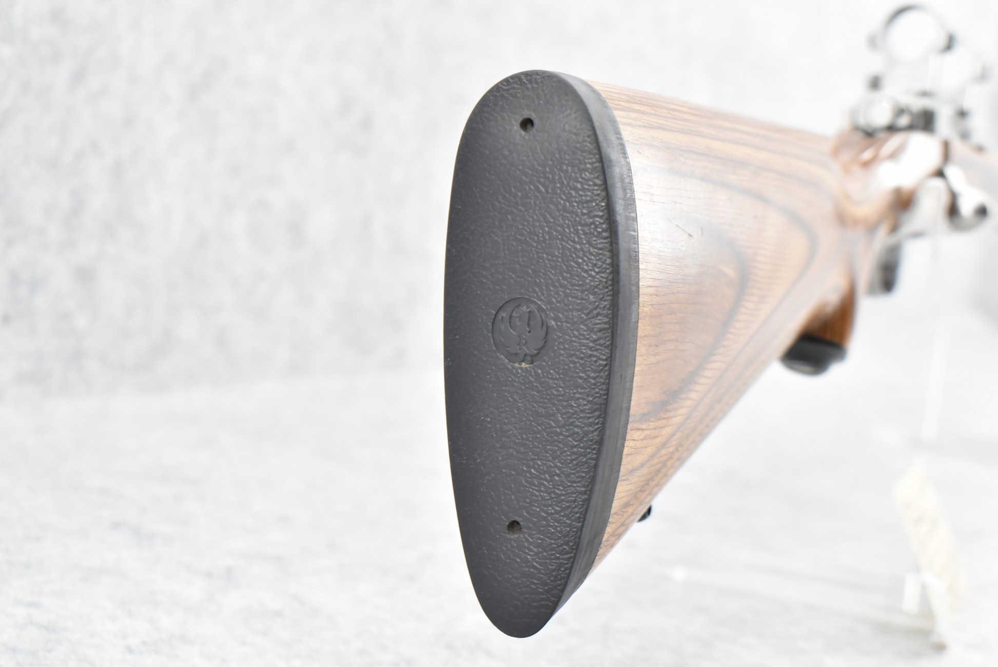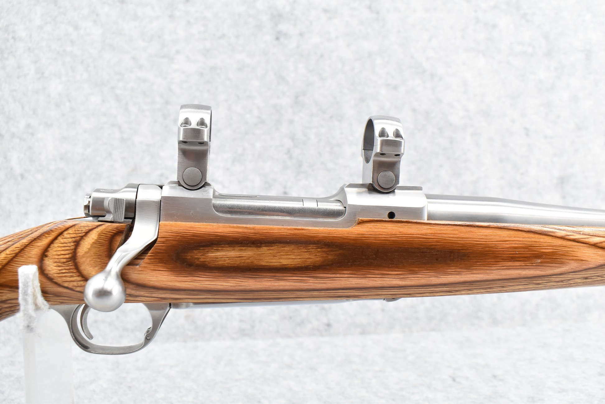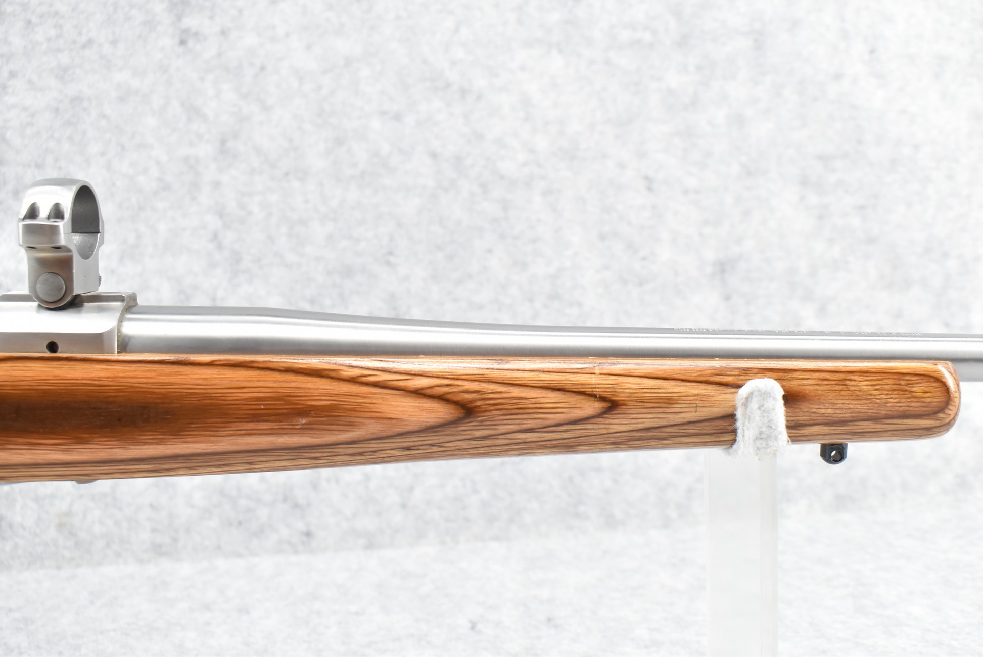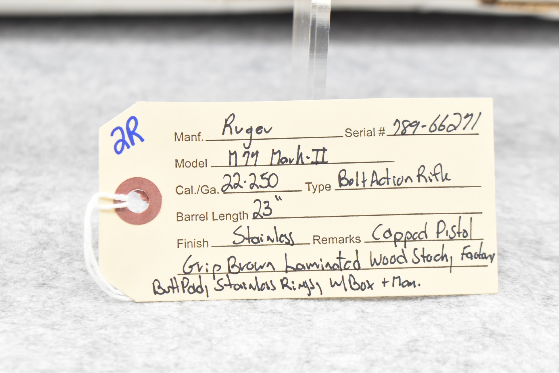 2R. Ruger – Mod. M77 Mark II – 22-250 Cal. Bolt Action Rifle – w/23” Barrel – Stainless Finish – w/Smooth Capped Pistol Grip Brown Laminated Wood Stock w/Factory Butt Pad – w/Stainless Rings – w/Box and Manual