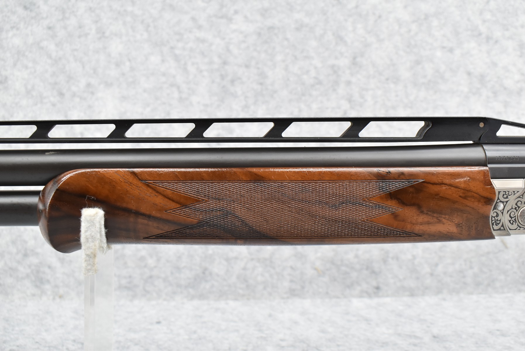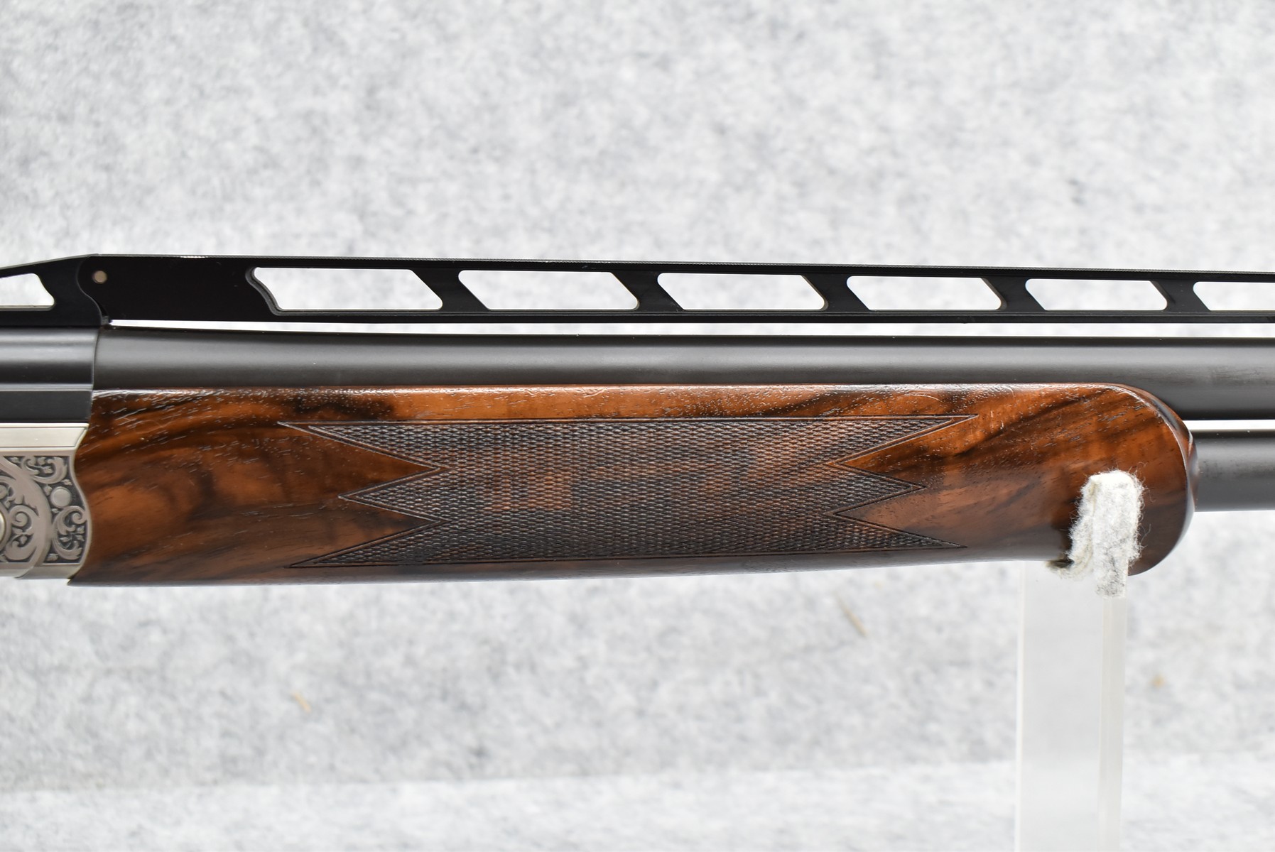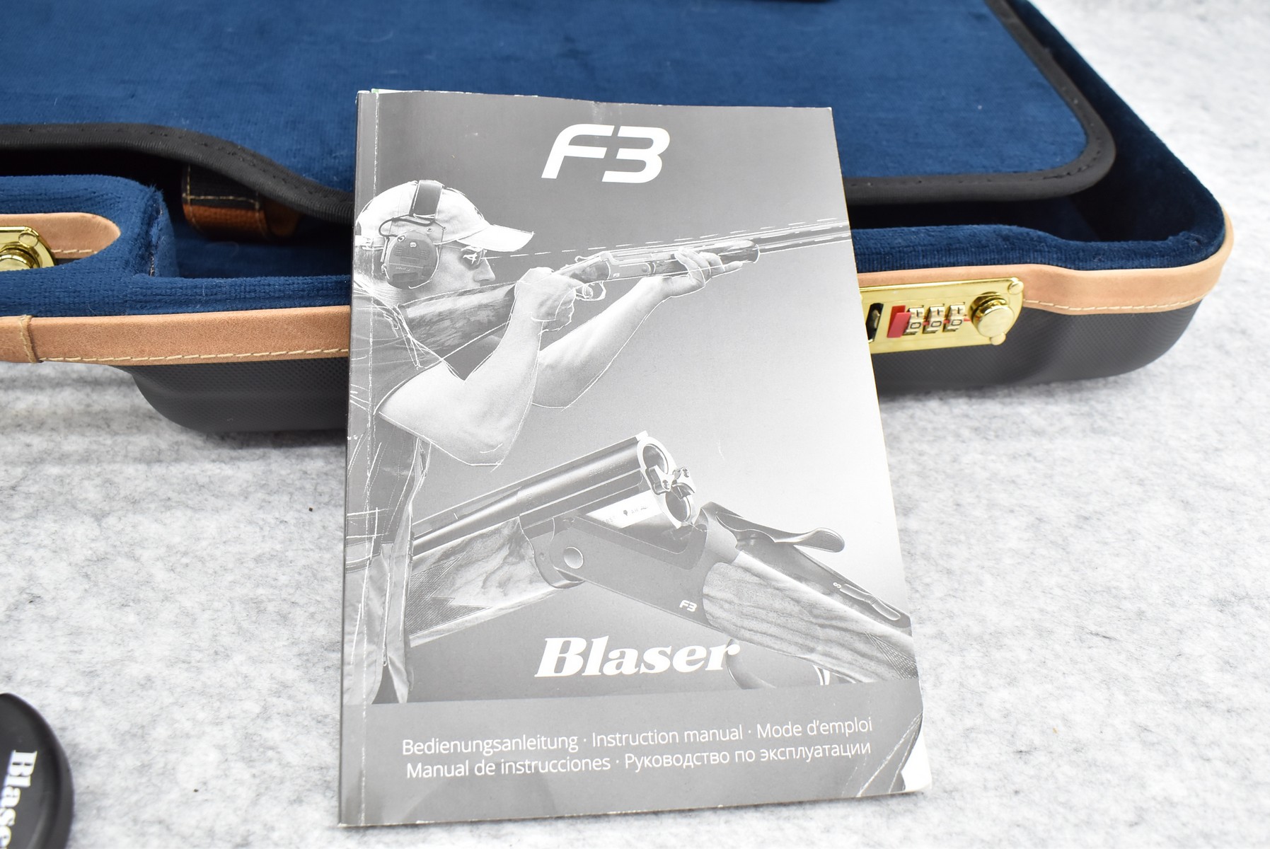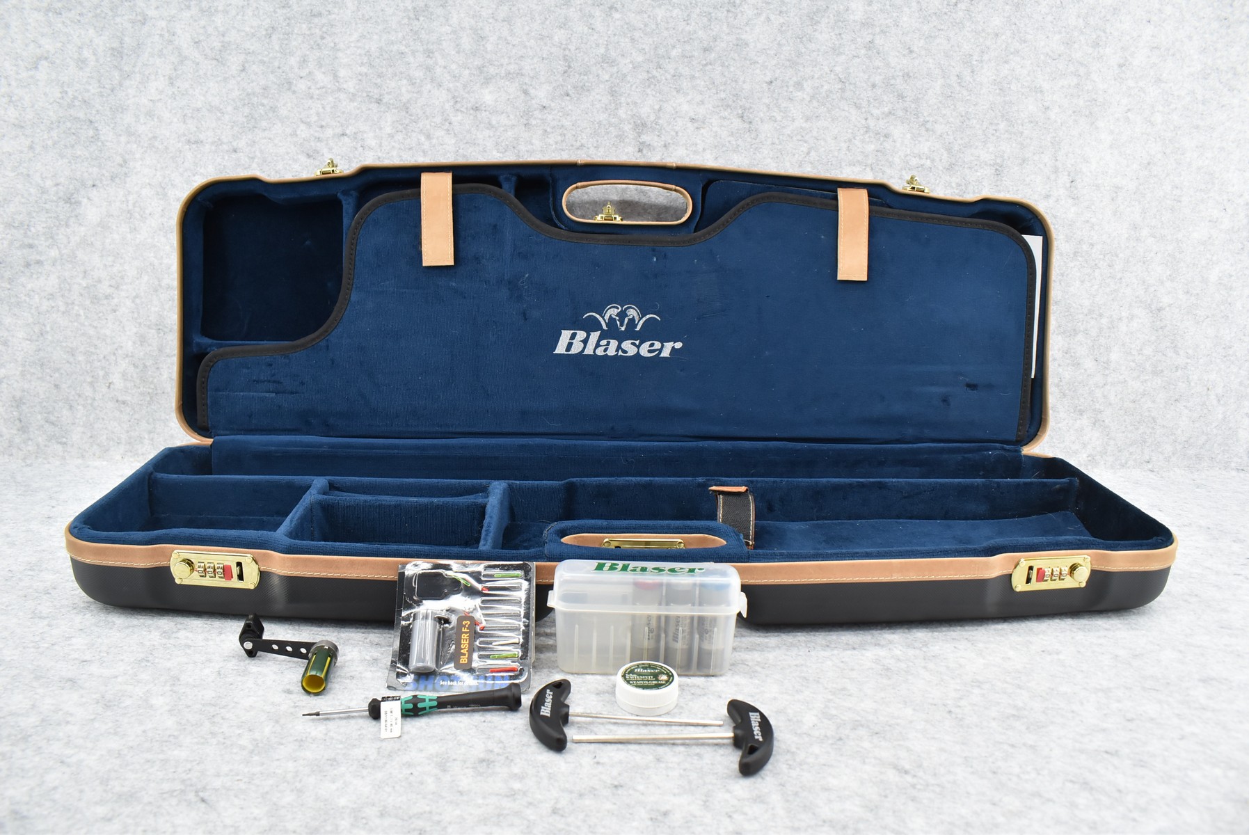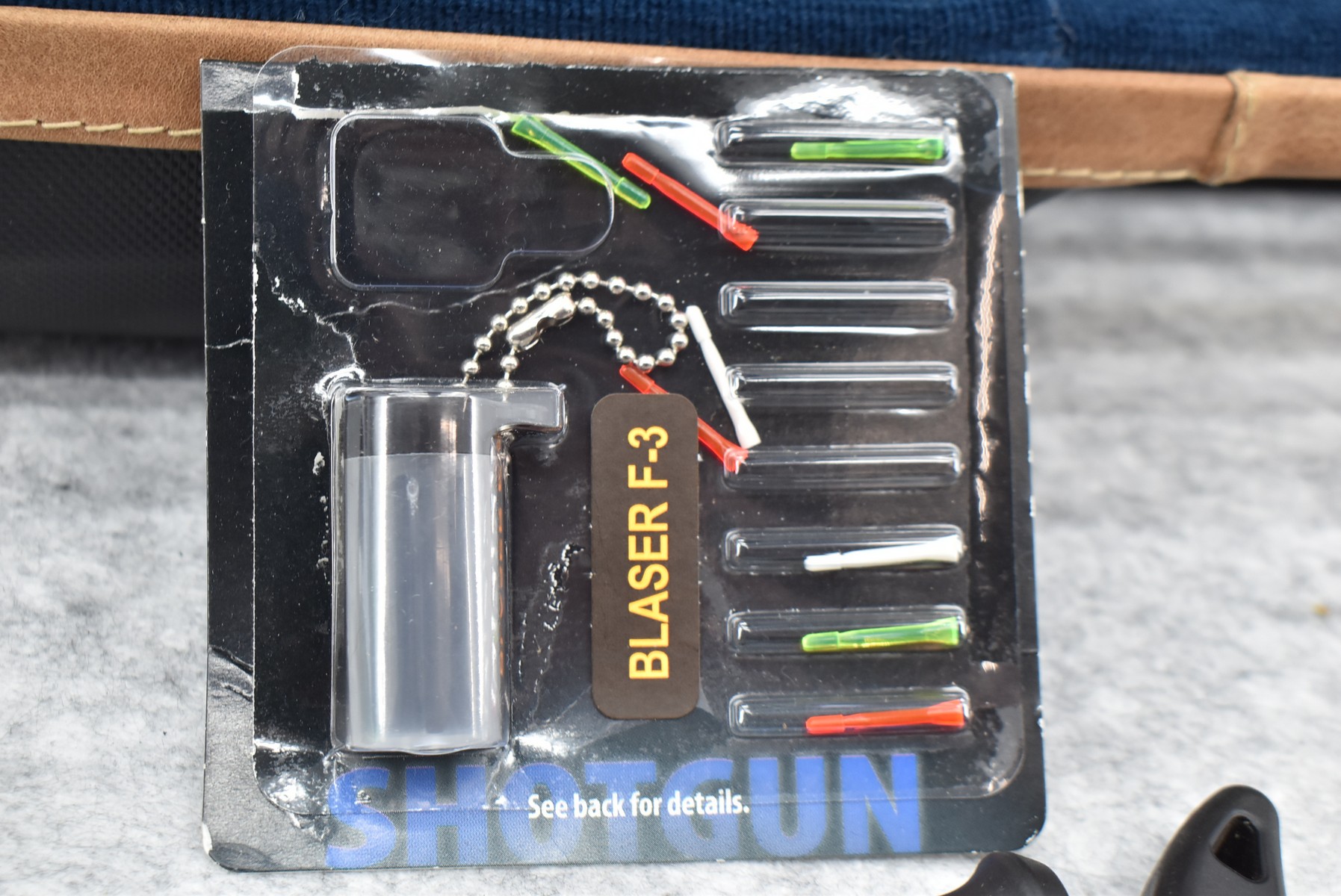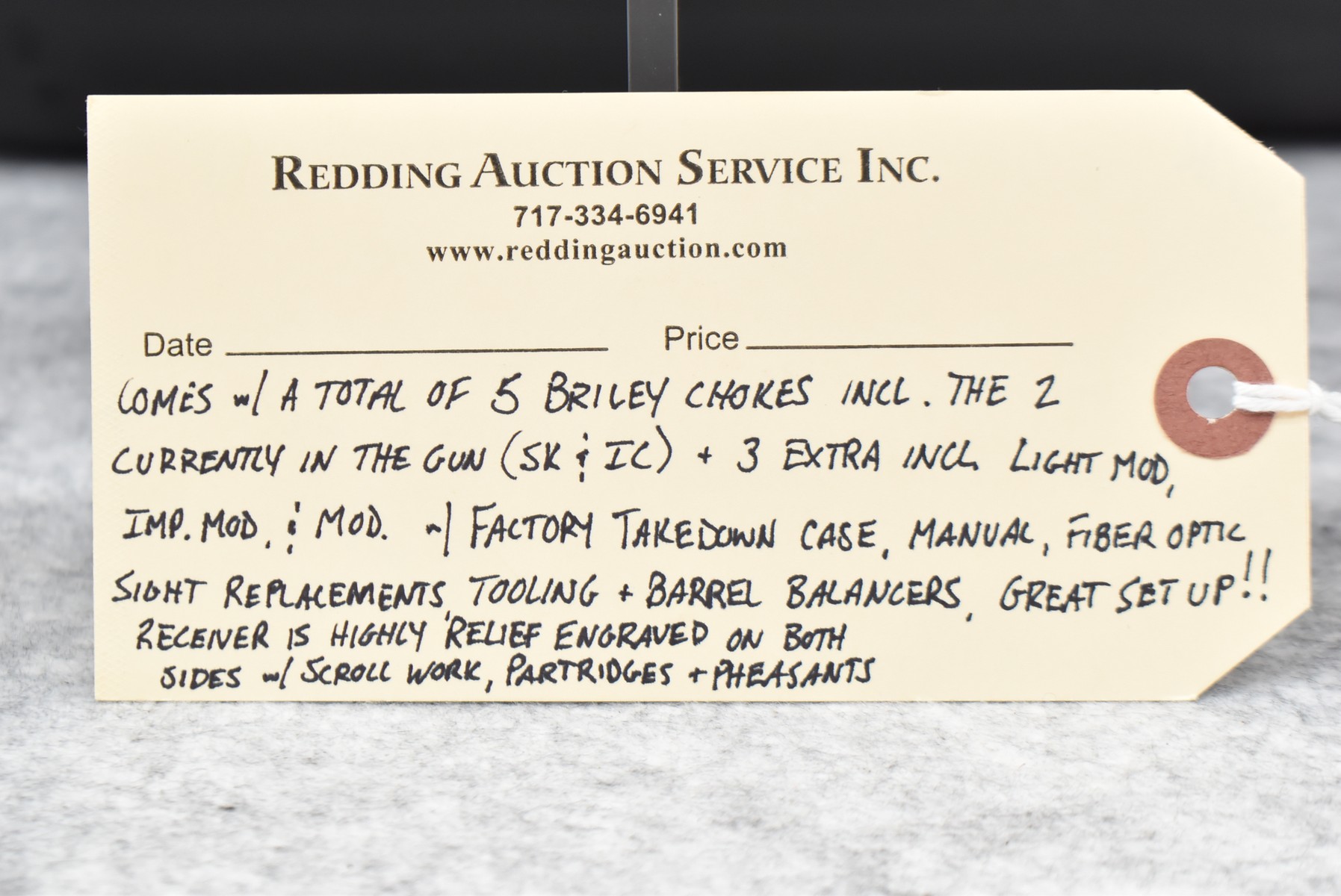 300R. Blaser – Mod. F3 Super Sport Grand Luxe – 12ga 3” Over-Under Shotgun – w/32’ Interchangeable Chokes, Adj. Vent-Rib Barrels w/Fiber Optic Front & Mid Bead Sights – Blued Finish w/Stainless Receiver – Receiver is Highly Relief Engraved on Both Sides w/Scroll Work, Partridges & Pheasants – w/Highly Figured Grade 6 Caucasian Walnut Checkered Pistol Grip Butt Stocks w/Kick-EEZ Recoil Pad w/Adj. Comb – w/Single Selective Trigger – Gun Comes w/A Total of 5 Briley Chokes Including the 2 Currently in the Gun (SK & TC) & 3 Extra Including Light Mod., Imp. Mod. & Mod. – w/Factory Takedown Case, Manual, Fiber Optic Sight Replacements, Tooling & Barrel Balancers – Great Set Up!! A Must See!