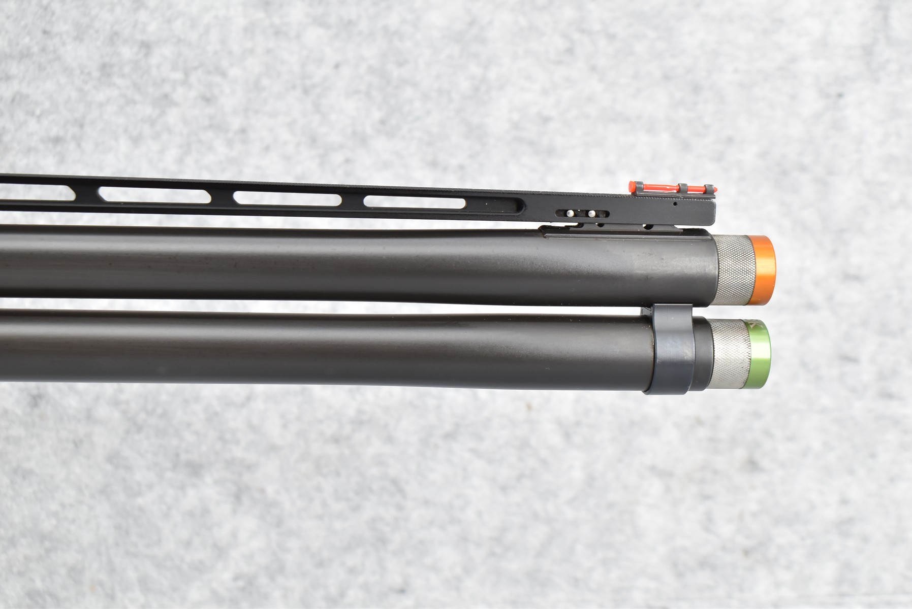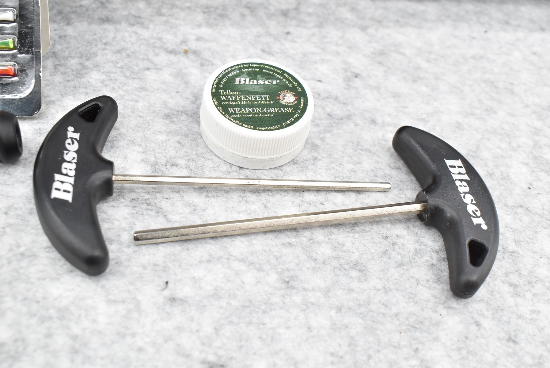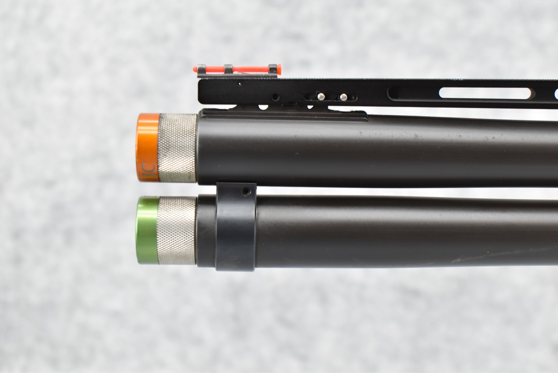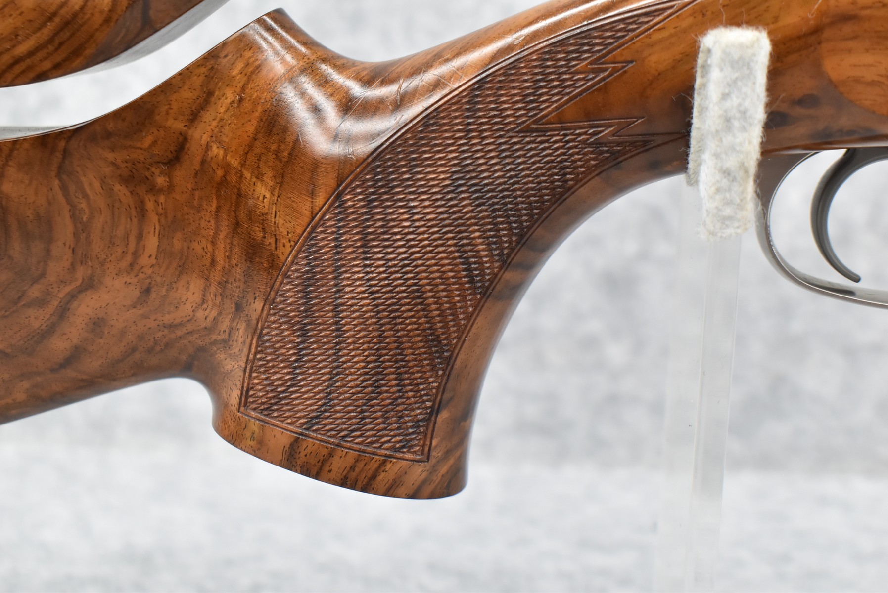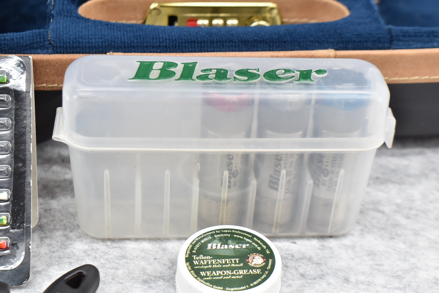 300R. Blaser – Mod. F3 Super Sport Grand Luxe – 12ga 3” Over-Under Shotgun – w/32’ Interchangeable Chokes, Adj. Vent-Rib Barrels w/Fiber Optic Front & Mid Bead Sights – Blued Finish w/Stainless Receiver – Receiver is Highly Relief Engraved on Both Sides w/Scroll Work, Partridges & Pheasants – w/Highly Figured Grade 6 Caucasian Walnut Checkered Pistol Grip Butt Stocks w/Kick-EEZ Recoil Pad w/Adj. Comb – w/Single Selective Trigger – Gun Comes w/A Total of 5 Briley Chokes Including the 2 Currently in the Gun (SK & TC) & 3 Extra Including Light Mod., Imp. Mod. & Mod. – w/Factory Takedown Case, Manual, Fiber Optic Sight Replacements, Tooling & Barrel Balancers – Great Set Up!! A Must See!
