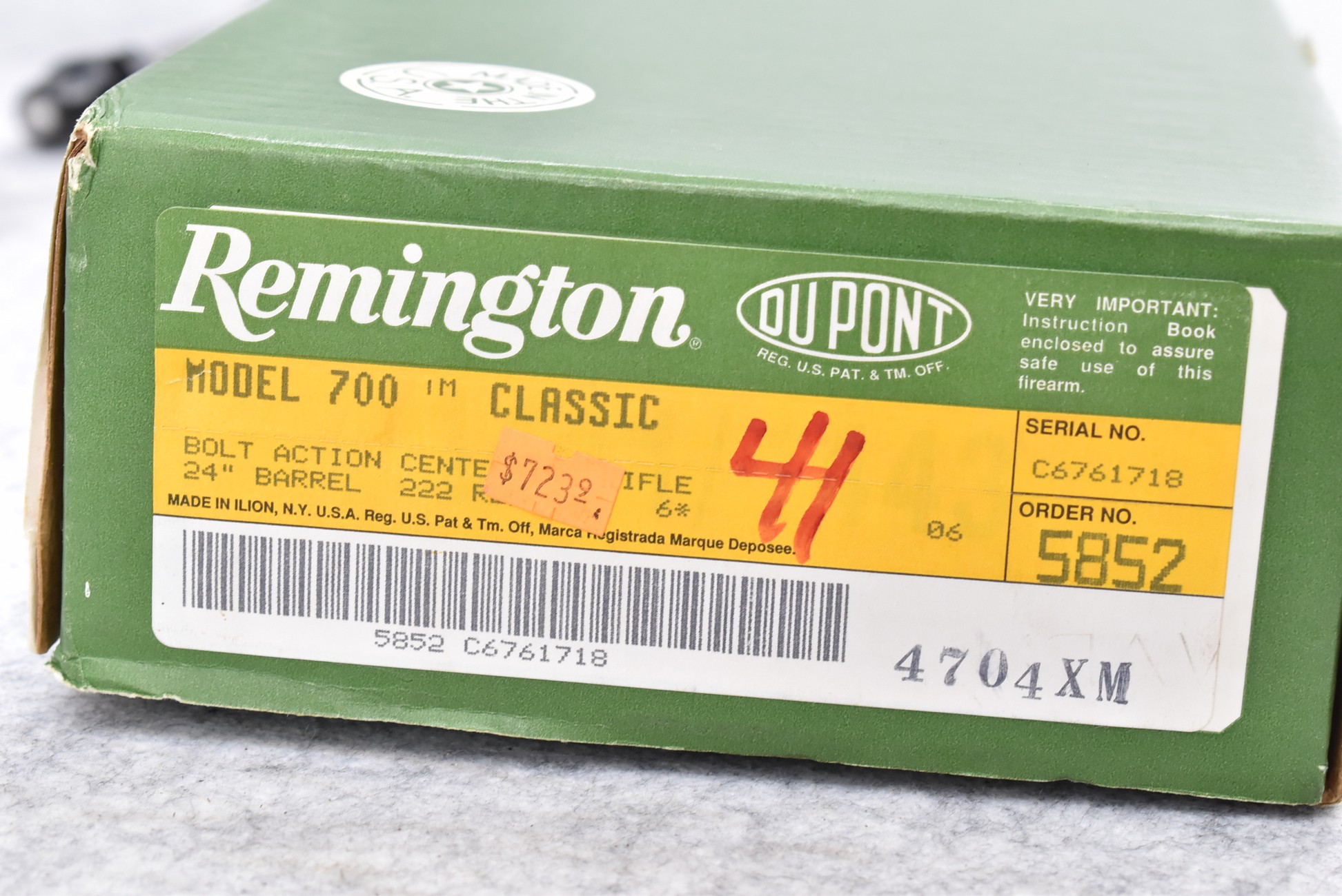 301R. Remington – Mod. 700 Classic – 222 Rem. Cal. Bolt Action Rifle – w/24” Barrel – Blued Finish – w/Checkered Pistol Grip Wood Stock w/Factory Recoil Pad – Unfired w/Factory Box & Manual – 222 Rem. Cal. Was 1993 Caliber of the Year