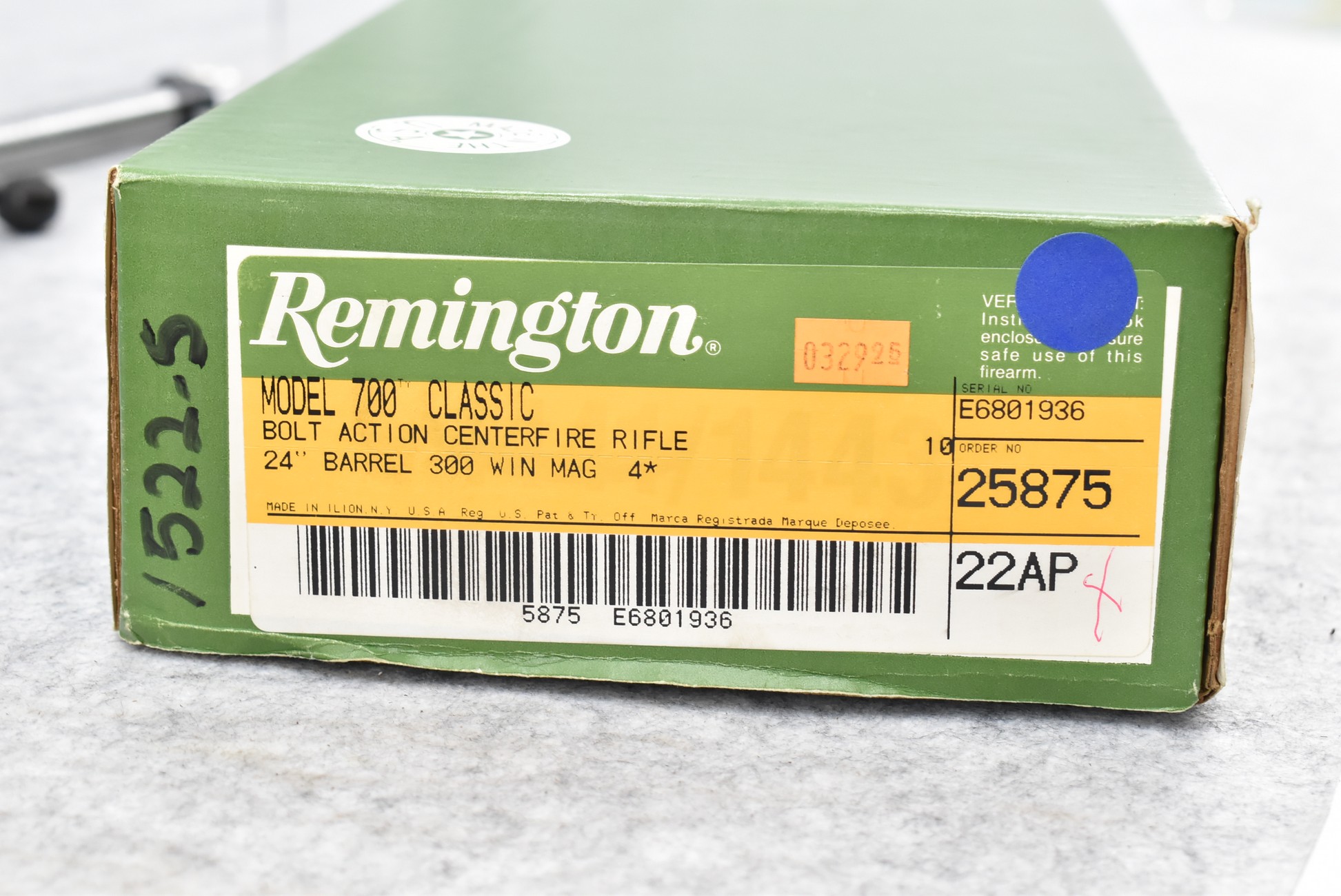 303R. Remington – Mod. 700 Classic – 300 Win. Mag. Cal. Bolt Action Rifle – w/24” Barrel – Blued Finish – w/Checkered Pistol Grip Wood Stock w/Factory Recoil Pad – Unfired w/Factory Box – 300 Win. Mag. Cal. Was 1995 Caliber of the Year