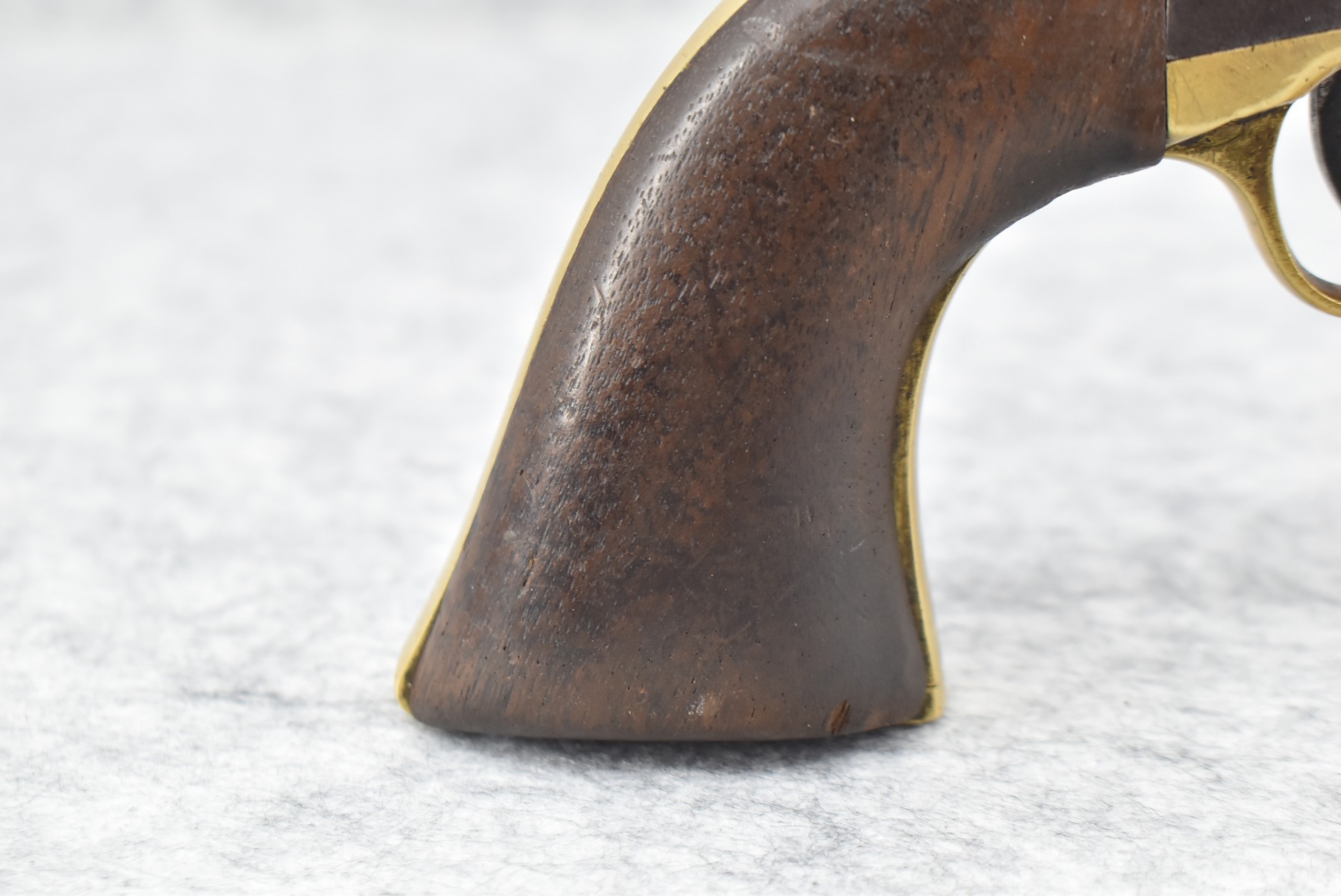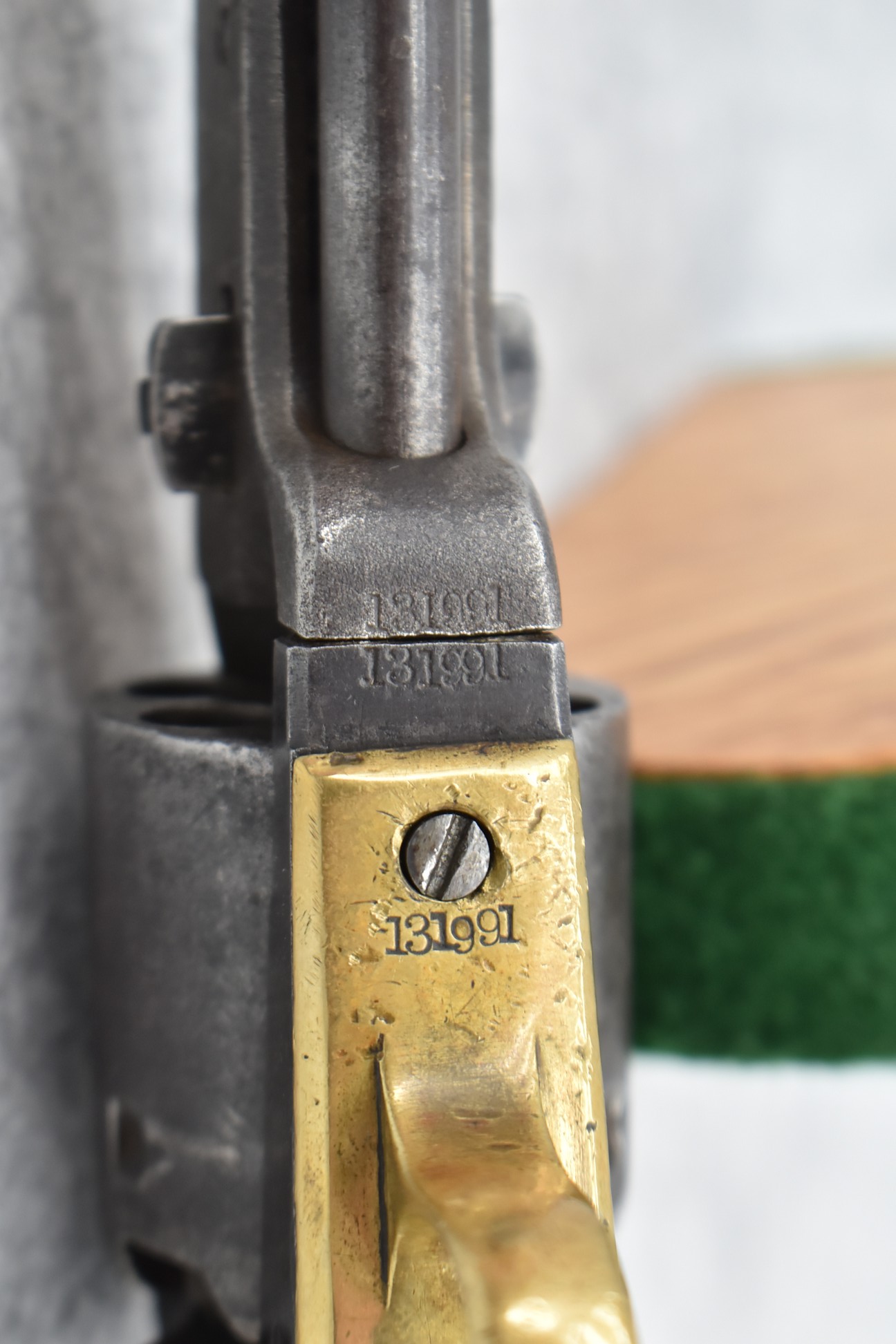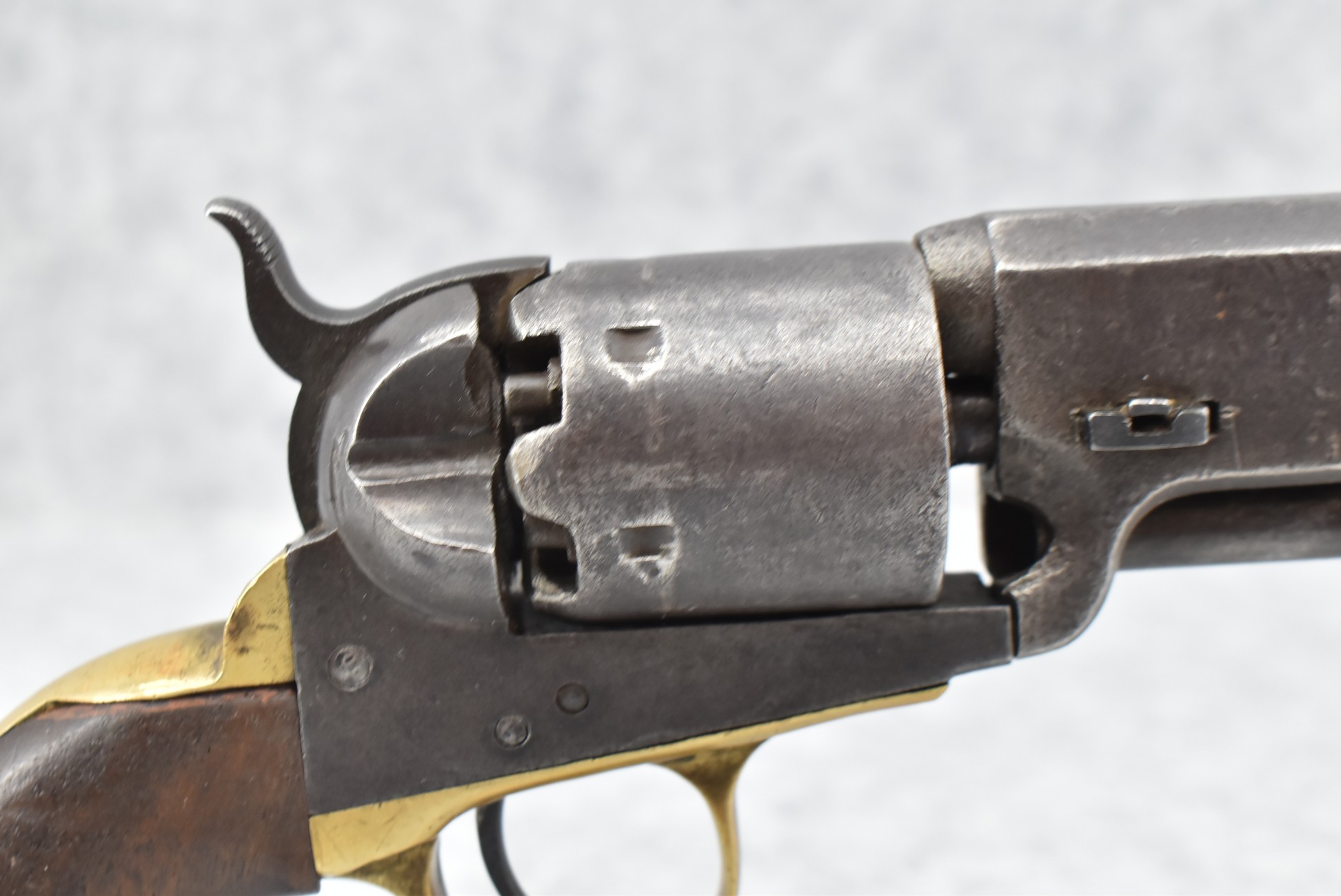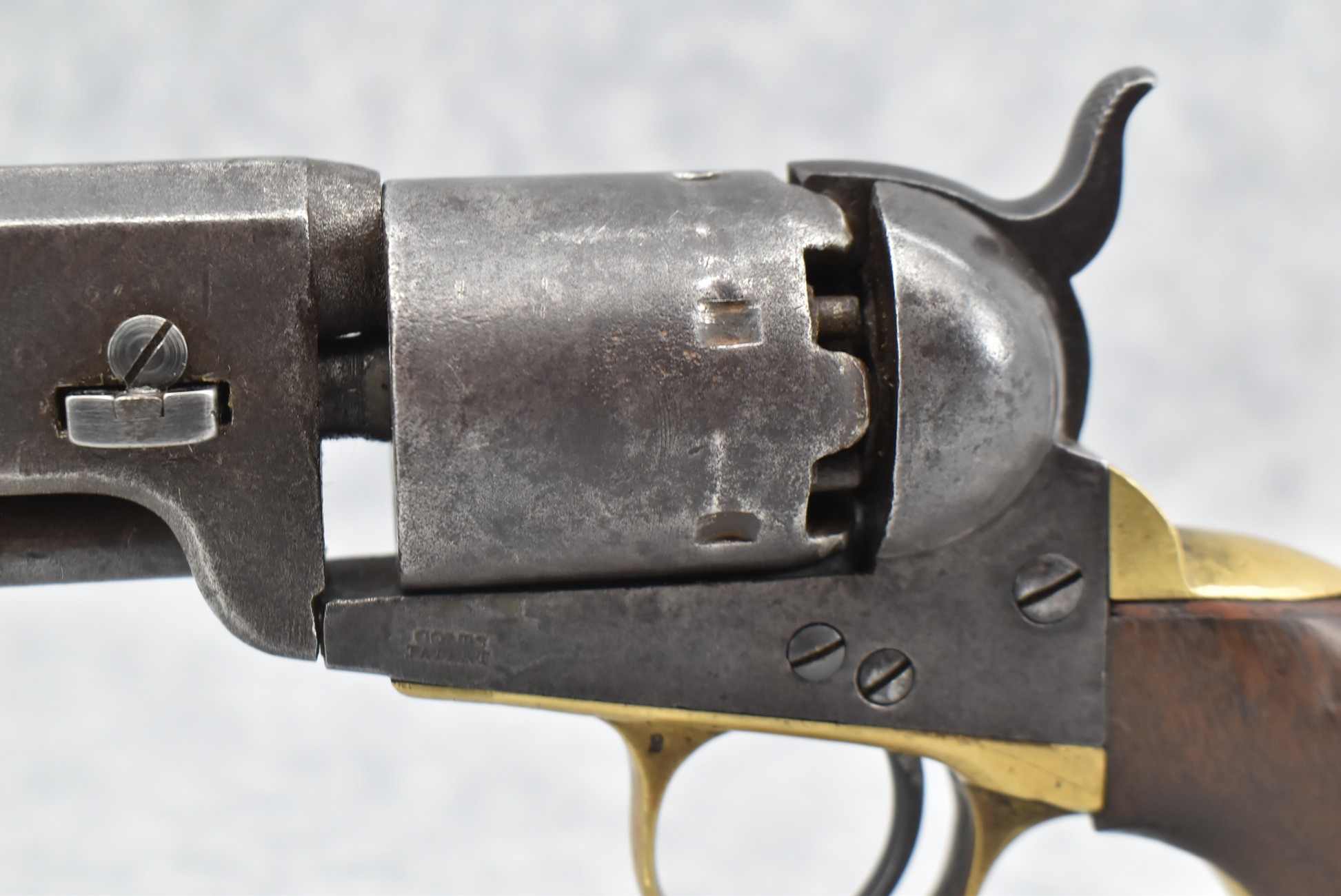 304. Colt – Mod. 1851 Navy – 36 Cal. Percussion Single Action Revolver – w/7 ½” Octagon Barrel w/Bead Front & Hammer Notch Rear Sights – Gray Finish – w/Factory Wood Grips – w/Strong New York Barrel Address – Gun is All Matching Numbers Including the Cylinder – Mfg. 1863