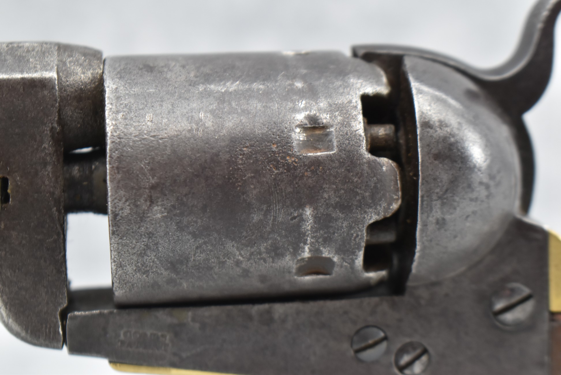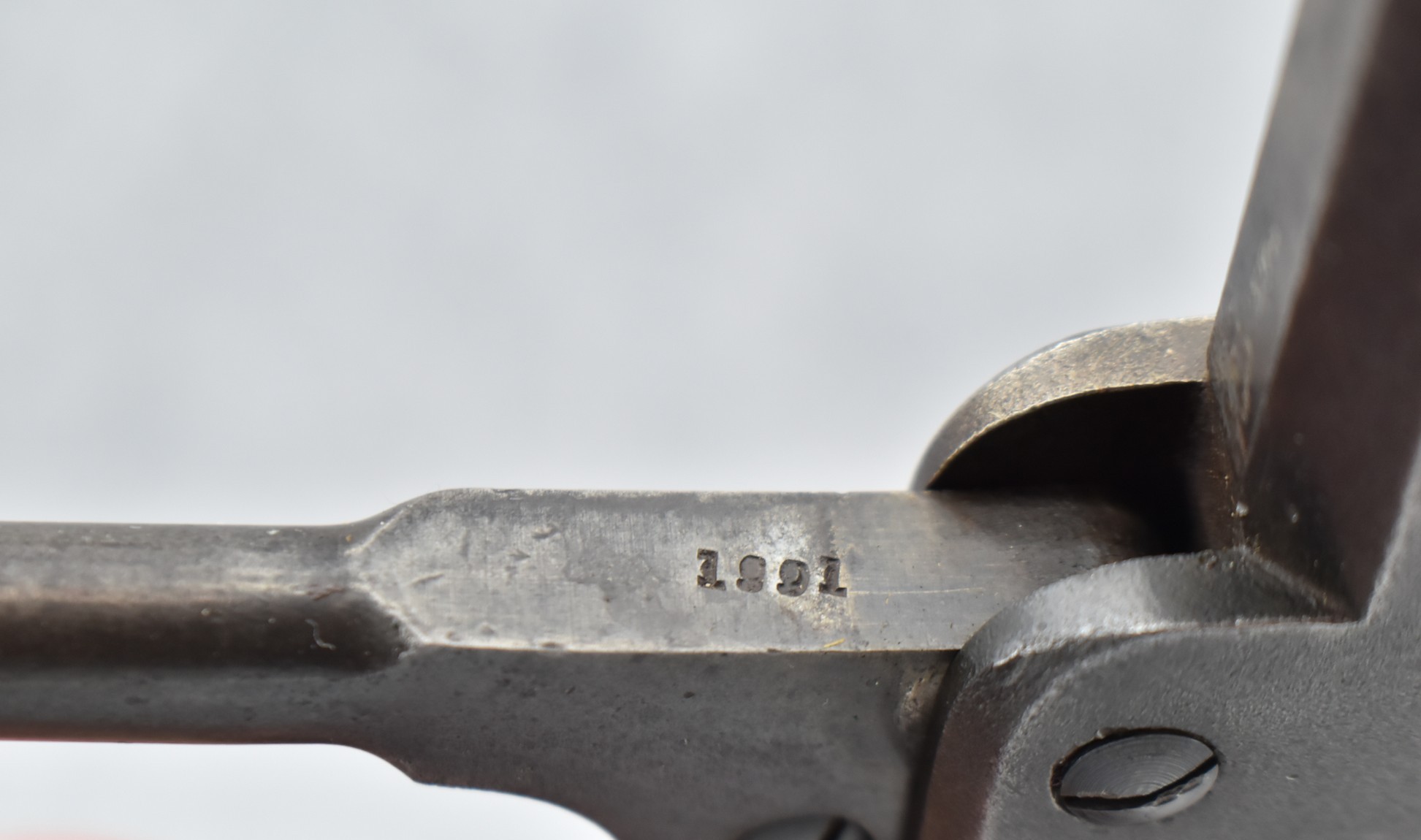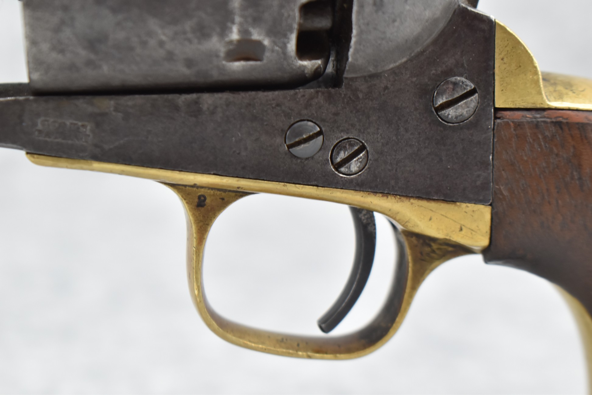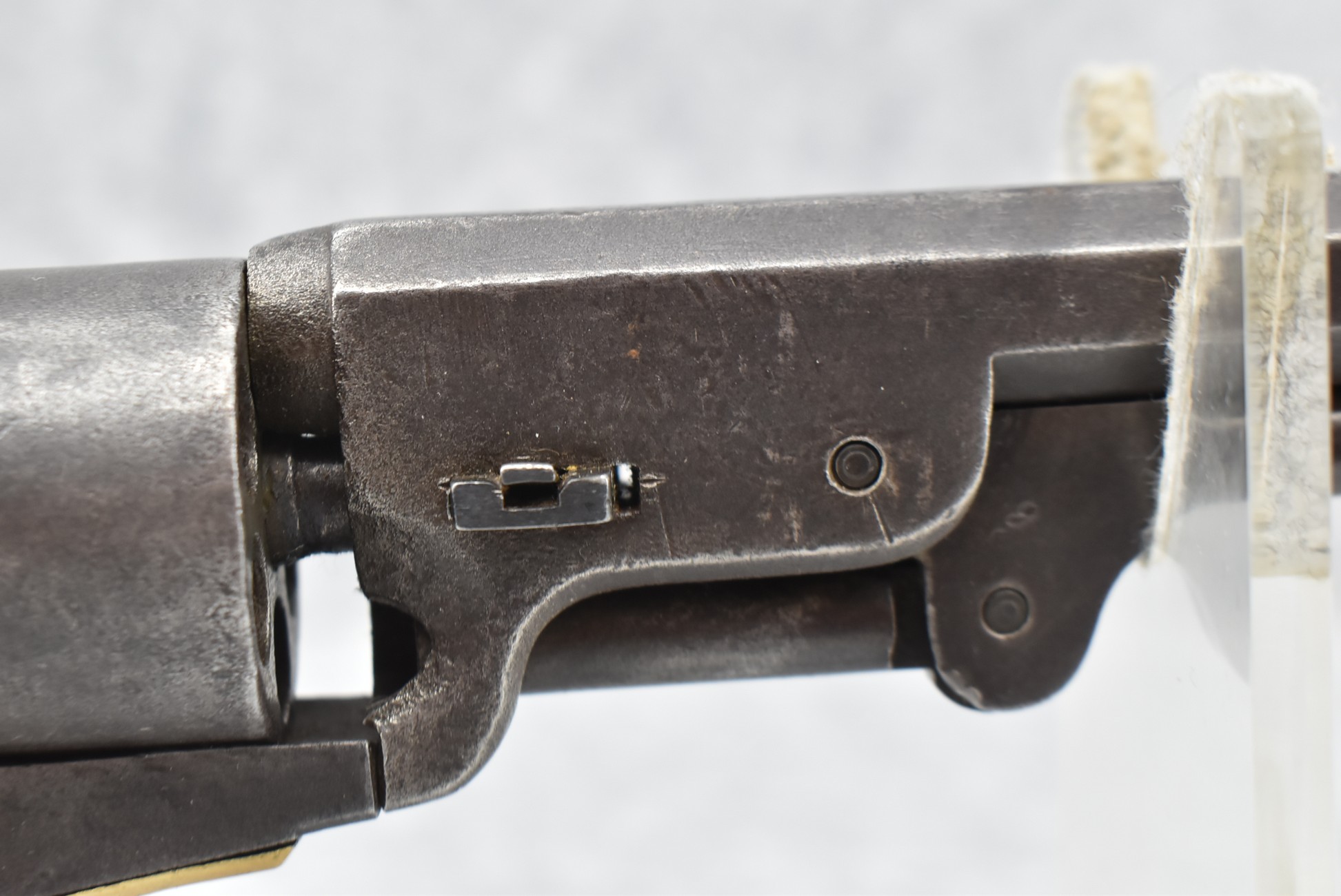 304. Colt – Mod. 1851 Navy – 36 Cal. Percussion Single Action Revolver – w/7 ½” Octagon Barrel w/Bead Front & Hammer Notch Rear Sights – Gray Finish – w/Factory Wood Grips – w/Strong New York Barrel Address – Gun is All Matching Numbers Including the Cylinder – Mfg. 1863