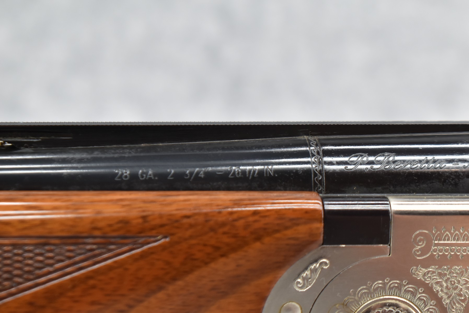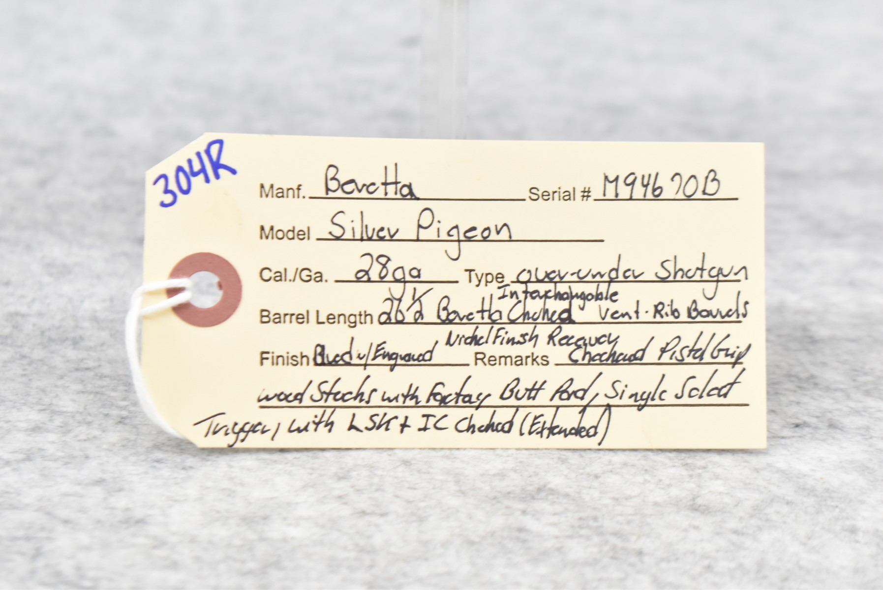 304R. Beretta – Mod. Silver Pigeon – 28ga. Over-Under Shotgun – w/26 ½” Beretta Interchangeable Choked, Vent-Rib Barrels – Blued Finish – w/Engraved Nickel Finish Receiver – w/Checkered Pistol Grip Wood Stocks w/Factory Butt Pad – w/Single Select Trigger – w/LSK & IC Chokes (Extended)