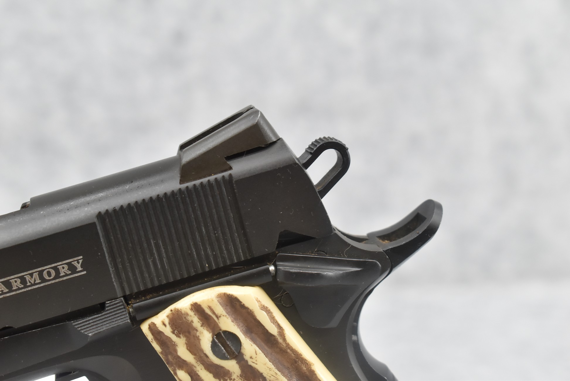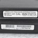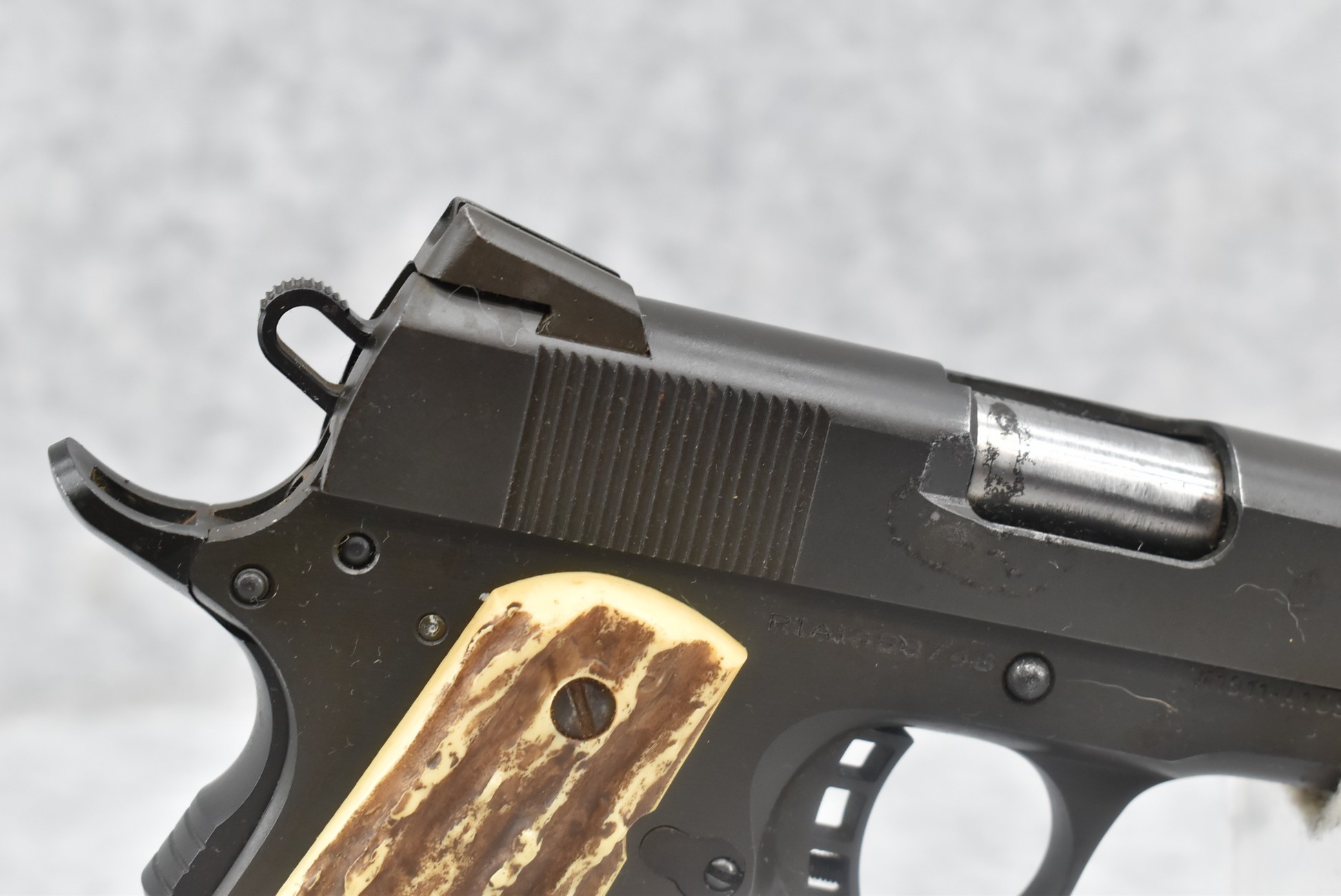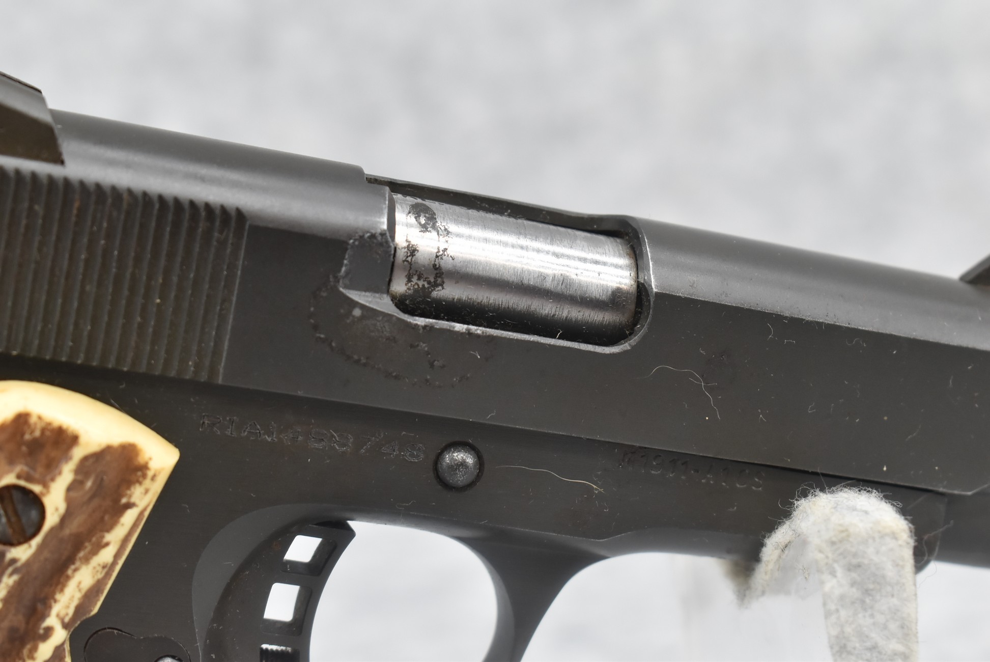 304R. Rock Island – Mod. M1911-A1CS – 9mm Cal. Semi-Auto Pistol – w/3.5” Barrel w/Iron Sights – Matte Blued Finish – w/Stag-Like Plastic Grips – w/Factory Hard Case & 2 Mags