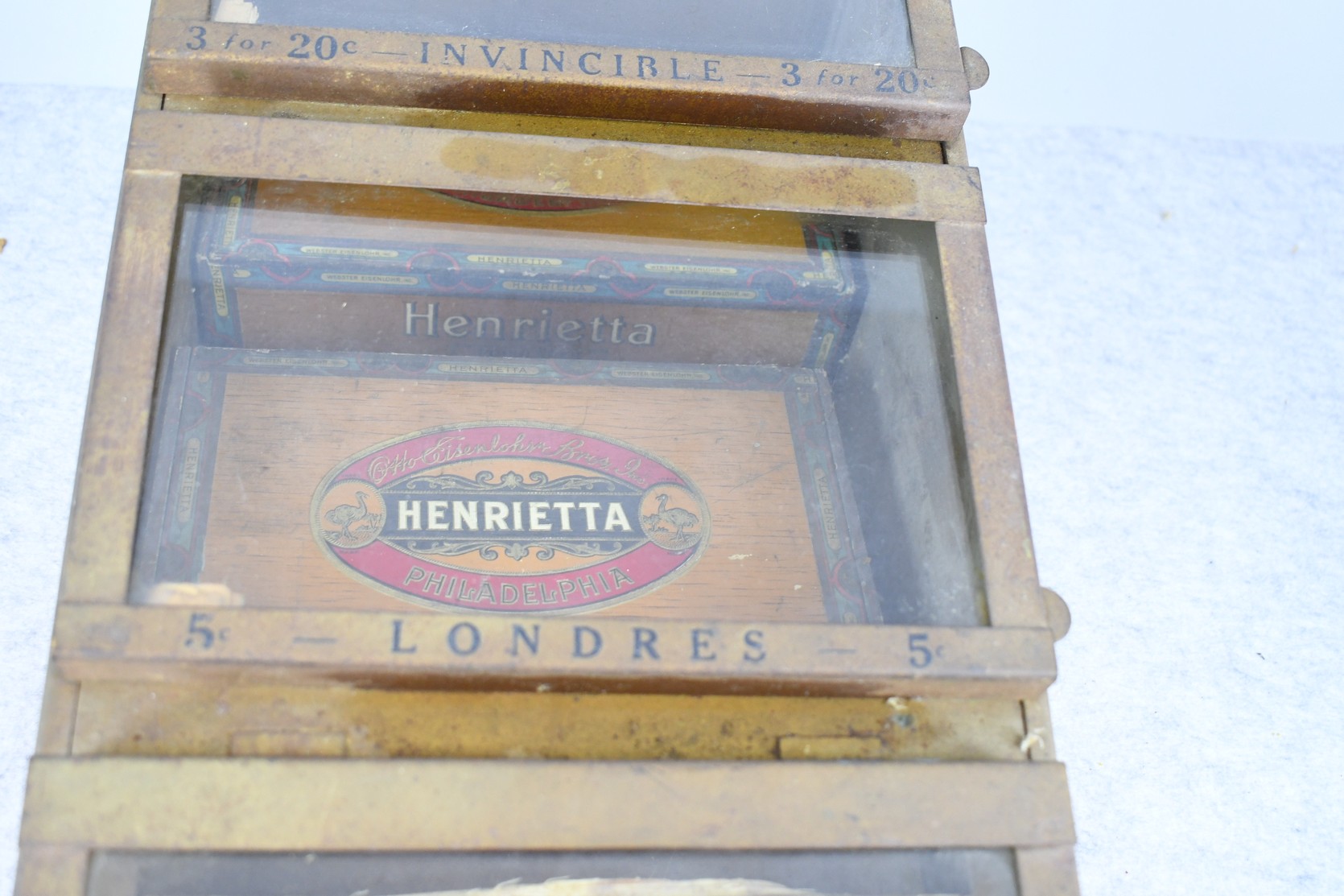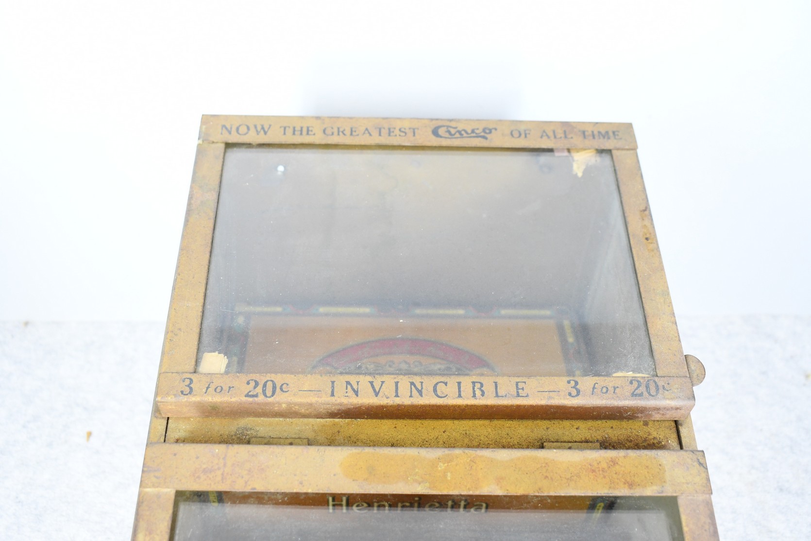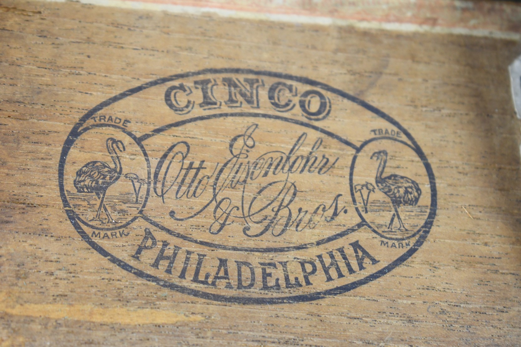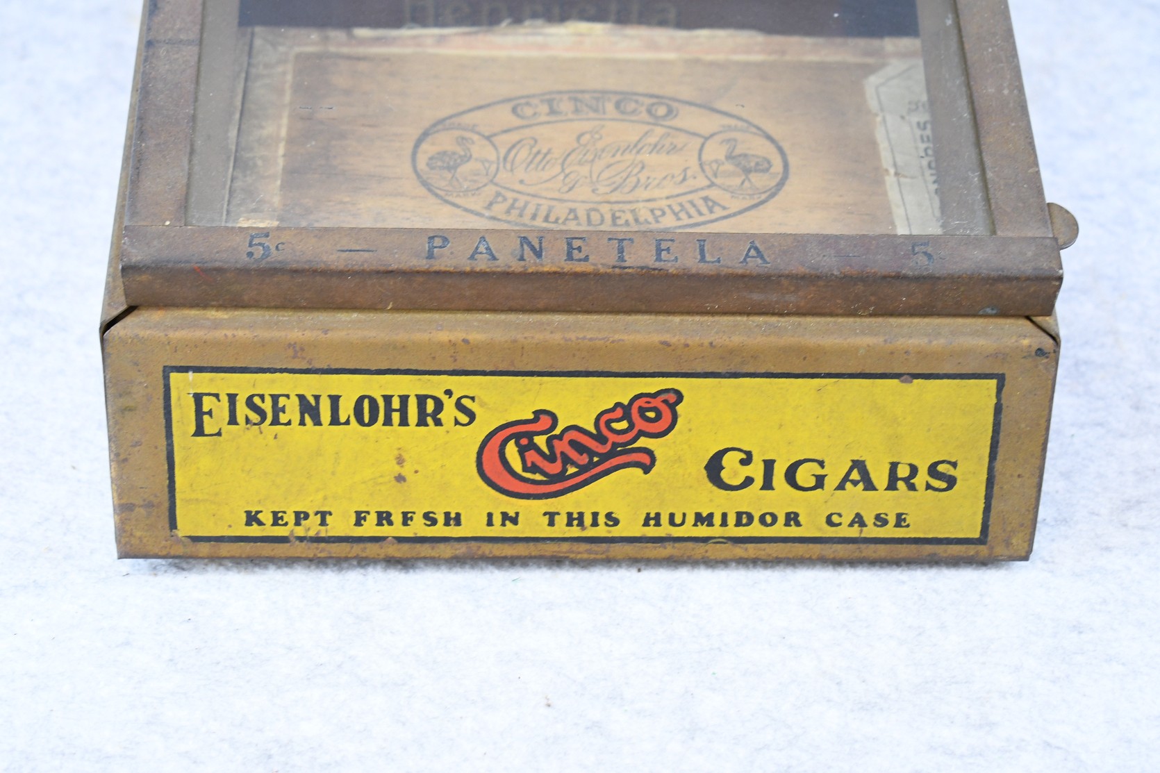 306. Original Eisenlohr’s Cinco Cigars Store Advertising Display Humidor Case – Display Shows Three Different Cigar Types – Item has 3 Great Color Logo’s – Unique item.