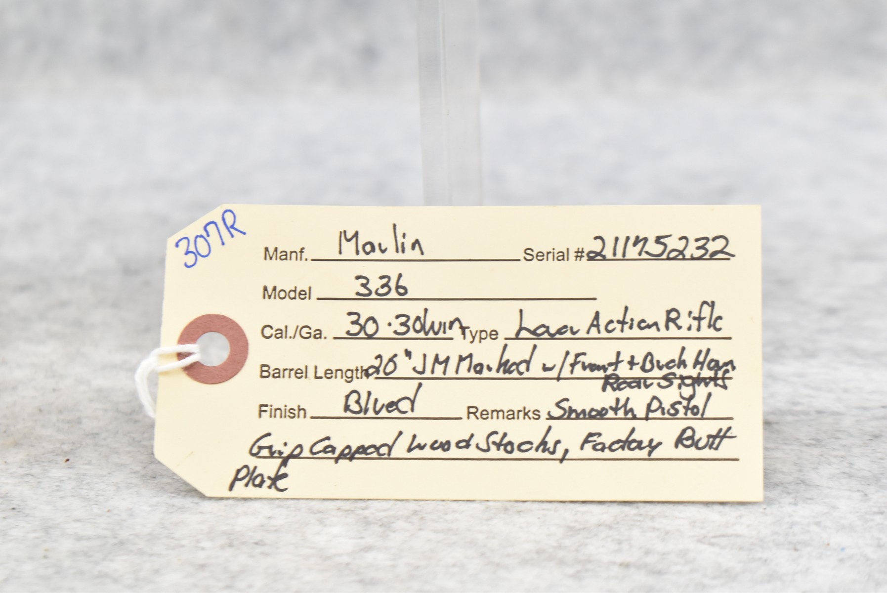 307R. Marlin – Mod. 336 – 30-30 Win. Cal. Lever Action Rifle – w/20” JM Marked Barrel w/Front & Buckhorn Rear Sights – Blued Finish – w/Pistol Capped Grip Wood Stocks w/Factory Butt Plate