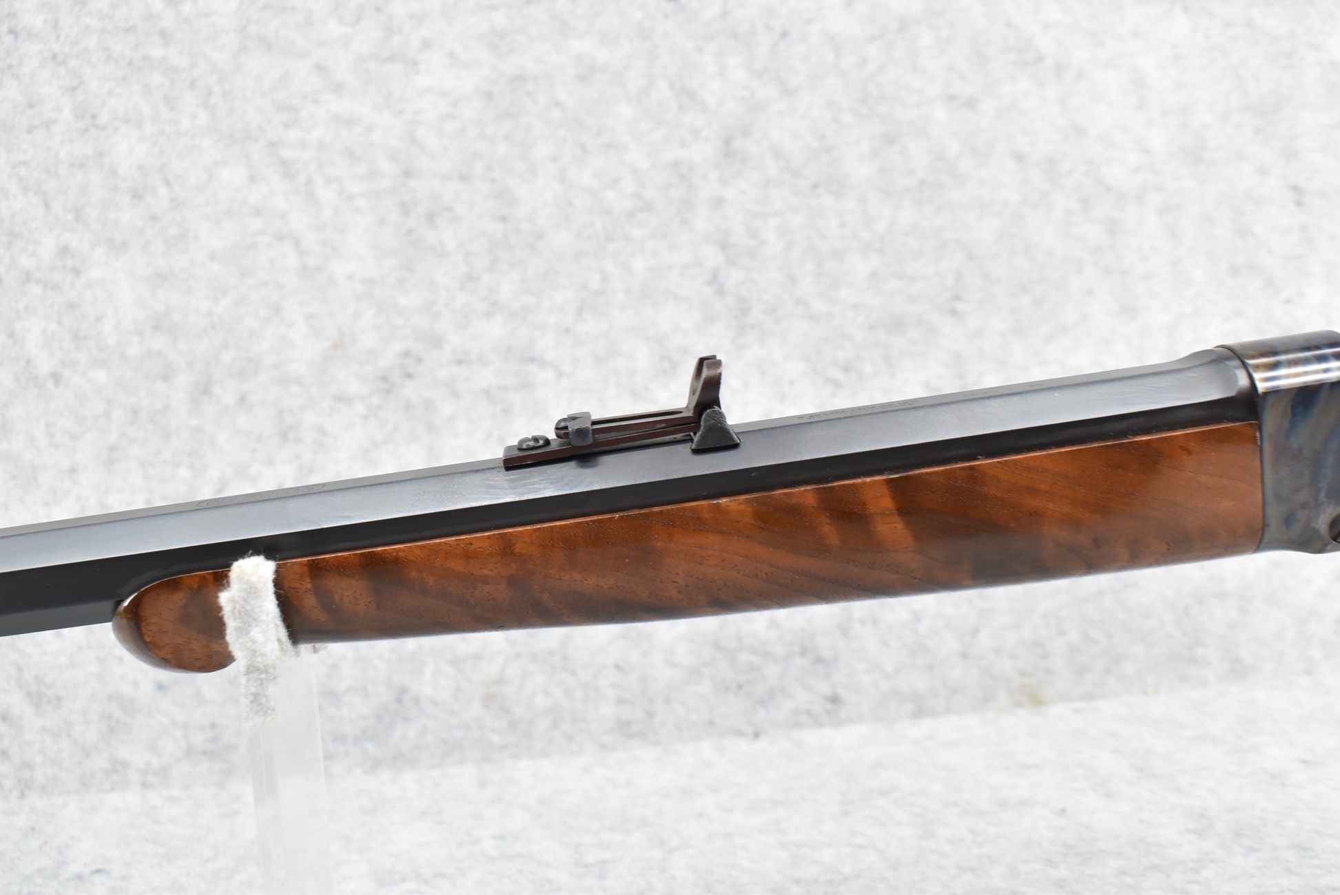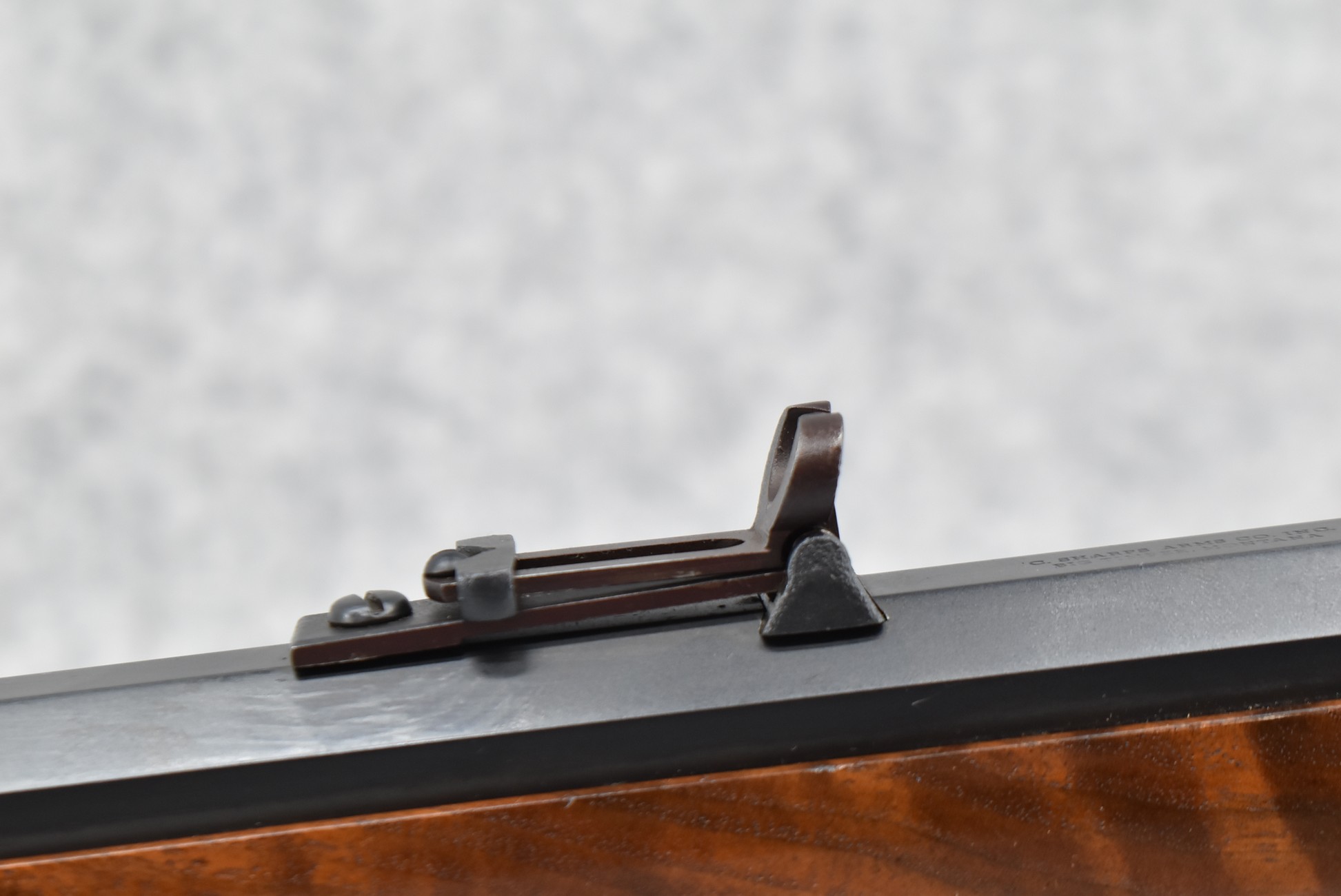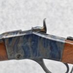 30R. C. Sharps Arms (Big Timber, Montana) – Mod. Old Reliable-1874 Sharps – 50 Cal. (2 ½) Falling Block Rifle – w/34” Octagon Barrel w/Hooded Pin Front & Sporting Buckhorn Rear Sights w/Lee Shaver Long Range Adj. Rear Veneer Tang Peep Sight – Blued Finish w/Case Hardened Frame – w/Highly Figured Straight Grip Wood Stocks w/Factory Checkered Metal Butt Plate
