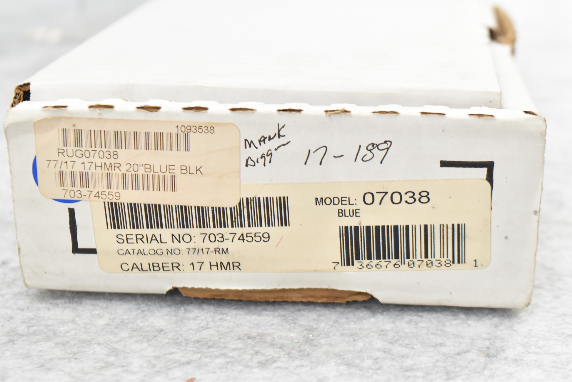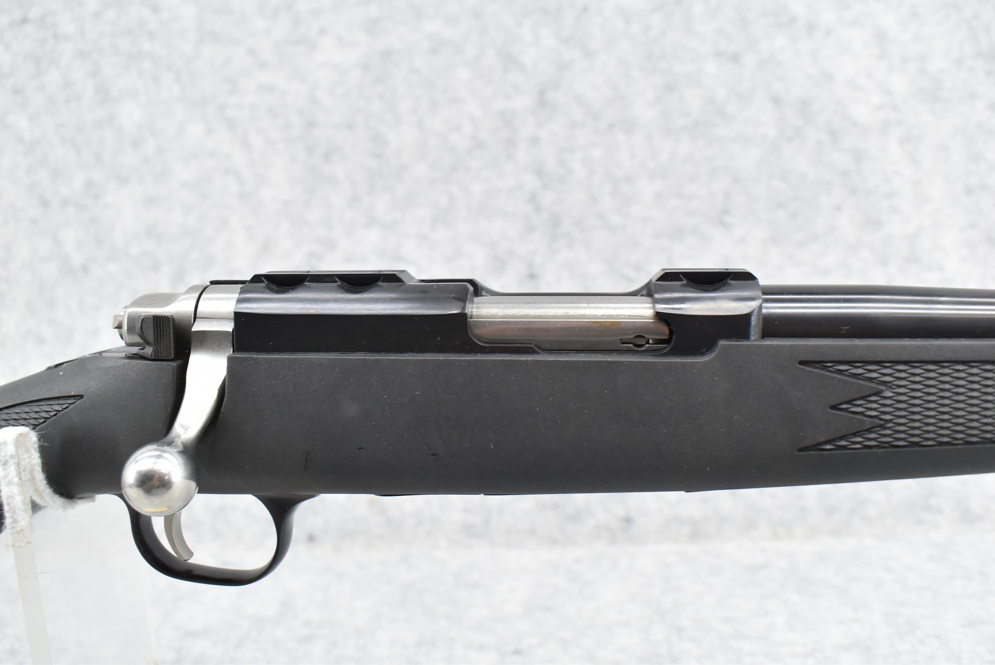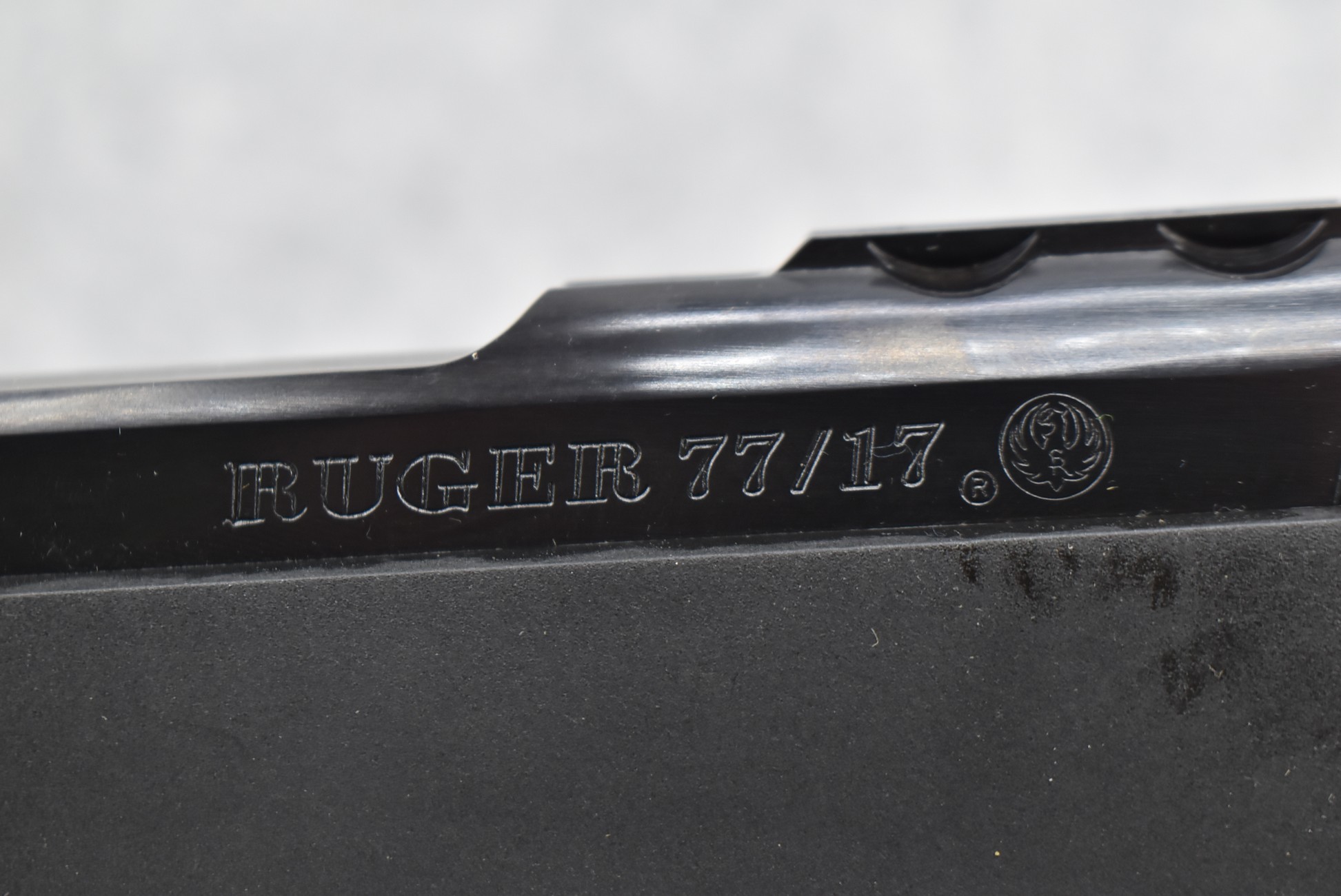 30R. Ruger – Mod. 77/17RM – 17 HMR Cal. Bolt Action Rifle – w/22” Barrel w/No Sights – Blued Finish – w/Checkered Capped Pistol Grip Black Synthetic Pistol Grip Stock w/Black Rubber Butt Pad – w/Factory Rings – New in Factory Box w/1 Factory Detachable Magazine, Manual, and Accessories