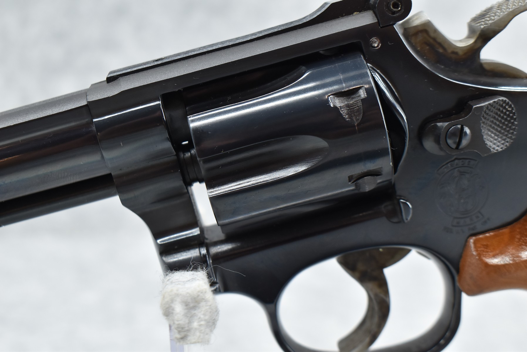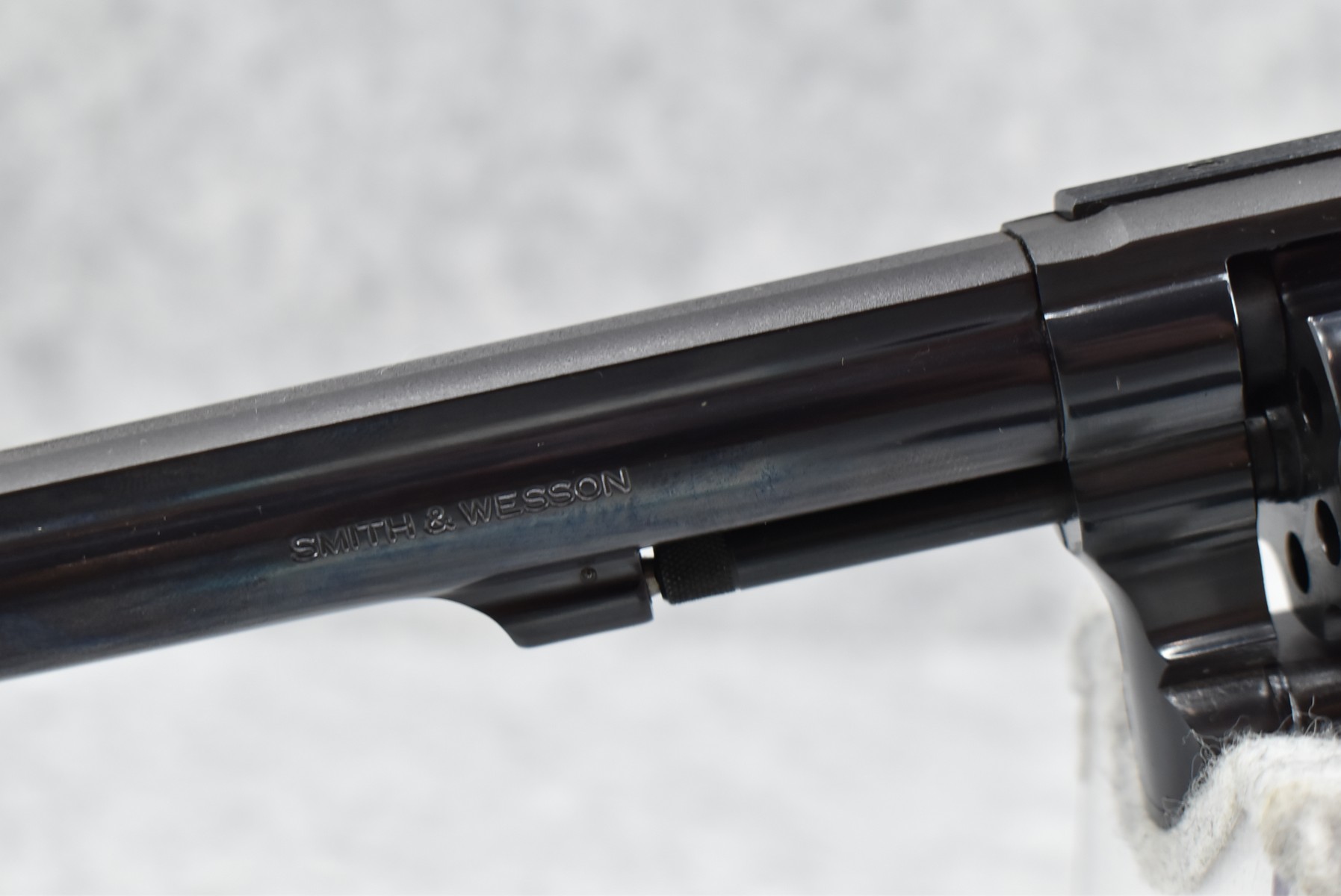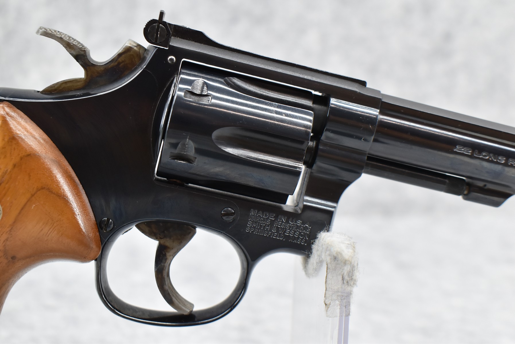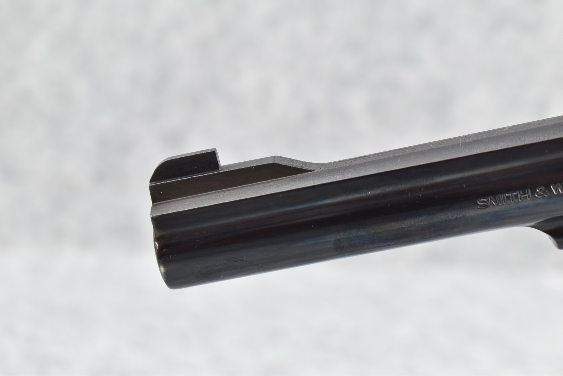 310R. Smith & Wesson – Mod. 17-5 – 22 Long Rifle Cal. Double Action Revolver – w/6” Barrel w/Partridge Front & Adj. Rear Sights – Blued Finish – w/Factory Checkered Wood Target Grips w/S&W Medallion, Target Trigger & Target Hammer (3T’s) – w/Factory Box, Manual & Extra Set of Hogue Rubber Grips