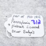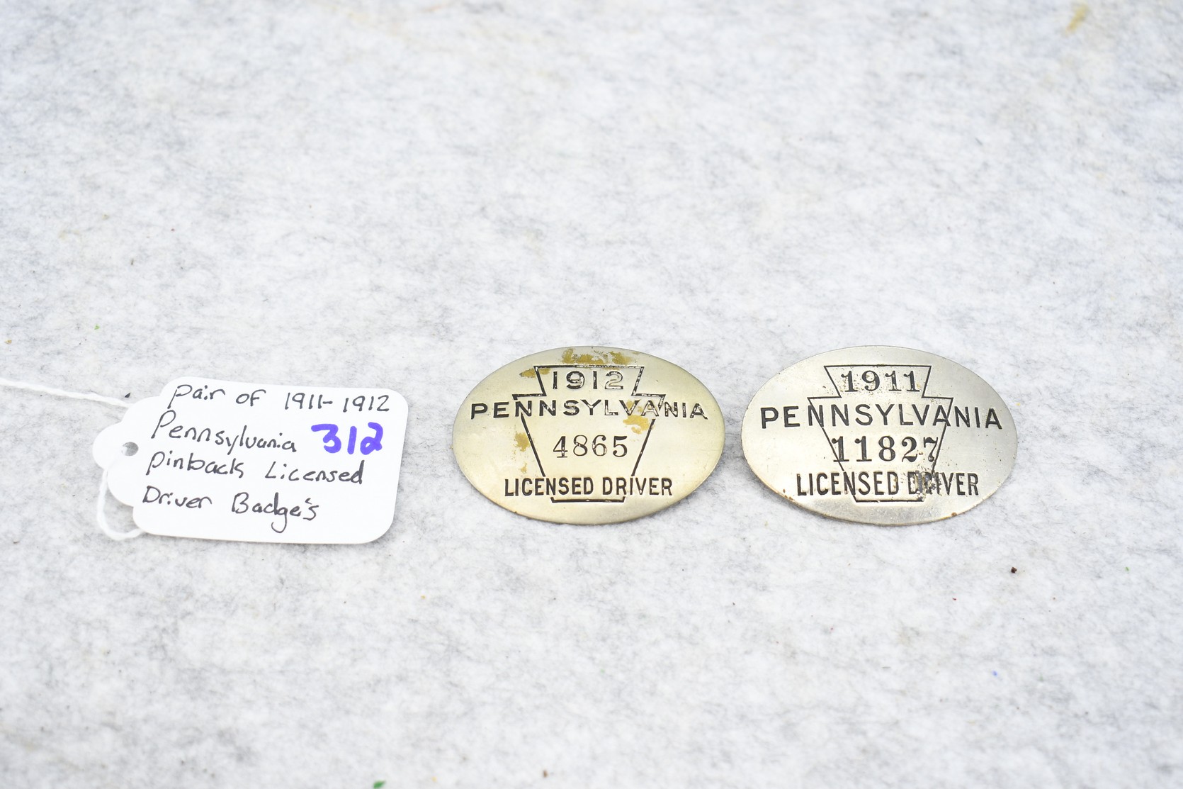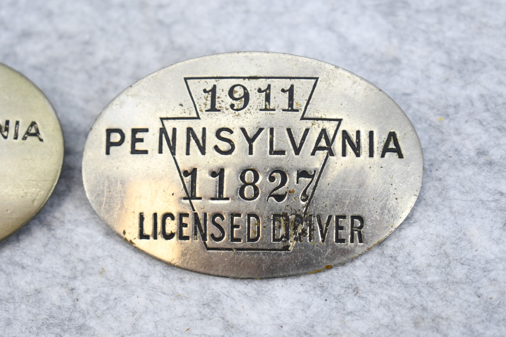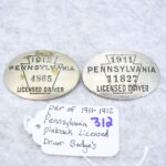 312. 1911 and 1912 Pennsylvania Licensed Driver Pinback Badge – 1911 is License No. 11827 – 1912 is License No. 4865