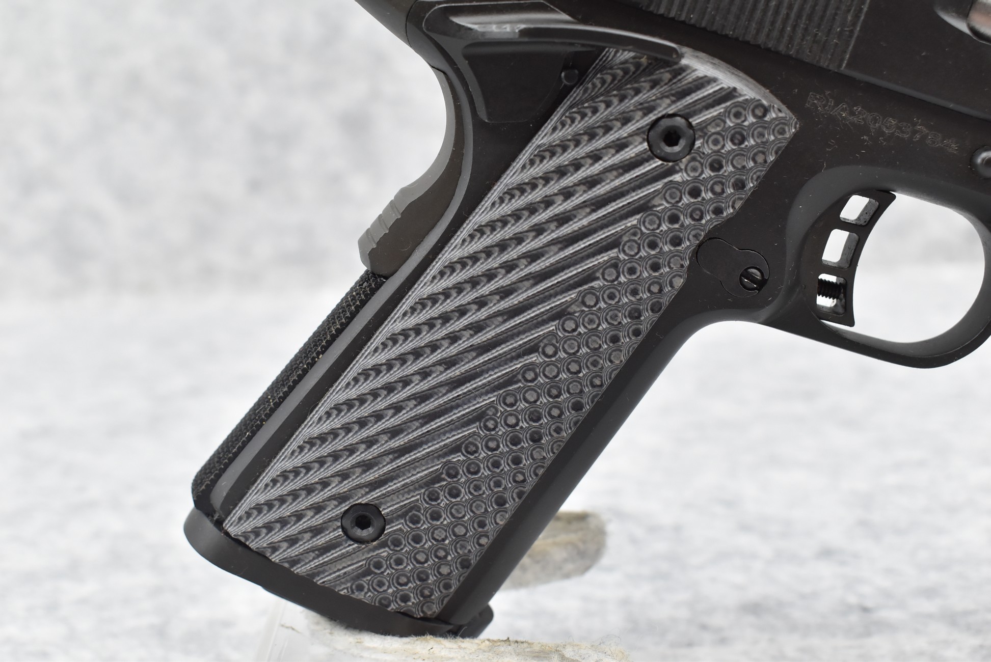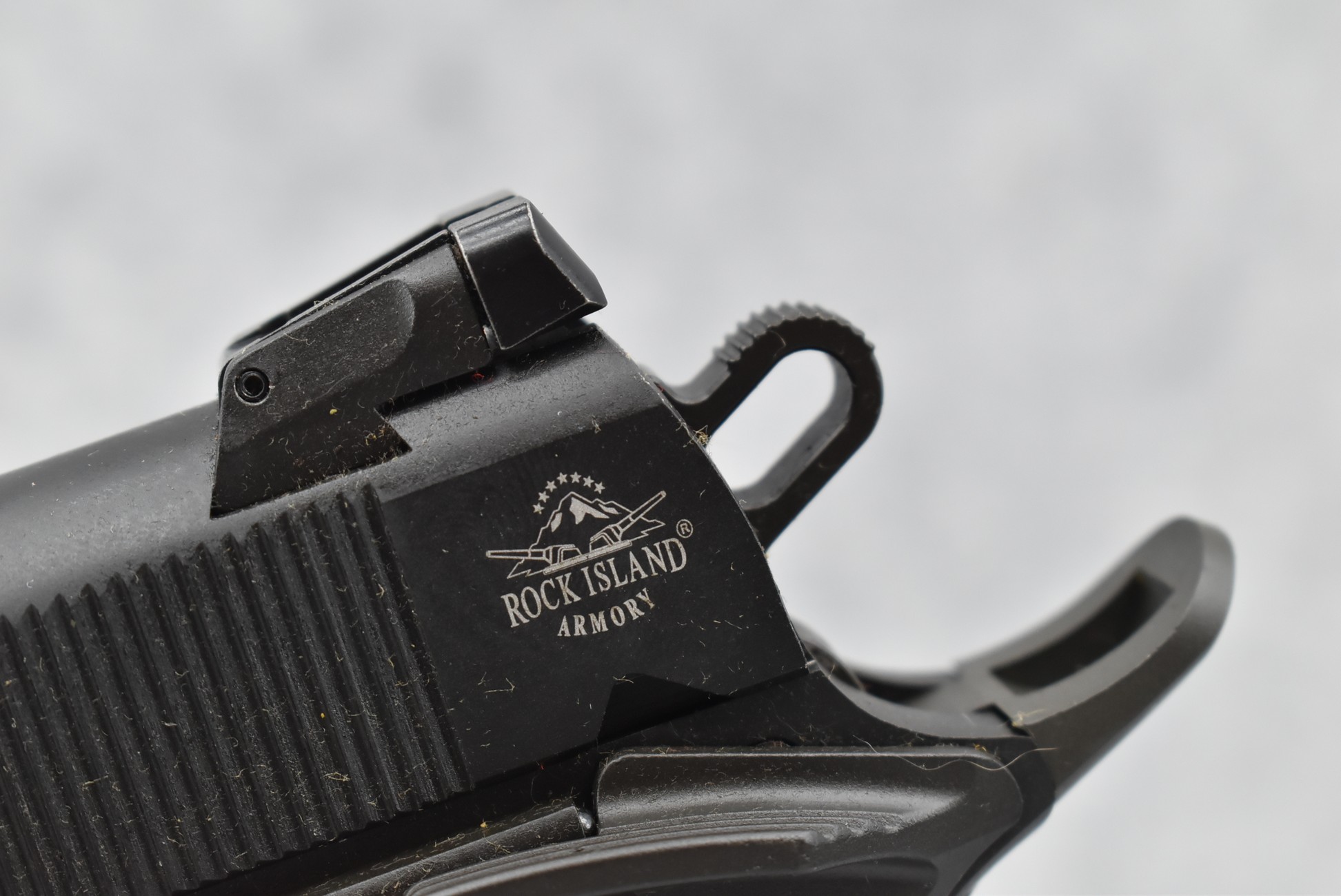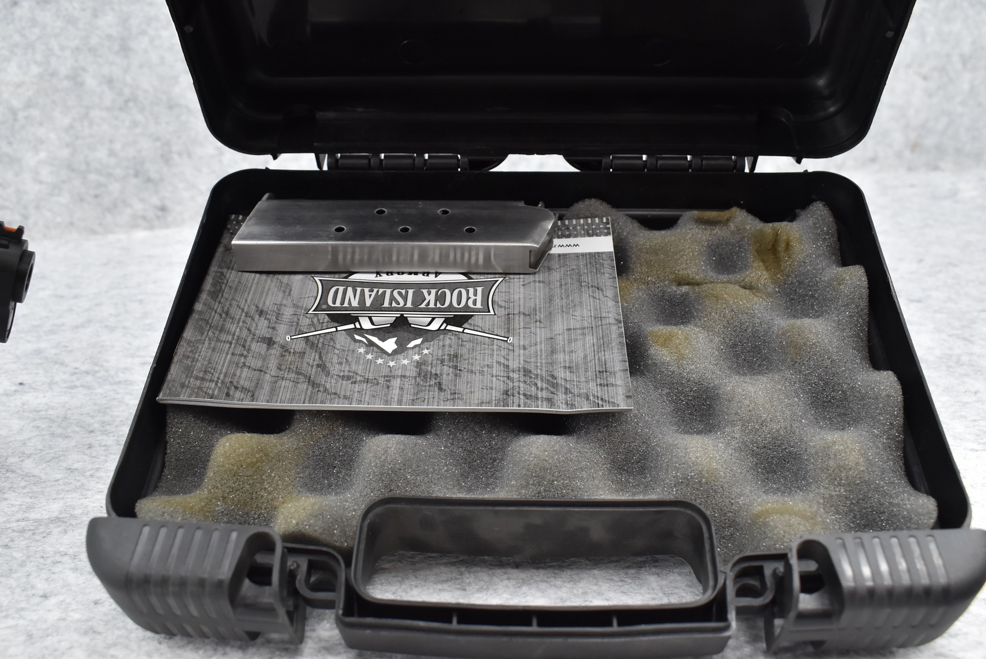 313R. Rock Island – Mod. M1911 A1-FS-Tact II – 10mm Cal. Semi-Auto Pistol – w/5” Barrel w/Fiber Optic Front & Rear 2-Dot White Sights – Matte Blued Finish – w/Factory G10 Textured Gray/Black Grip – w/Factory Hard Case – w/Manual & 2 Mags
