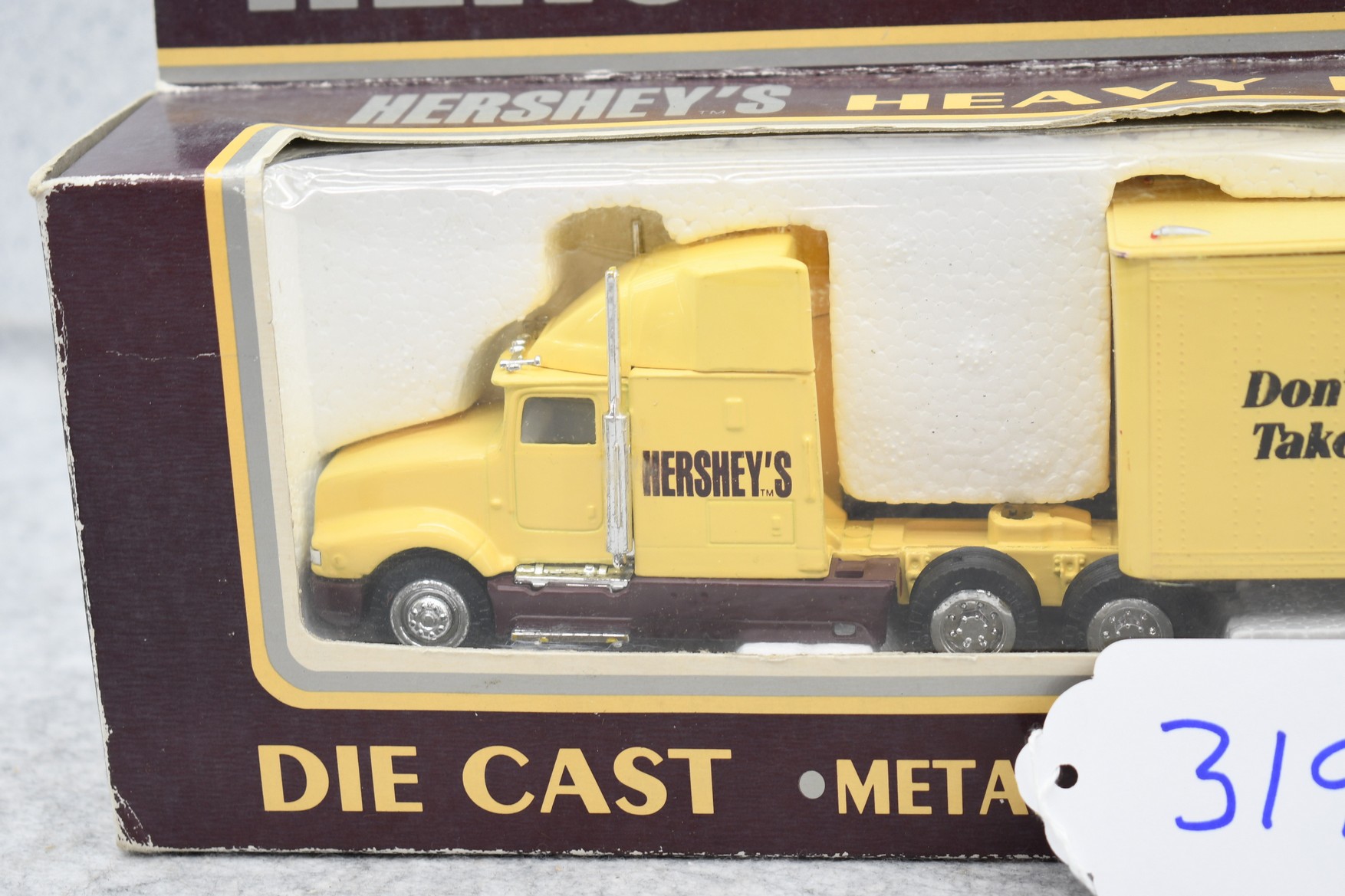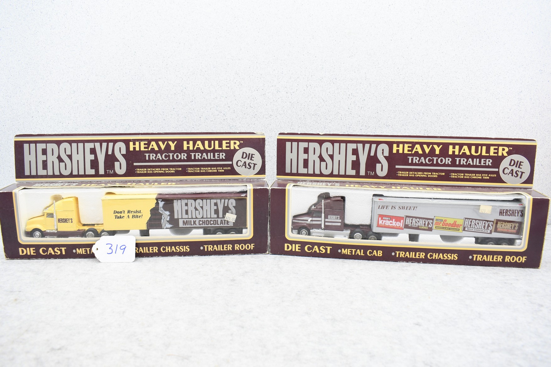 319. Pair of K-Line Heavy Haulers including K-811203 TT Tractor Trailer & Hershey’s Milk Chocolate (take a Bite) tractor trailer. Both NIB
