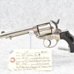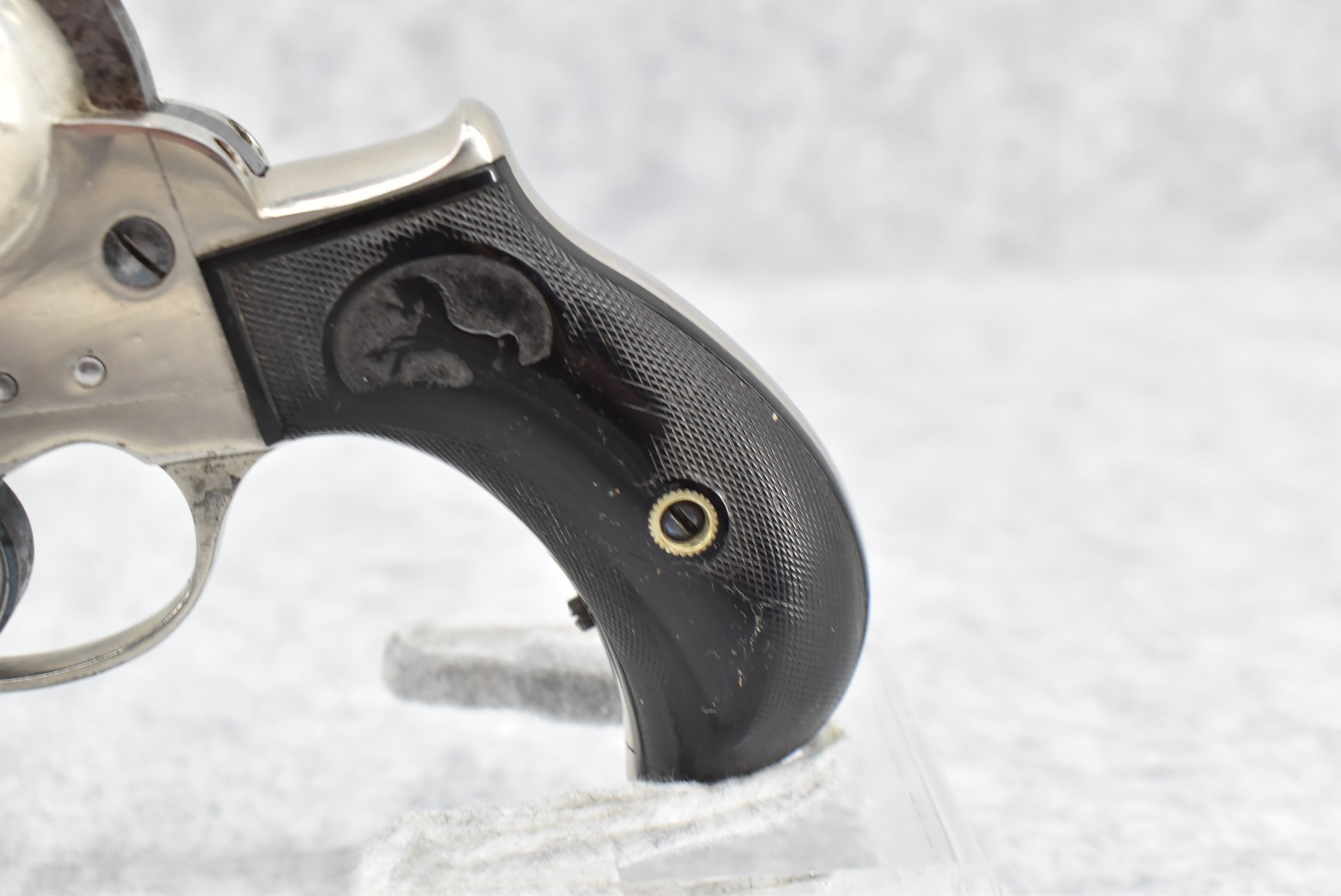 323. Colt – Mod. 1877 Lightning – 38 Colt Cal. Double Action Revolver – w/4 ½” Barrel w/Round Blade Front & Groove Rear Sights – Nickel Finish – w/Factory Checkered Hard Rubber Grips w/Rampant Colt Monogram – Frame, Trigger Guard & Butt Numbers Match – Mfg. 1891