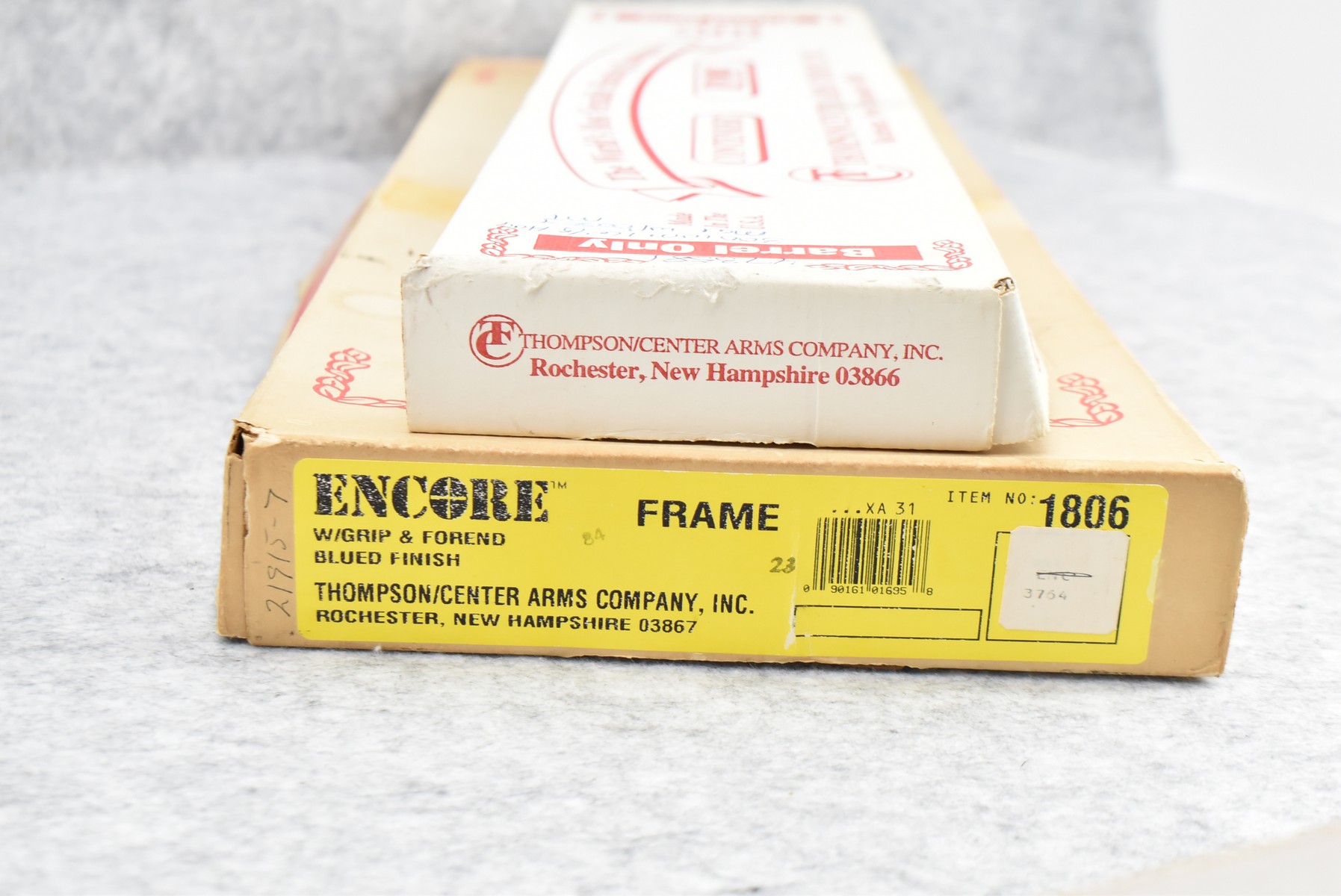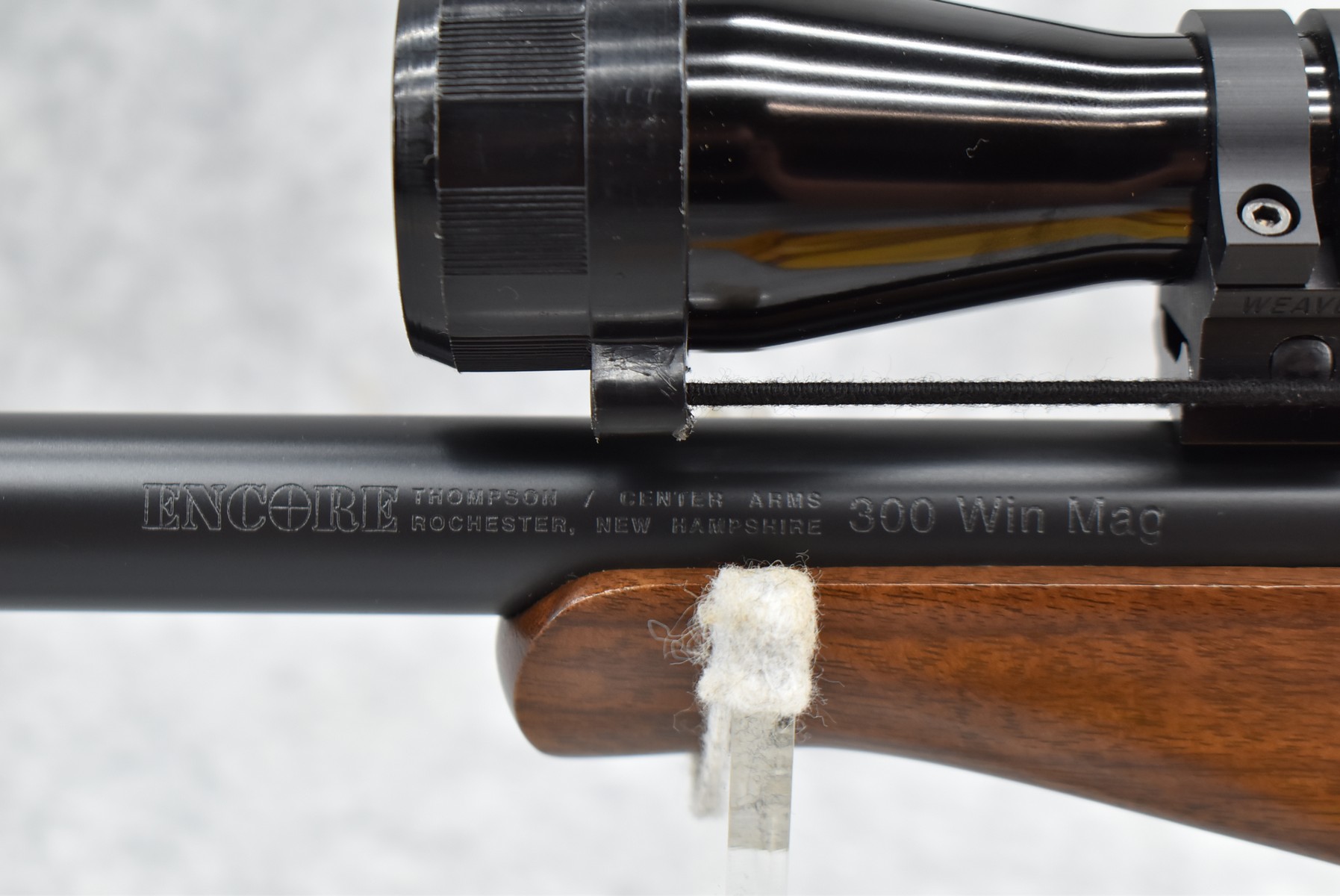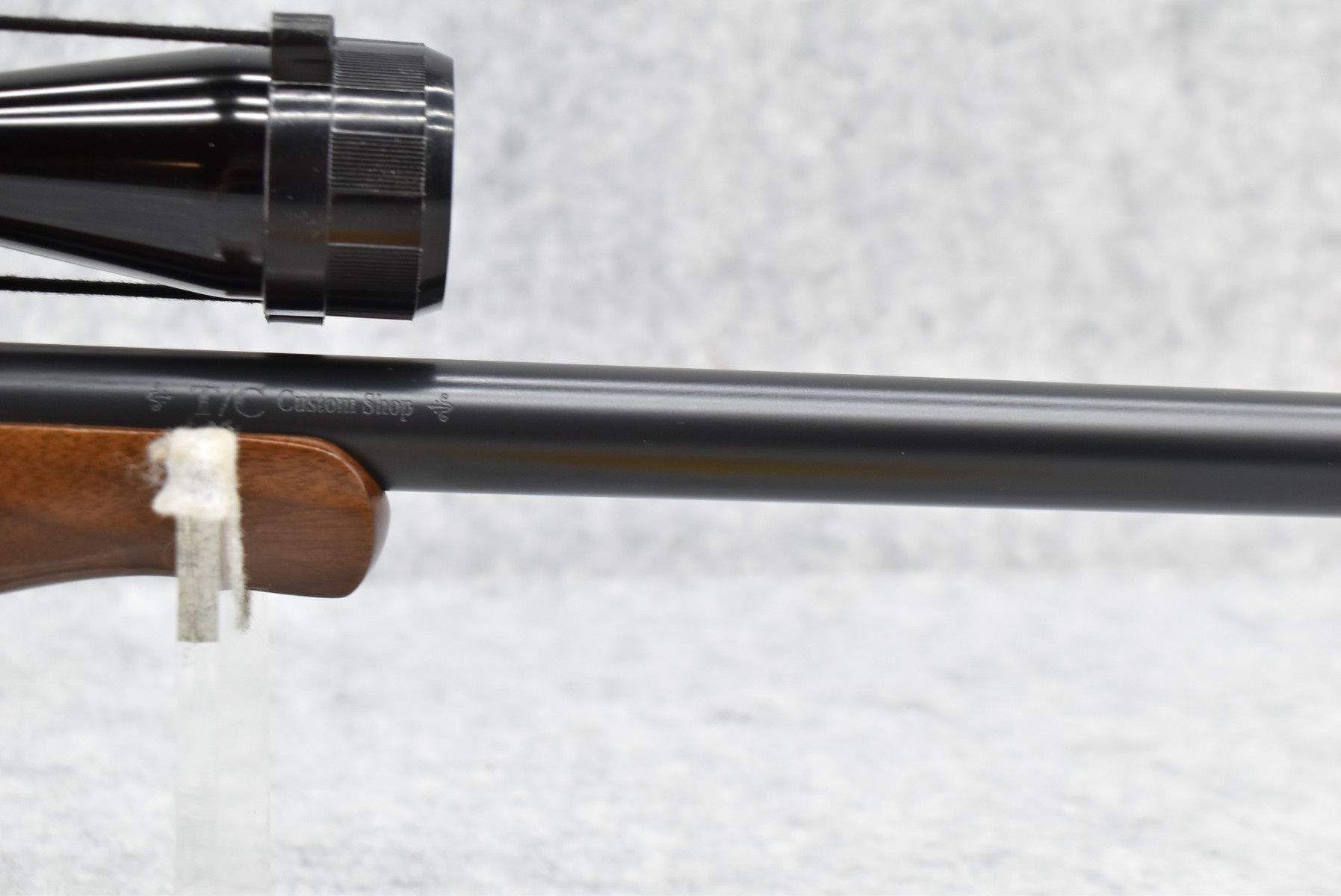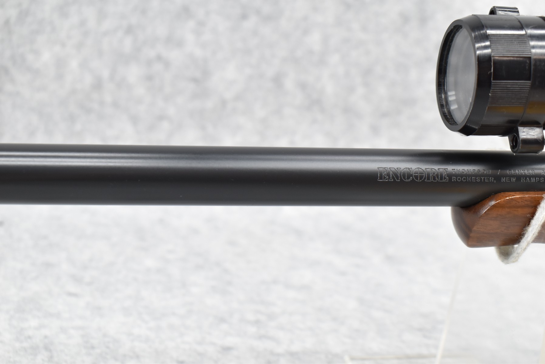 323R. Thompson Center – Mod. Encore – 300 Win. Mag. Cal. Single Shot Pistol – w/16” Thompson Center Custom Shop Ported Barrel – Matte Blued Finish – w/Smooth Grooved Pistol Grip Wood & Rubber Stocks – w/Thompson Center Scope – w/Factory Boxes & Manual