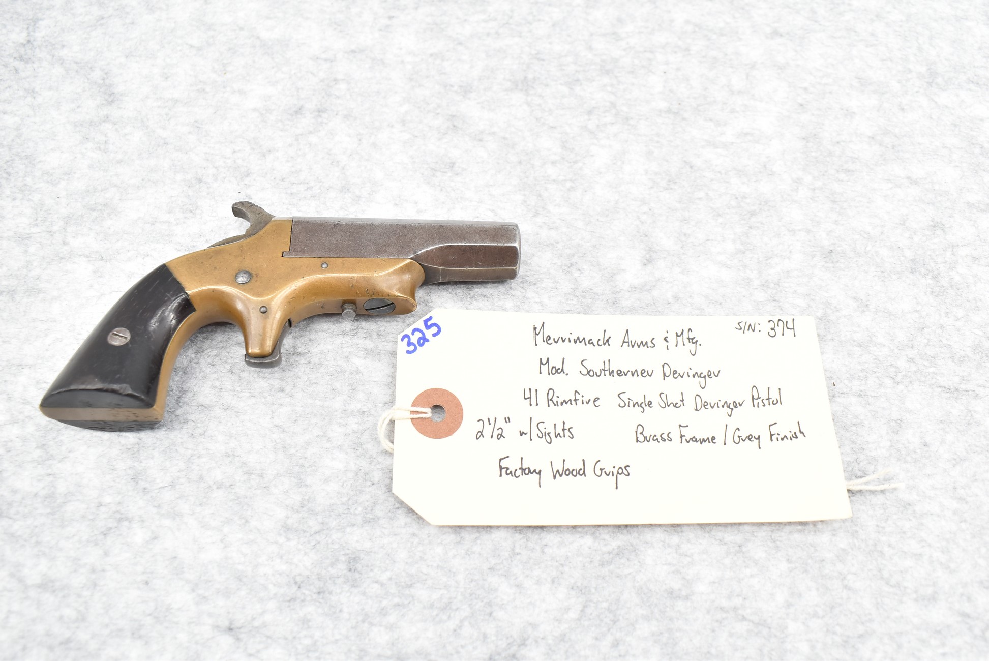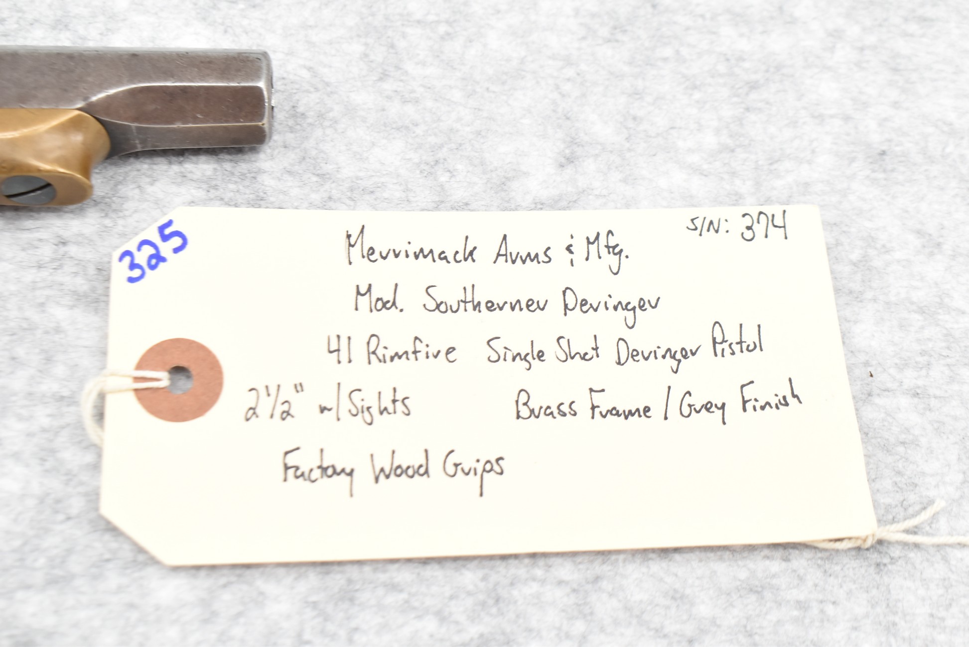 325. Merrimack Arms & Mfg. – Mod. Southerner Derringer – 41 RF Cal. Single Shot Derringer Pistol – w/2 ½” Barrel w/Sights – Gray Finish w/Brass Frame – w/Factory Wood Grips
