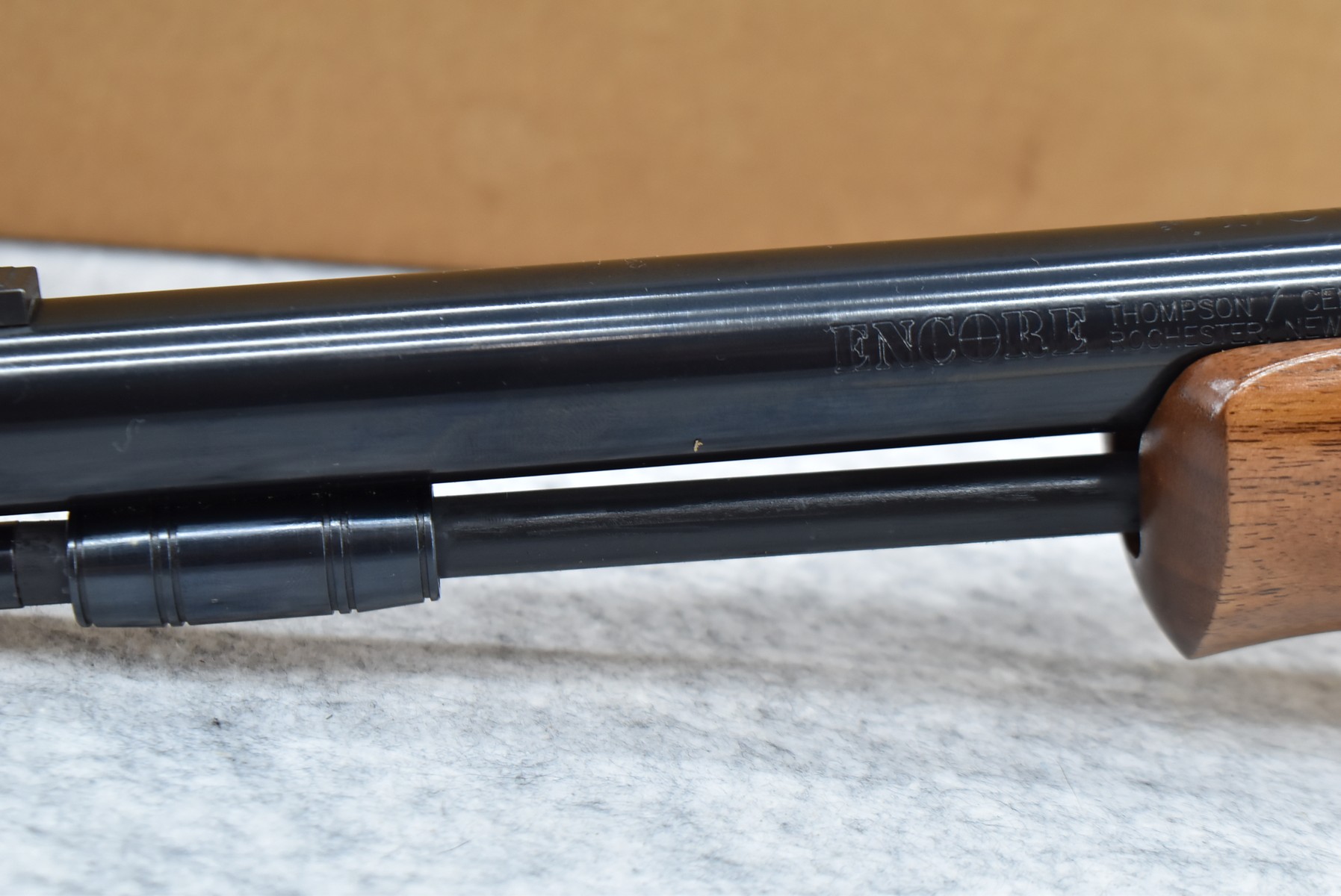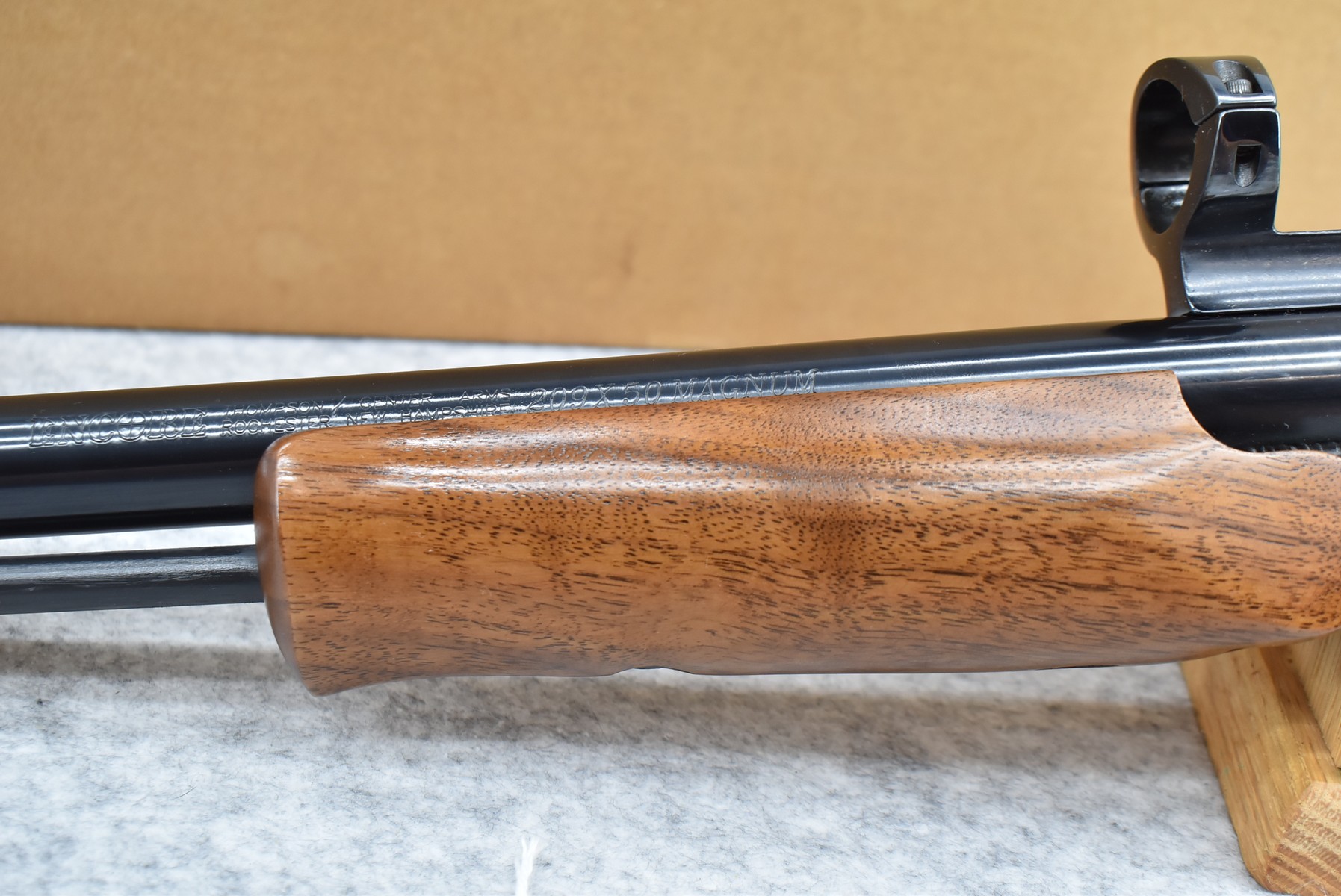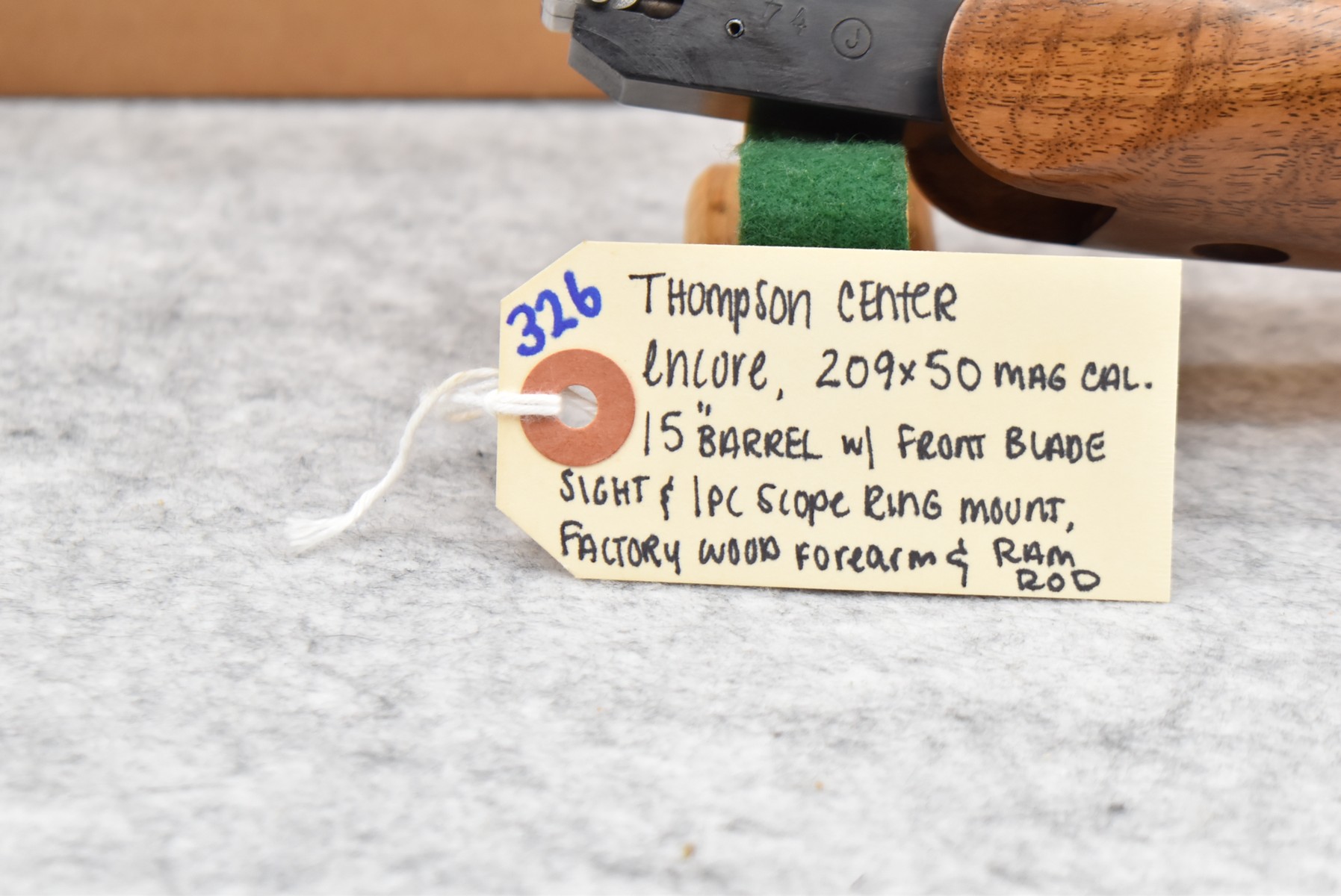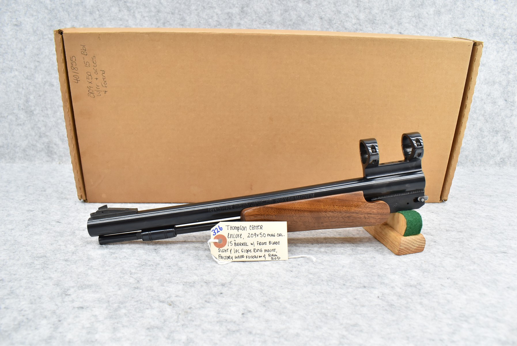 326. Thompson Center – Mod. Encore – 209×50 Mag. Cal. 15” Barrel w/Front Blade Sight – w/Factory Wood Forearm & Ram Rod – w/1pc. Scope Ring Mount – Barrel Only – w/Box
