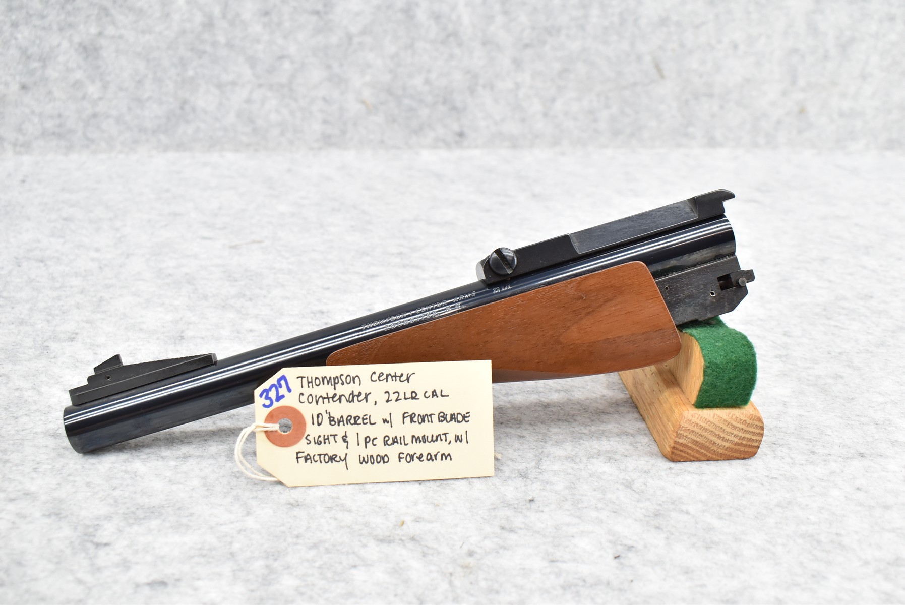 327.        Thompson Center – Mod. Contender – 22LR Cal. 10” Round Barrel w/Front Blade Sight