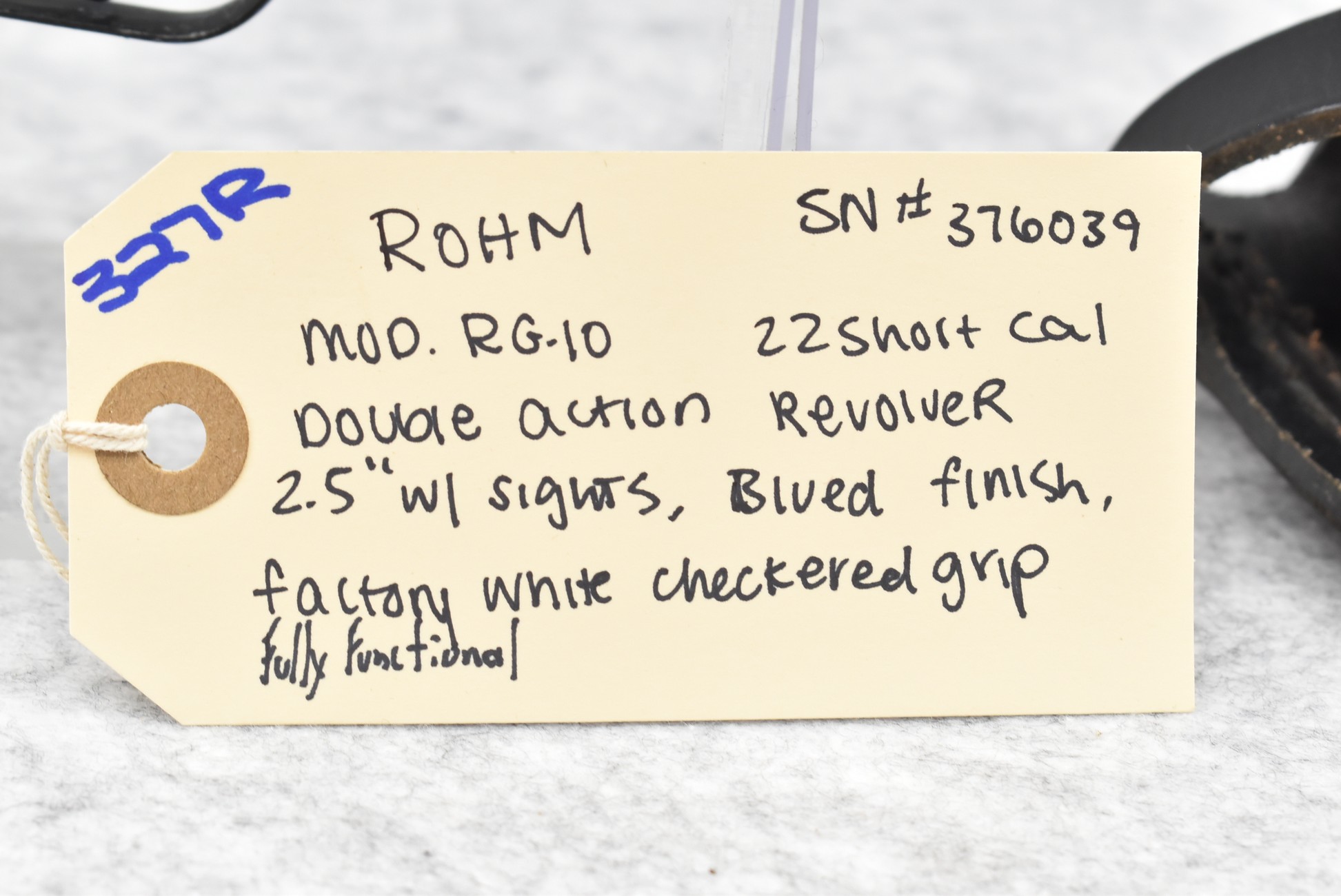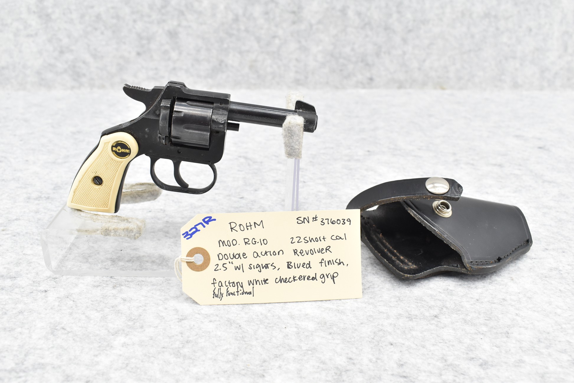 327R. Rohm – Mod. RG-10 – 22 Short Cal. Double Action Revolver – w/2.5” Barrel w/Sights – Blued Finish – w/Factory White Checkered Grip – Fully Functional