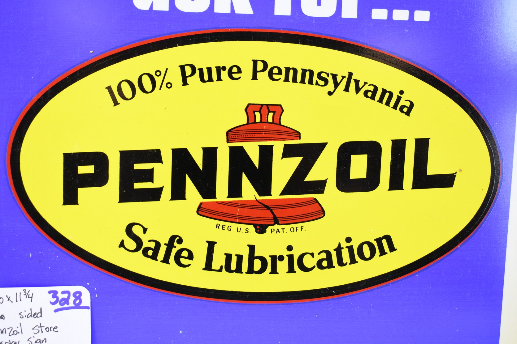 328.   2-Sided Pennzoil Store Display Sign – Hard Plastic – 11¾” Wide x 10” High