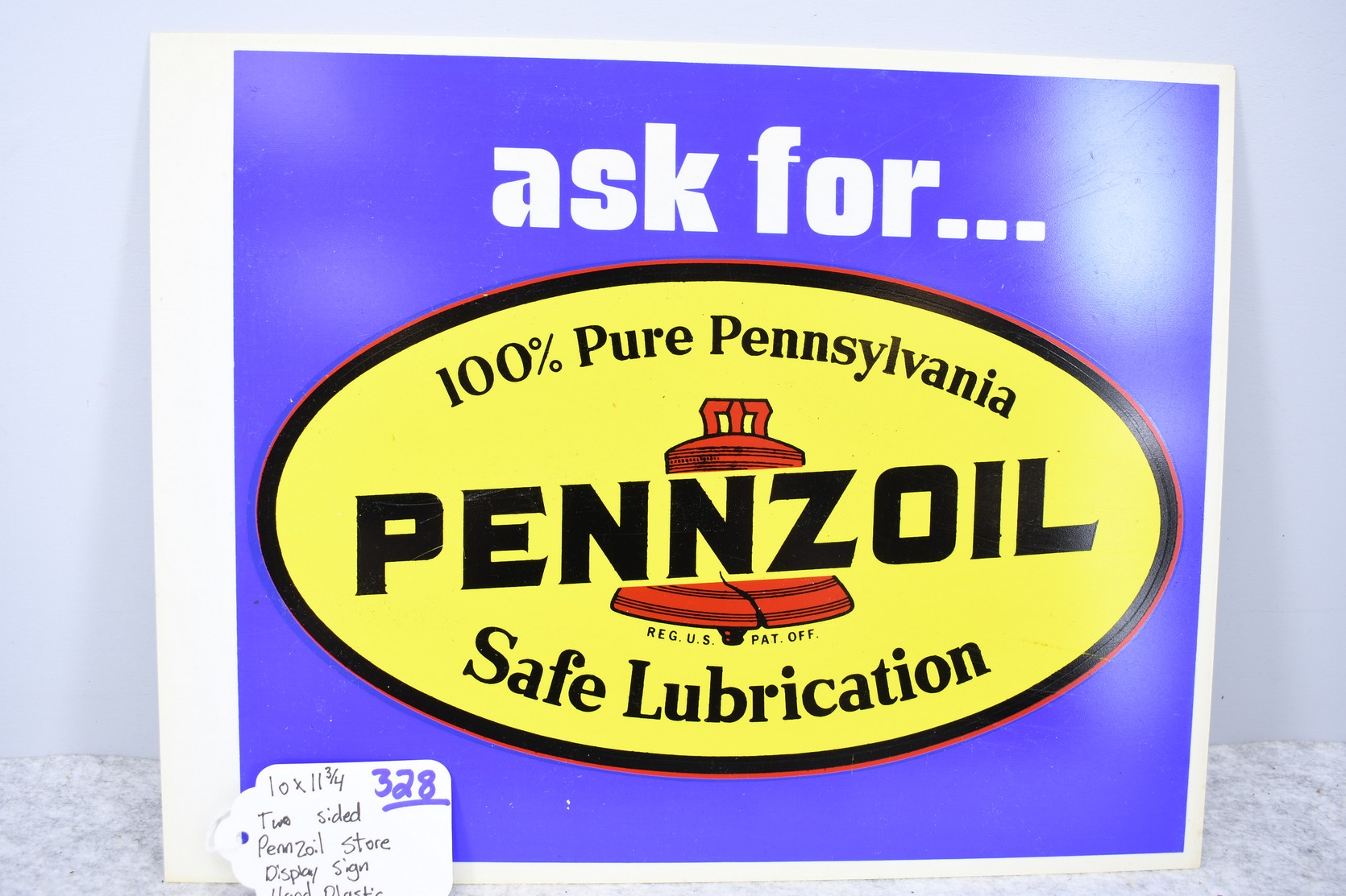328. 2-Sided Pennzoil Store Display Sign – Hard Plastic – 11¾” Wide x 10” High