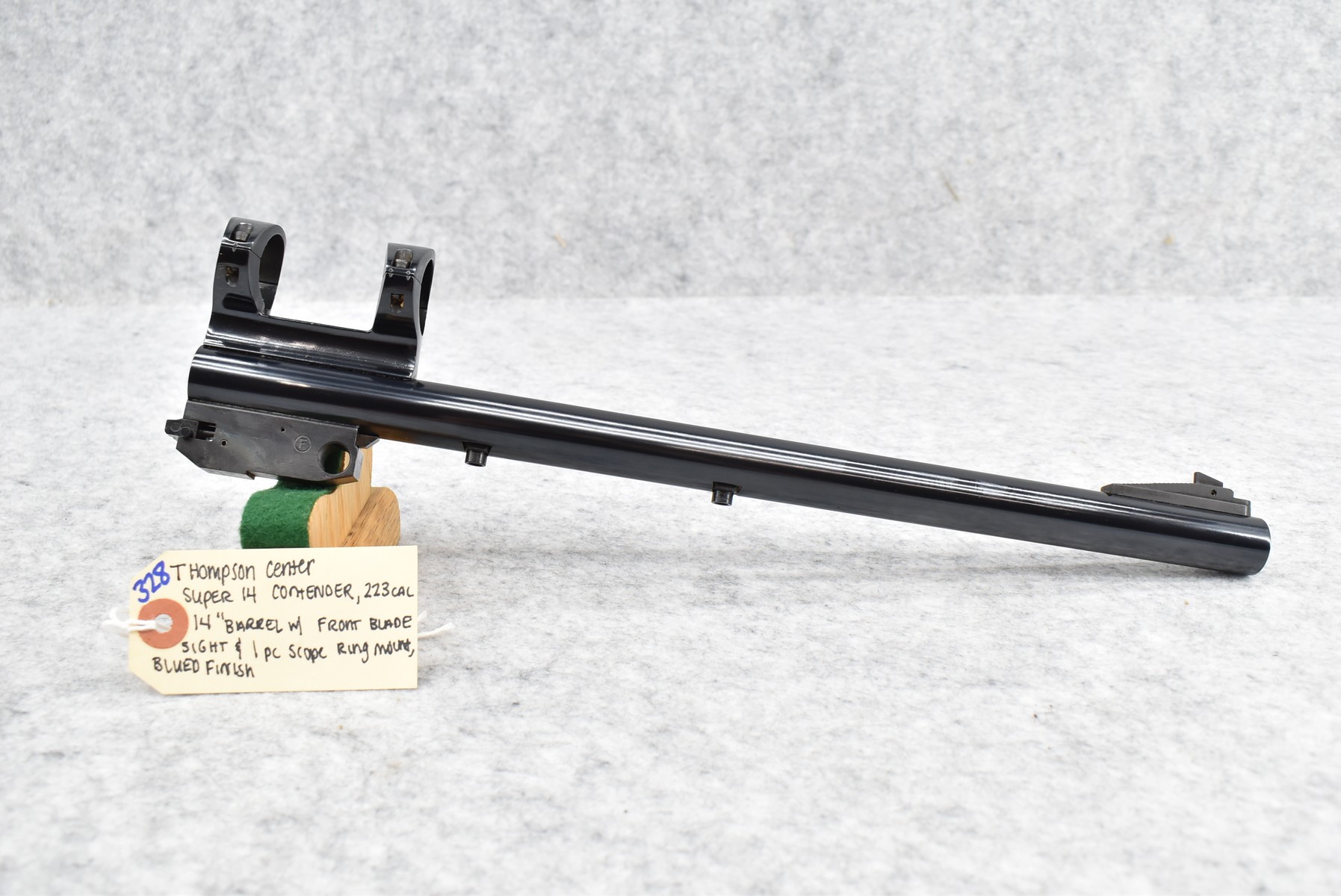328. Thompson Center – Mod. Contender – 223 Cal. Super 14” Barrel w/Front Blade Sight – Blued Finish – w/1pc. Scope Rings & Mount – Barrel Only