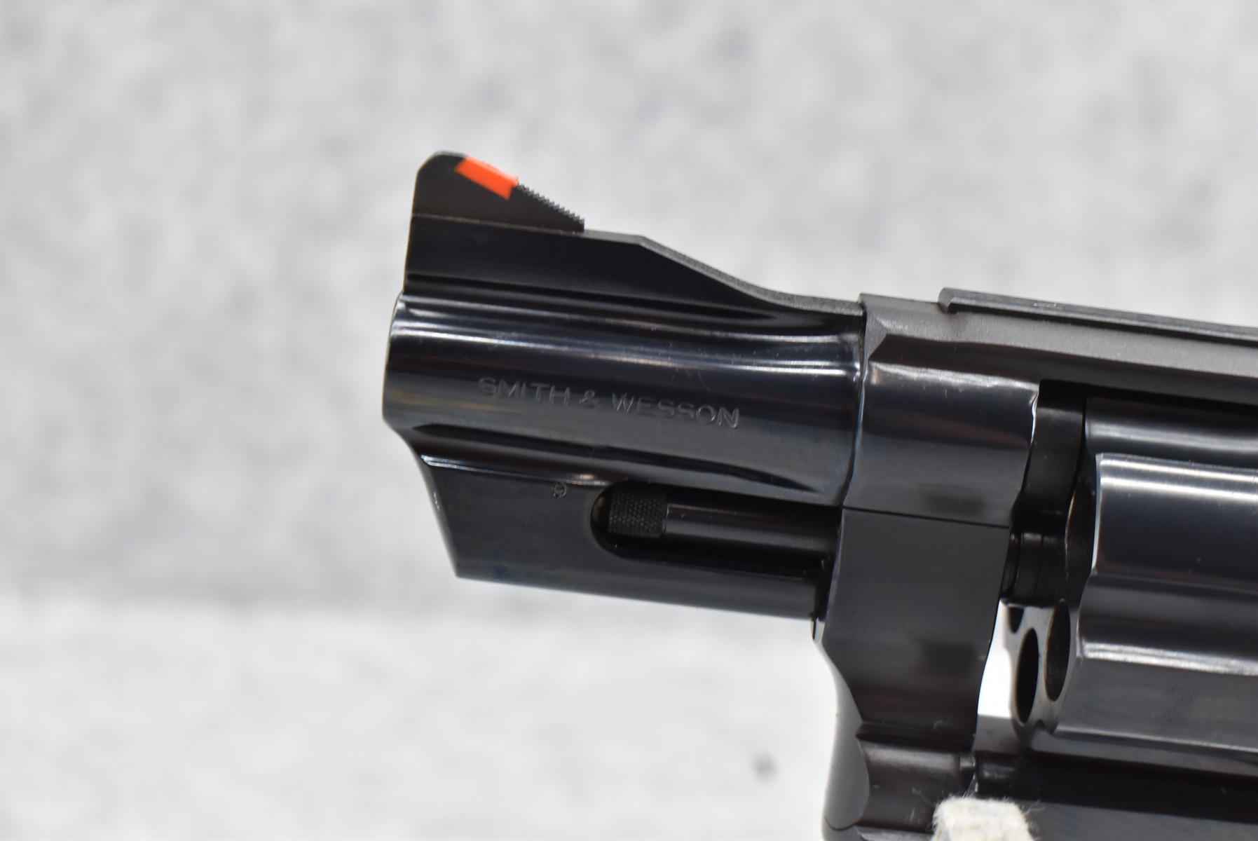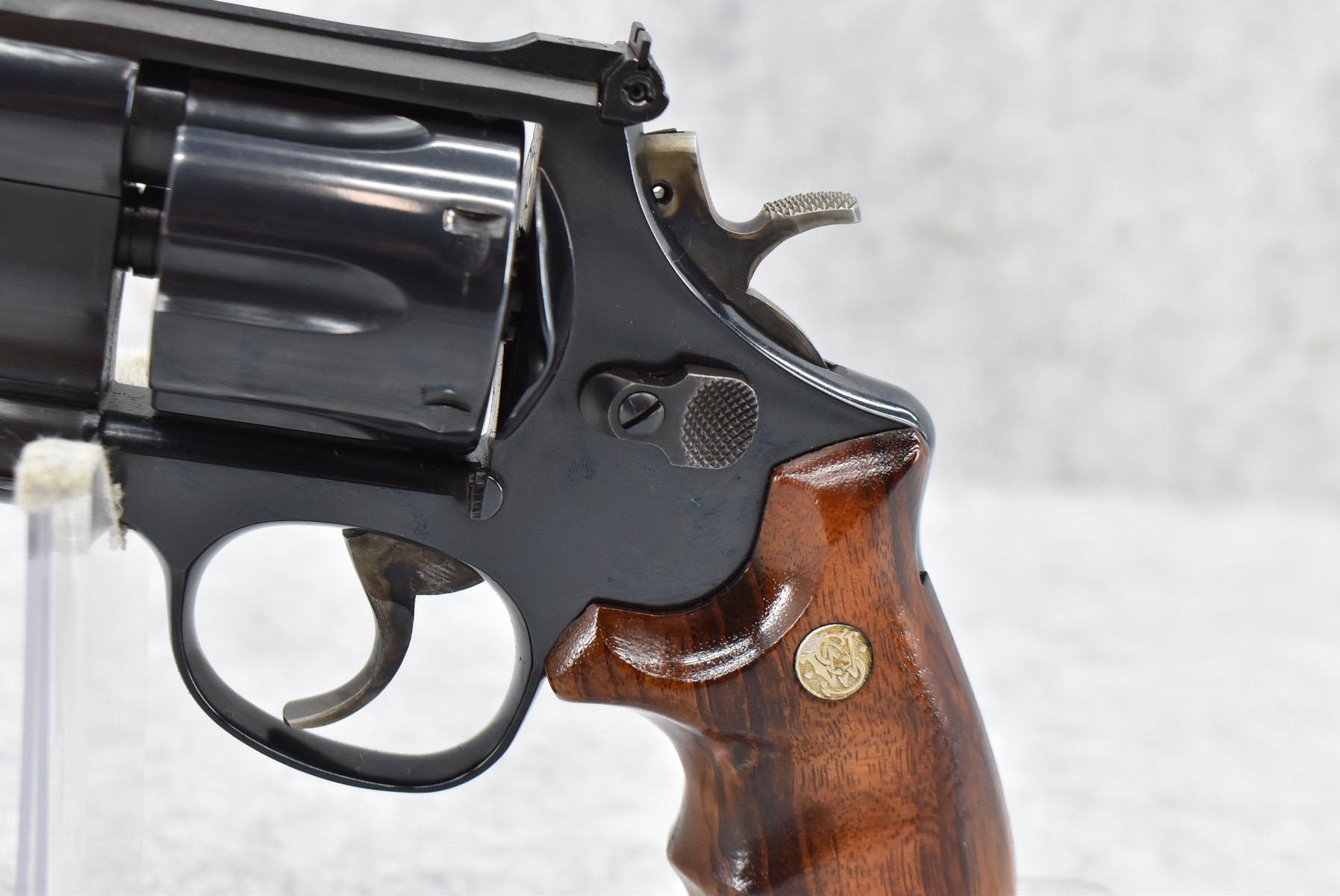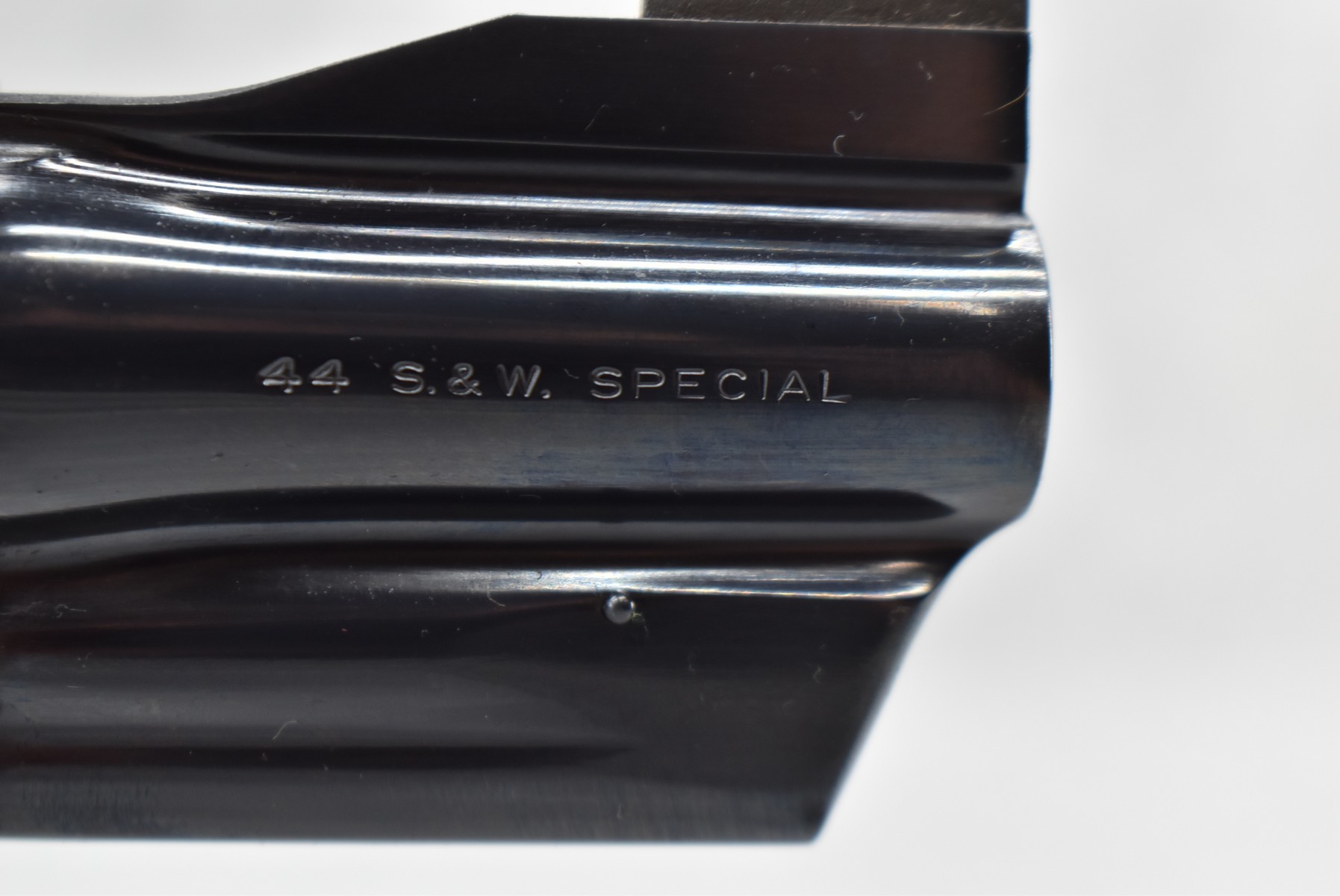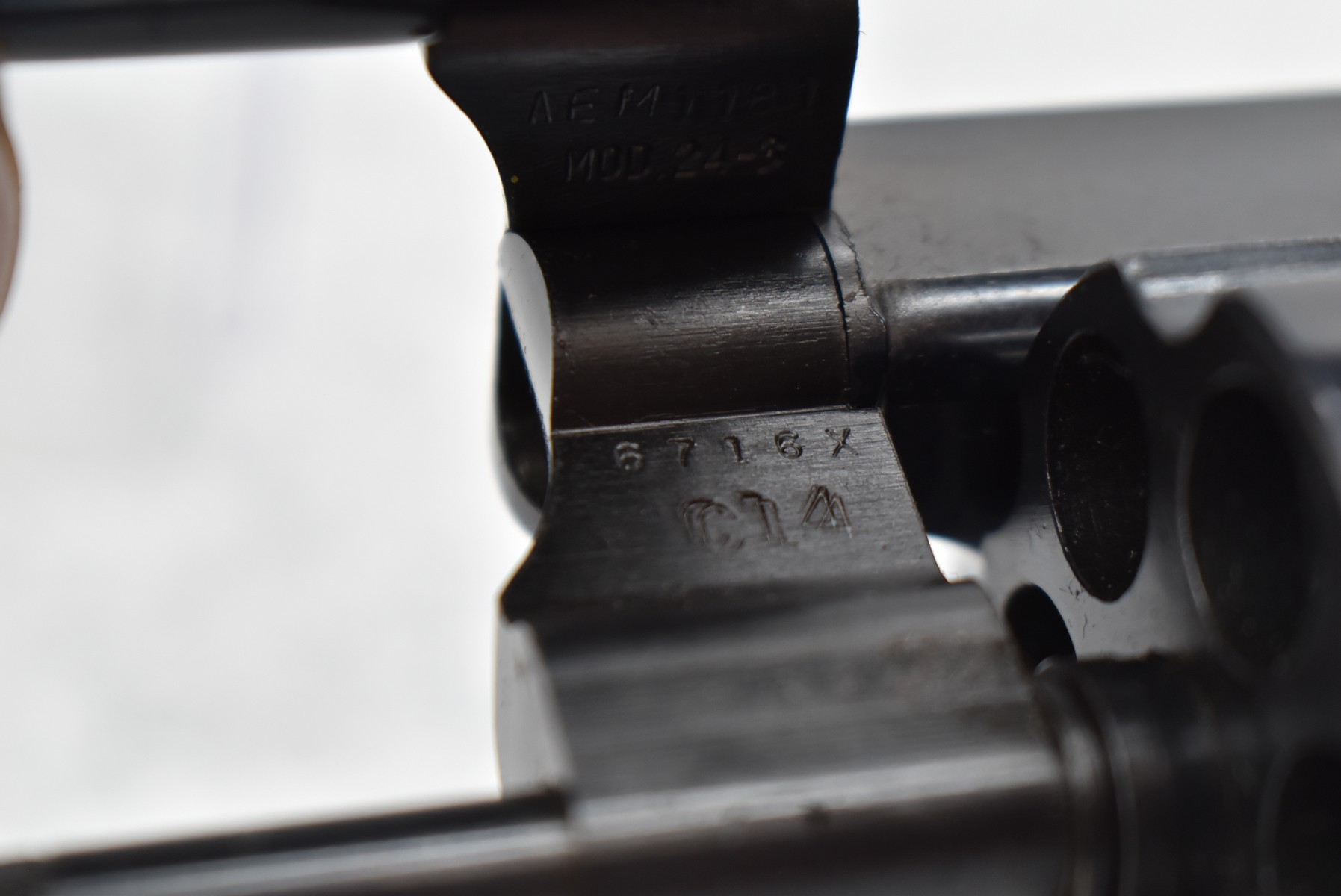 32R. Smith & Wesson – Mod. 24-3 Combat Variation – Lew Horton Special – 44 S&W Spl. Cal. Double Action Revolver – w/3” Red Ramp Front Sight & Rear Adj. Square Sight w/White Outline – Blued Finish – w/Factory Rounded Butt 3-Finger Wood Grip w/S&W Medallion – Limited Edition of Only 1,000 Mfg. Between 1984-1985