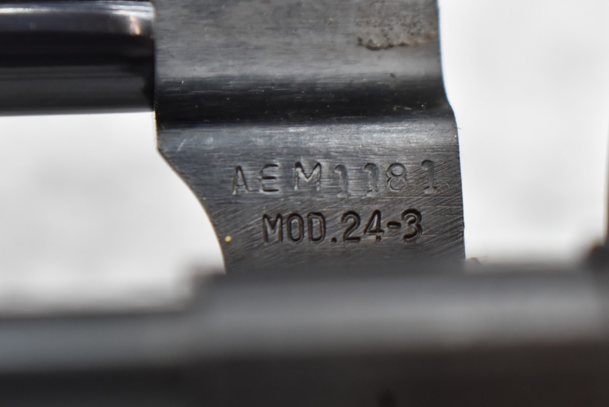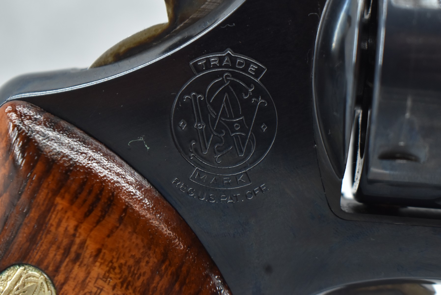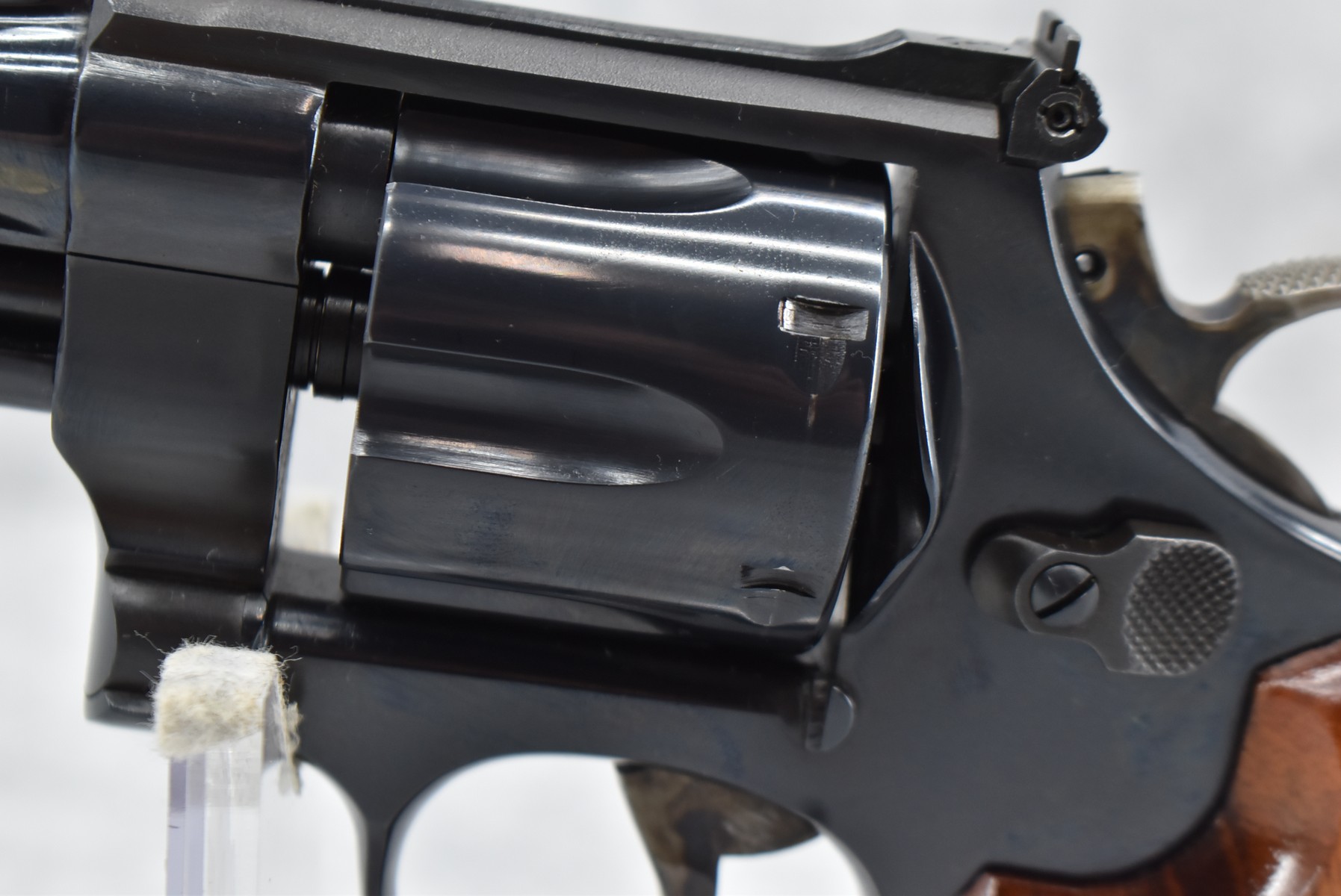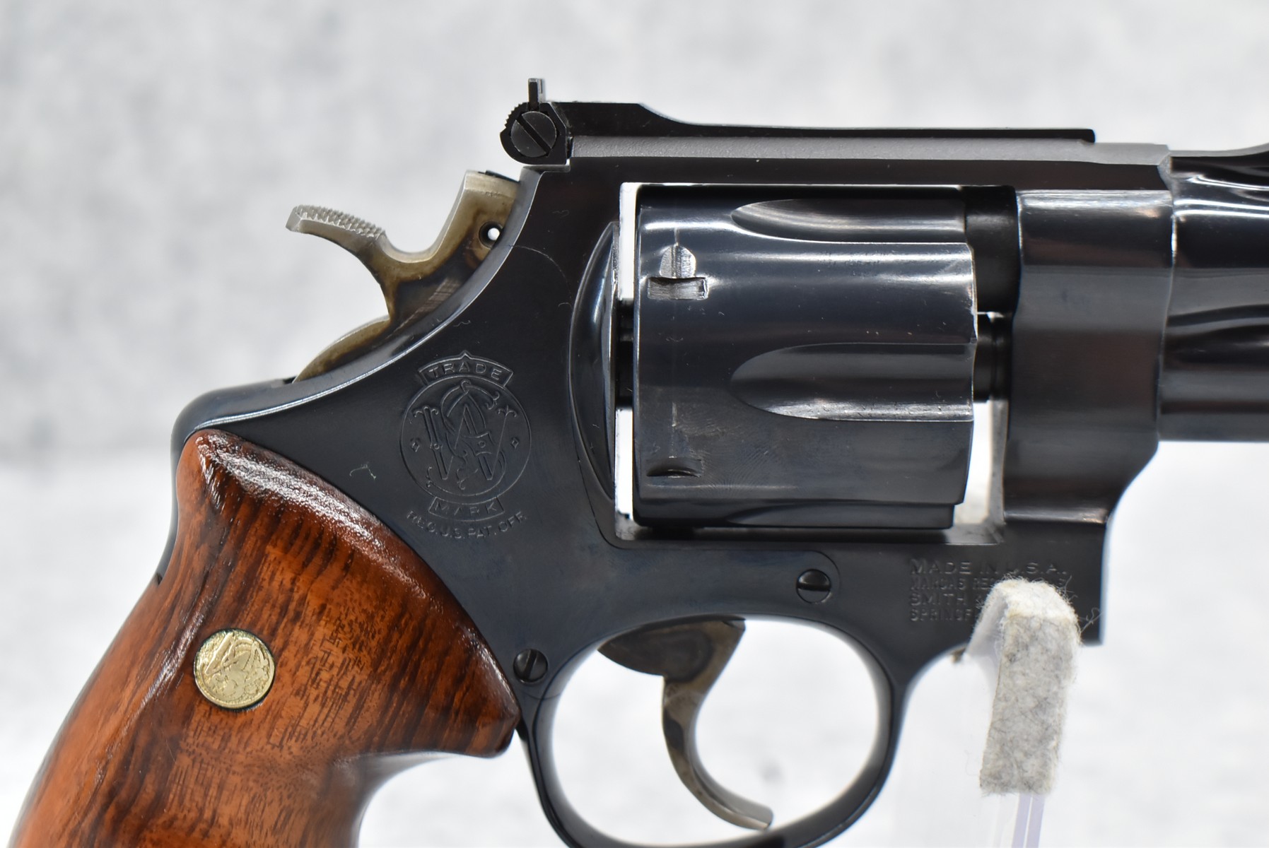 32R. Smith & Wesson – Mod. 24-3 Combat Variation – Lew Horton Special – 44 S&W Spl. Cal. Double Action Revolver – w/3” Red Ramp Front Sight & Rear Adj. Square Sight w/White Outline – Blued Finish – w/Factory Rounded Butt 3-Finger Wood Grip w/S&W Medallion – Limited Edition of Only 1,000 Mfg. Between 1984-1985
