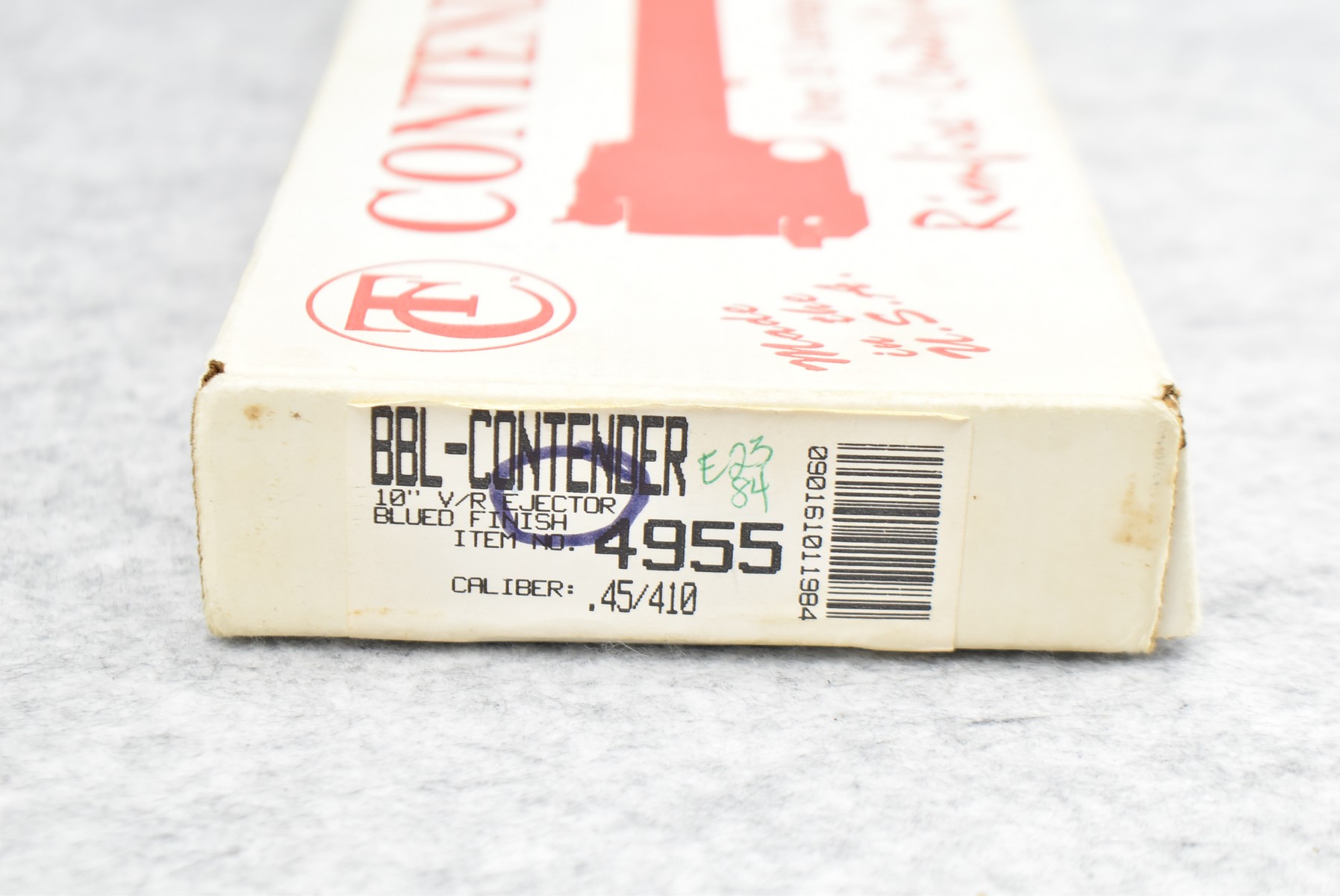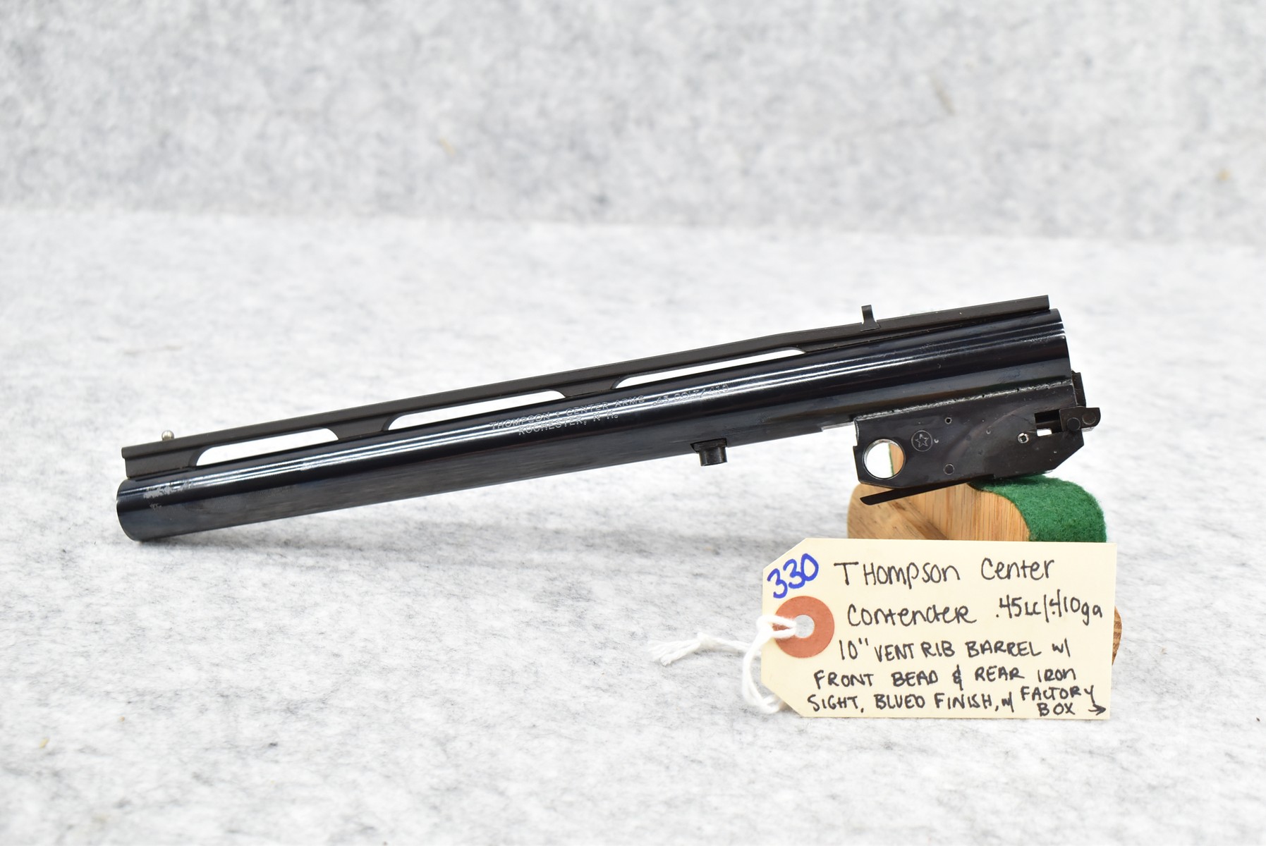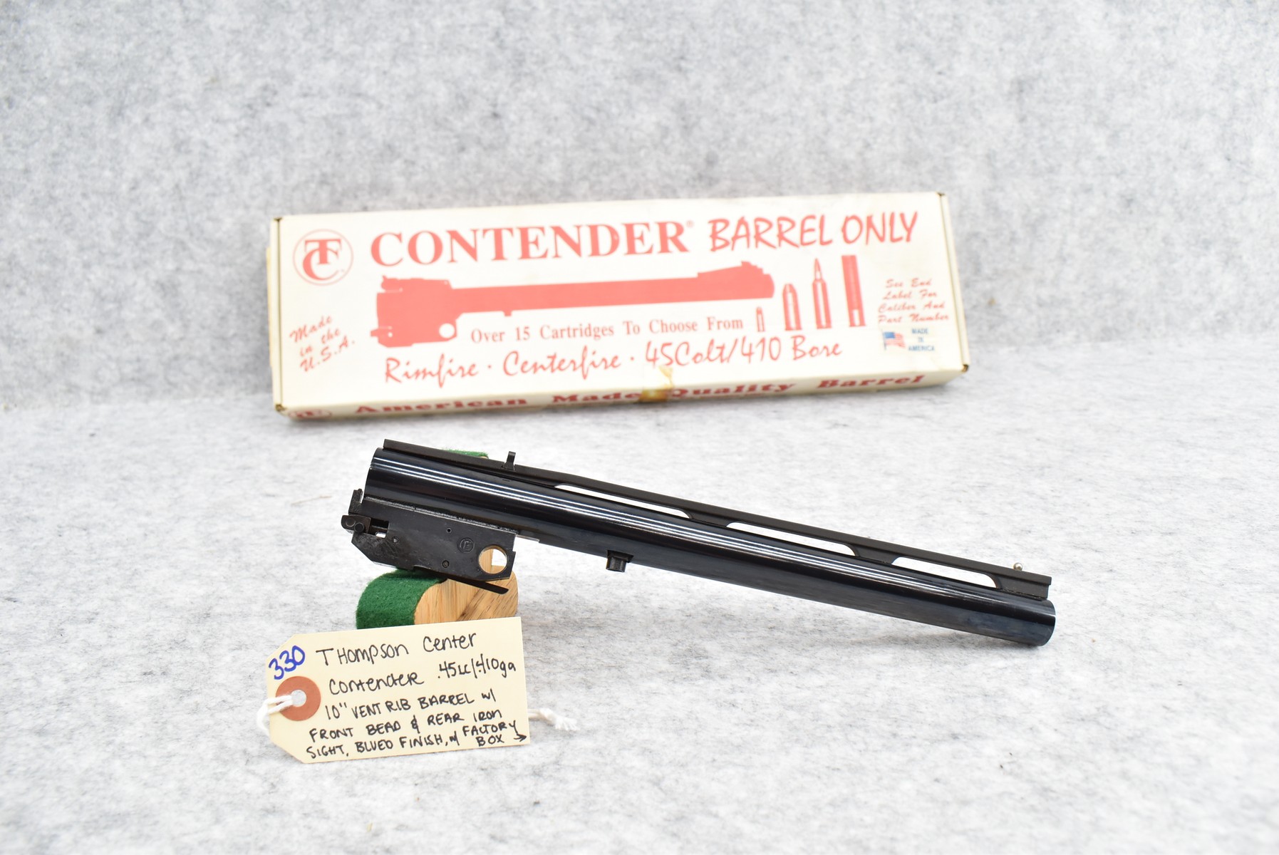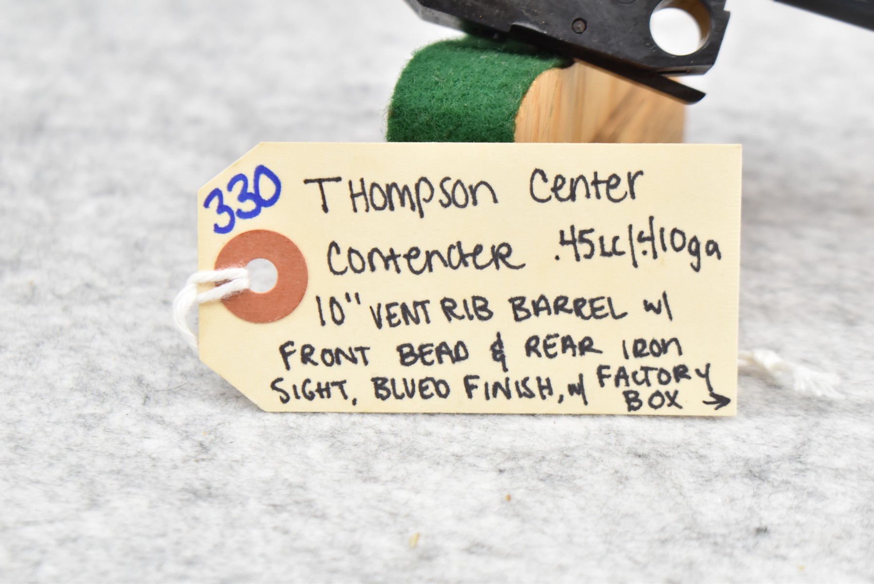 330. Thompson Center – Mod. Contender – 45LC/410ga. 10” Vent-Rib Barrel w/Front Bead & Rear Iron Sight – Blued Finish – w/Factory Box, Tool & Paperwork – Barrel Only